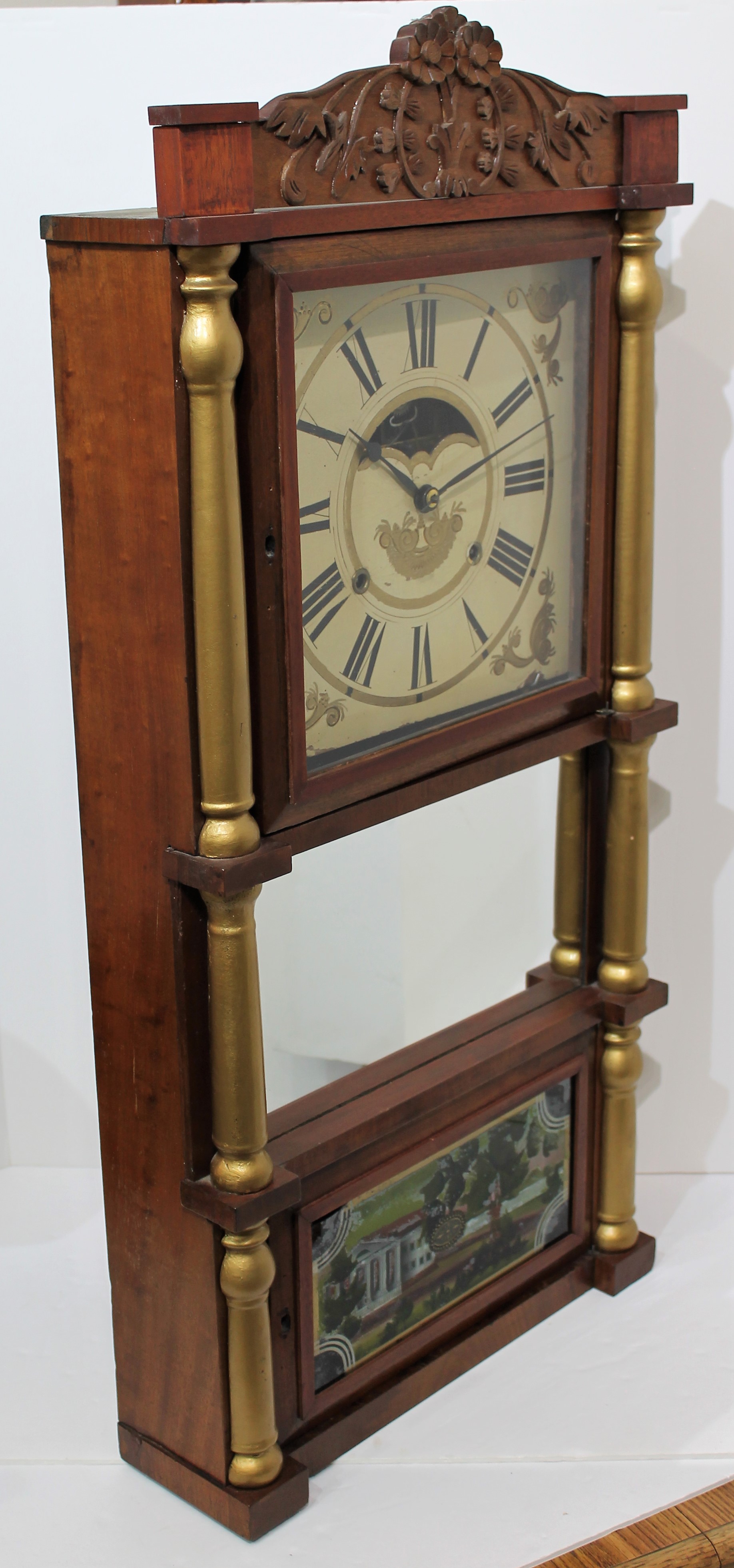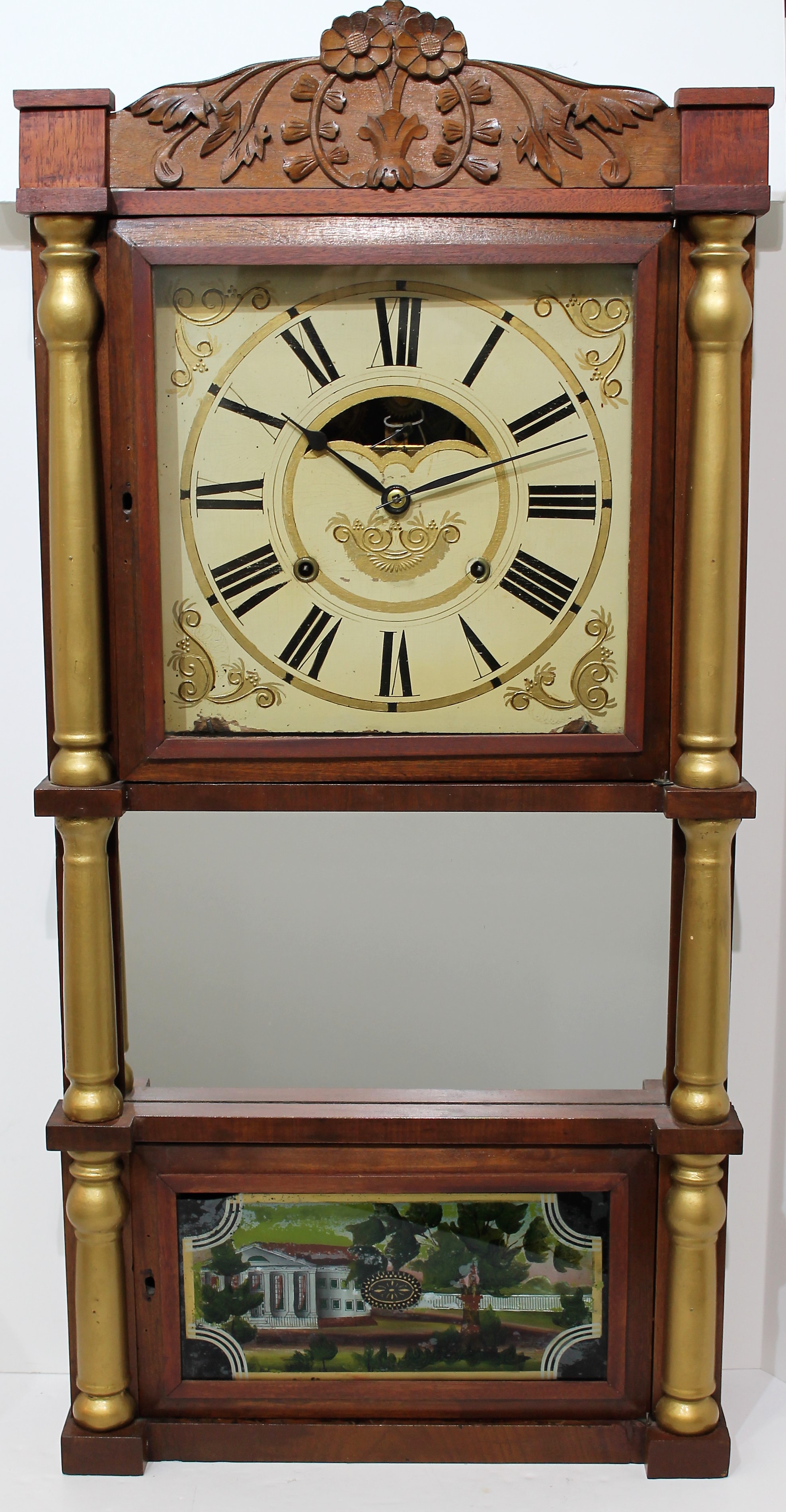 Birge, Mallory & Co. Eight-day brass shelf clock, 1838-1843. A 35.5-inch shelf clock that has undergone considerable restoration. The small flat trim around the door glasses has been replaced,