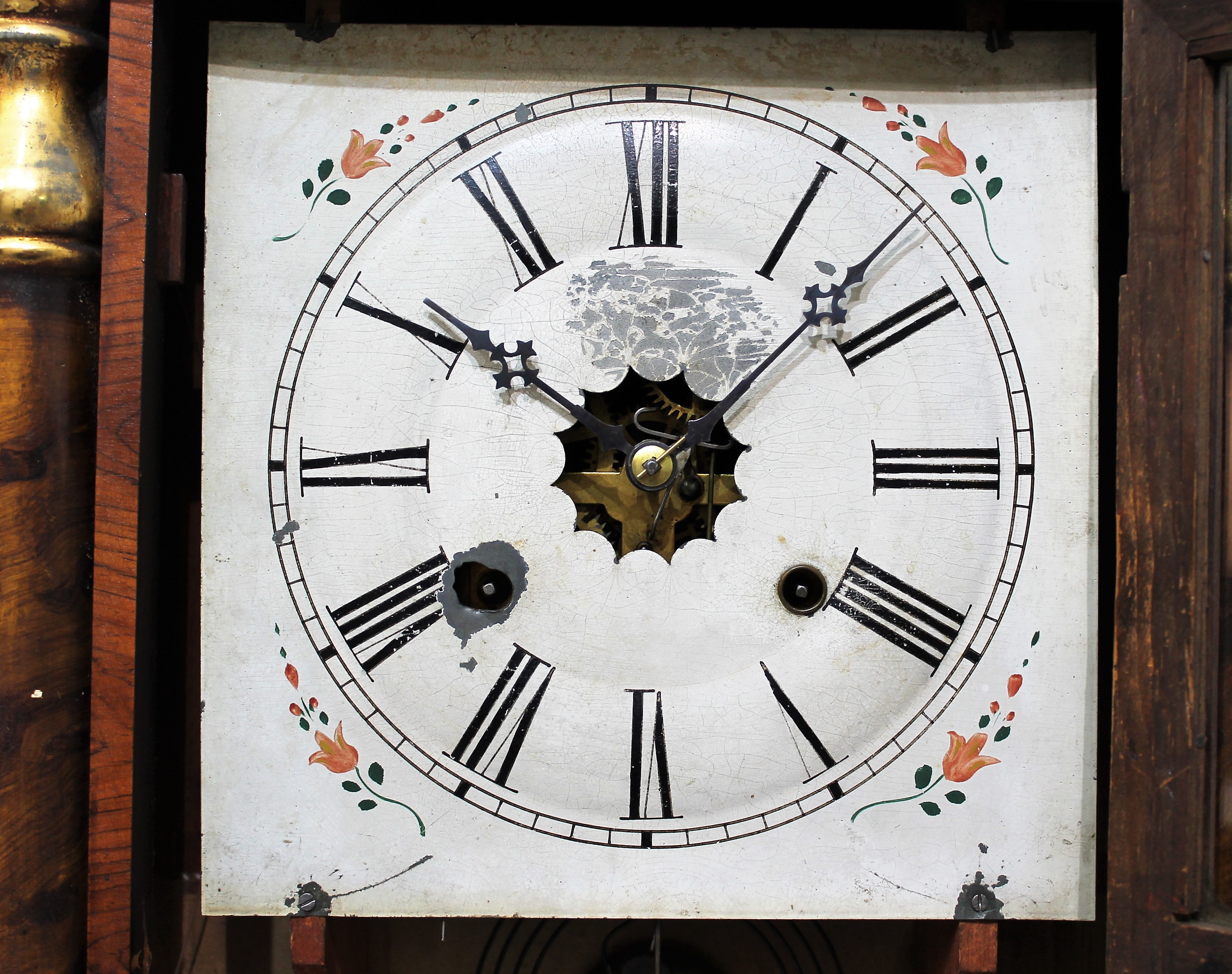 minute hand. The 30-hour time-and-strike movement is signed and running, driven by two 30-hour weights and a modern pendulum