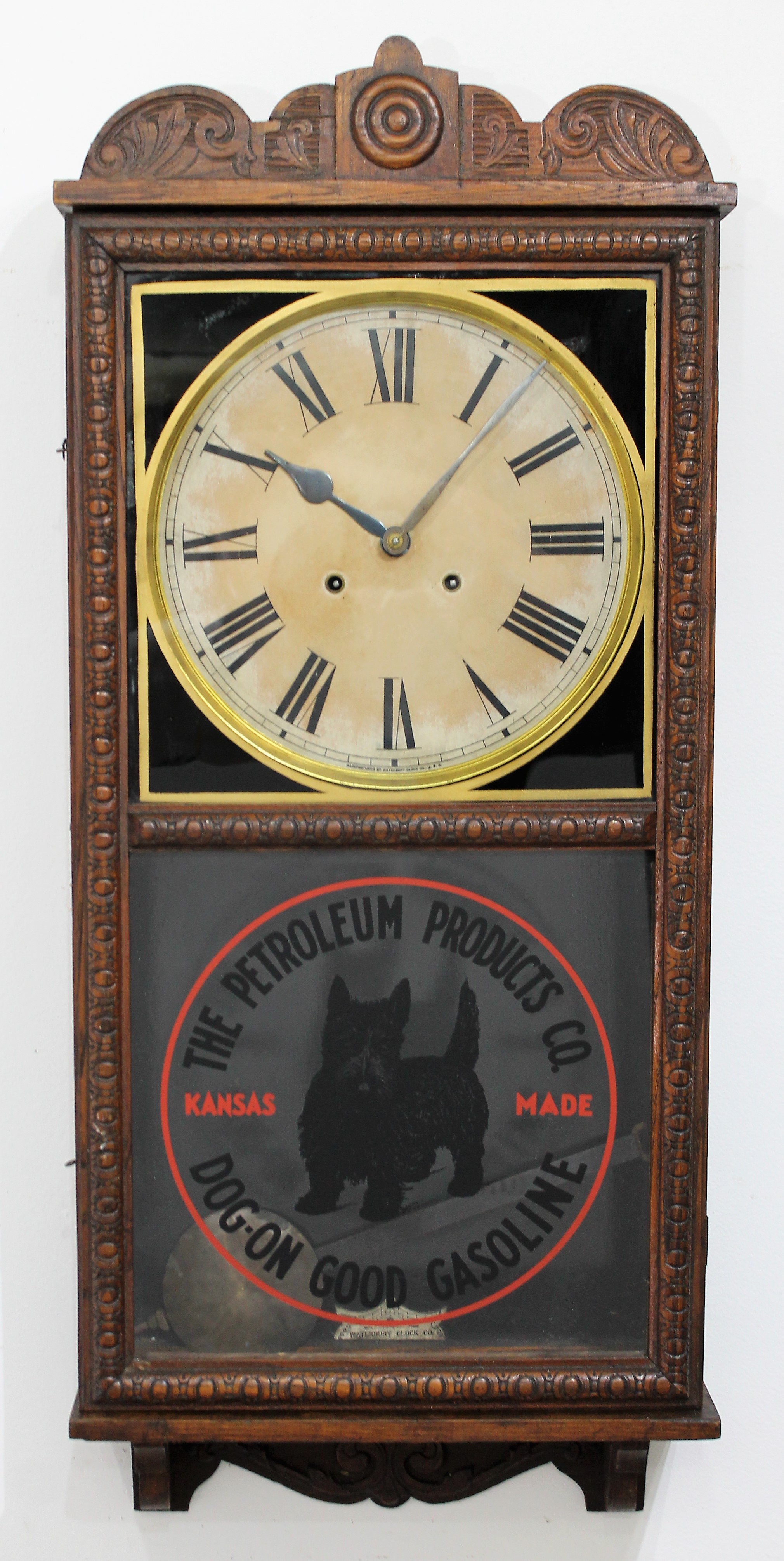 clock. Incidentally, the glass, with black lettering and a black dog, is a very poor choice for this clock, given the black