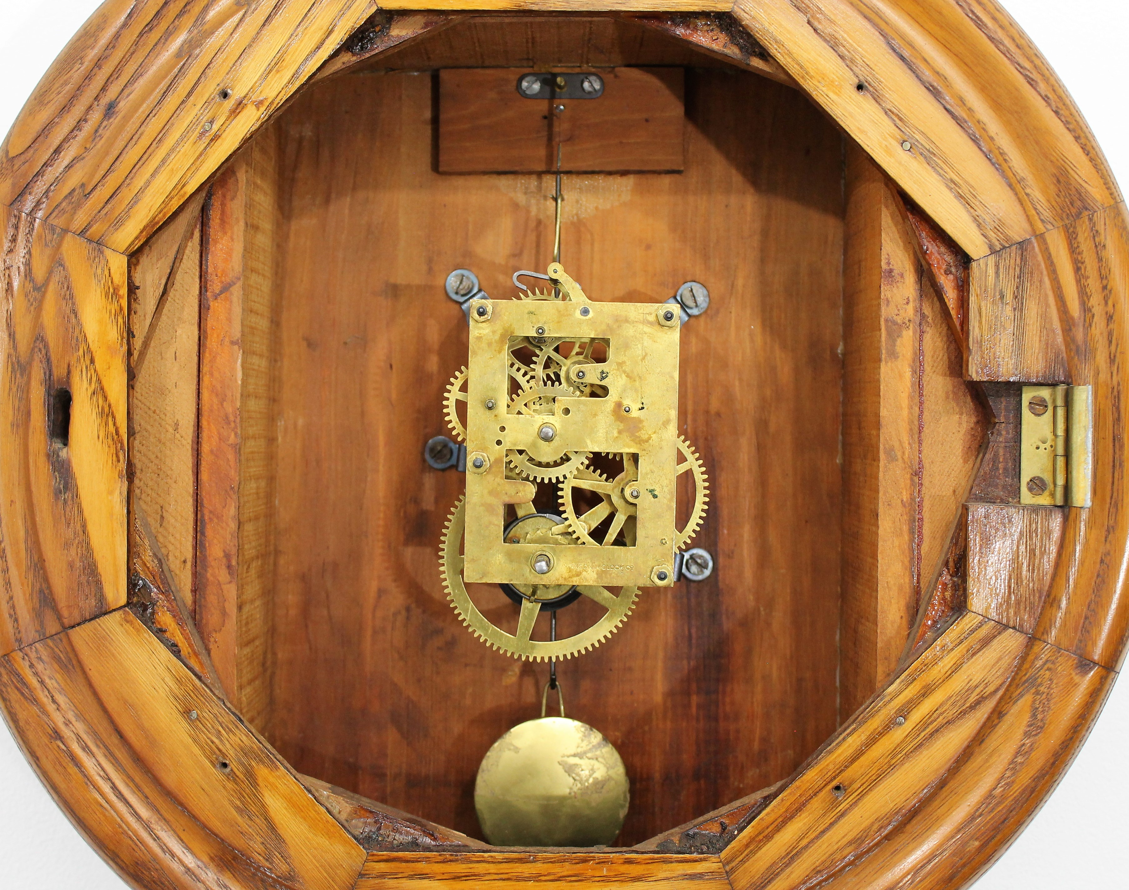 Ansonia Clock Co. gallery clock, ca. 1914. The oak