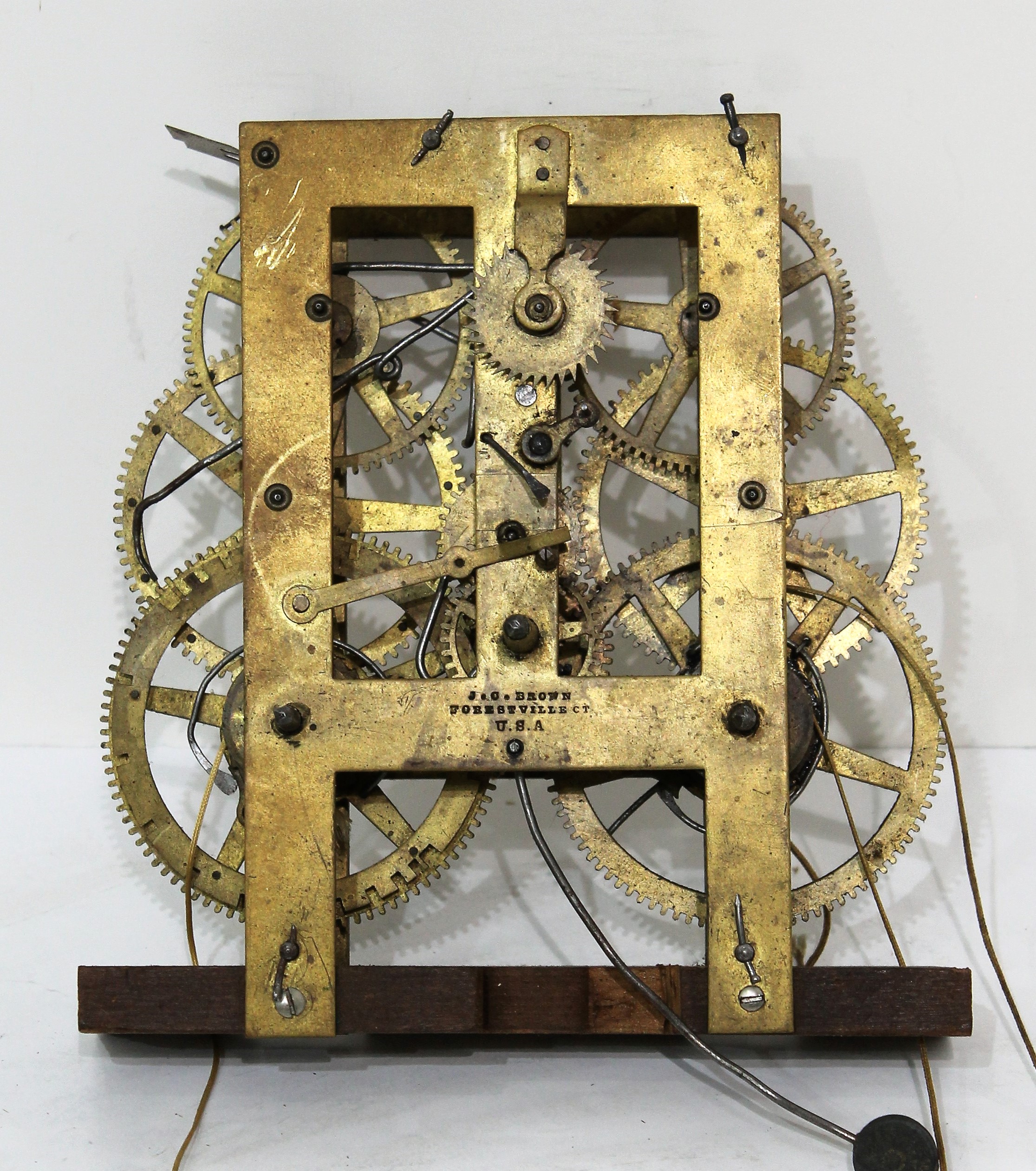 brass time-and-strike movement. Not tested. Die-stamped with J.C. Brown name. $10-$25.