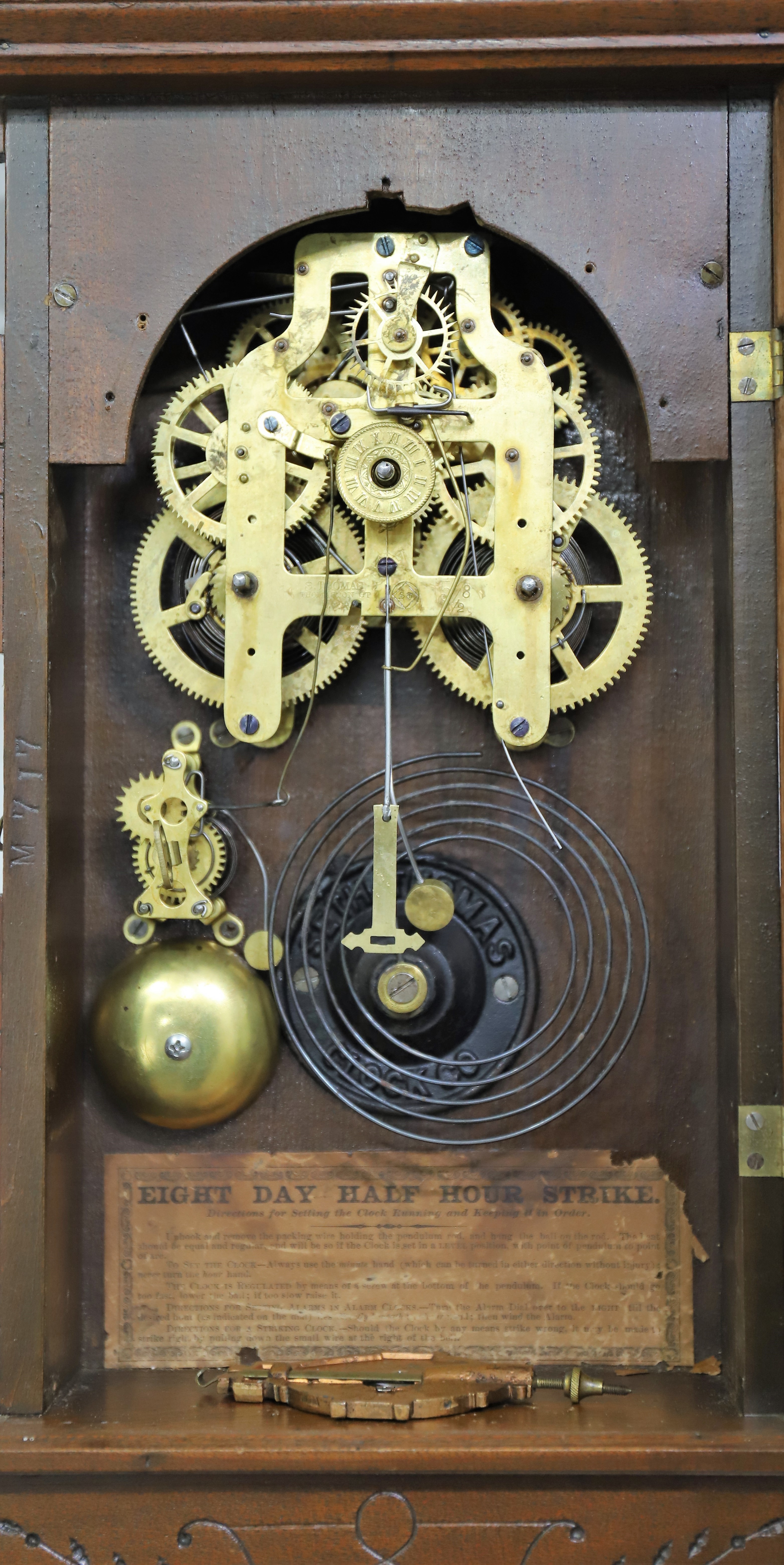 pendulum made for this model (note that there is also a shelf version), and an instruction label on the inside back wall. This