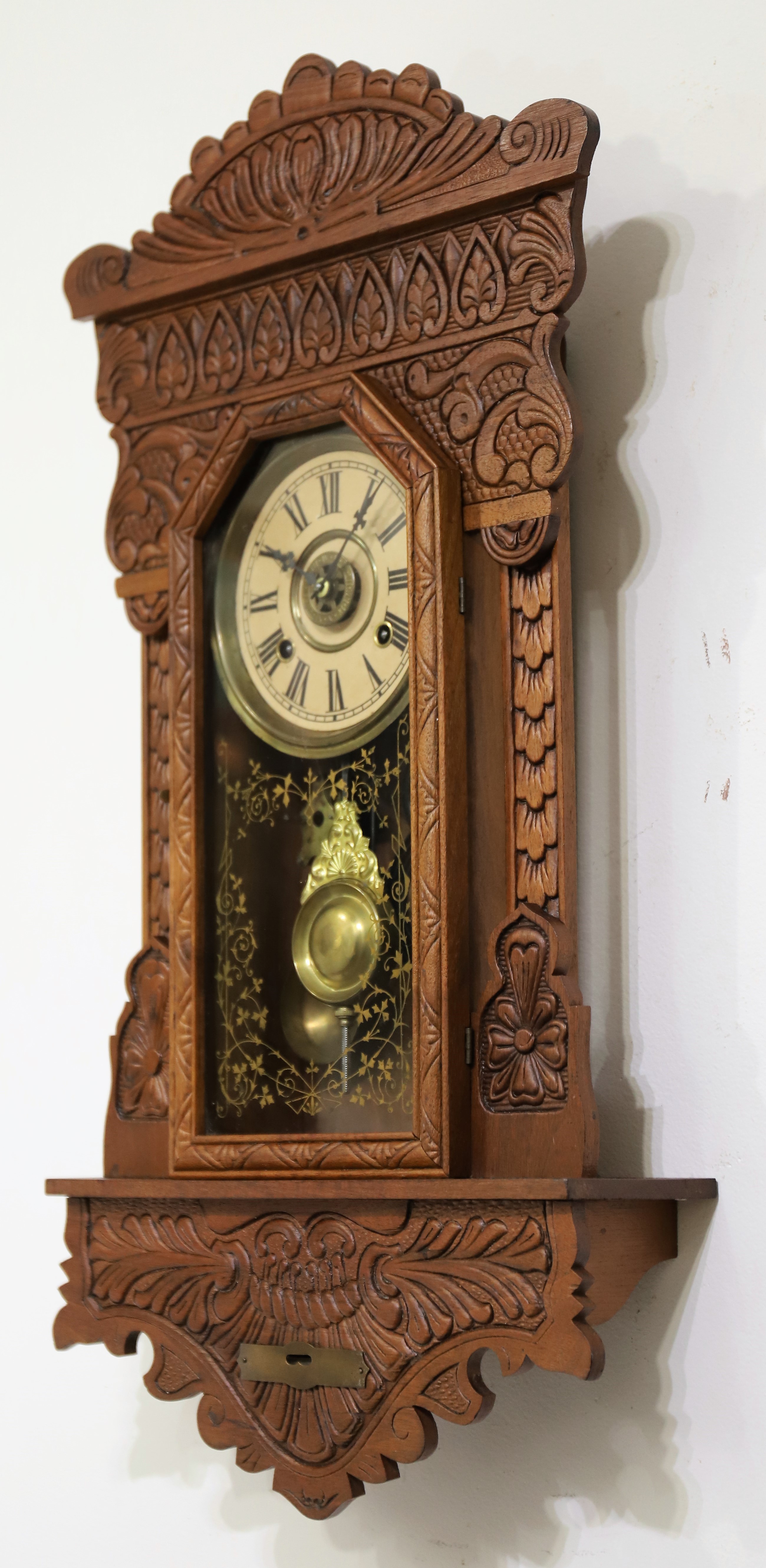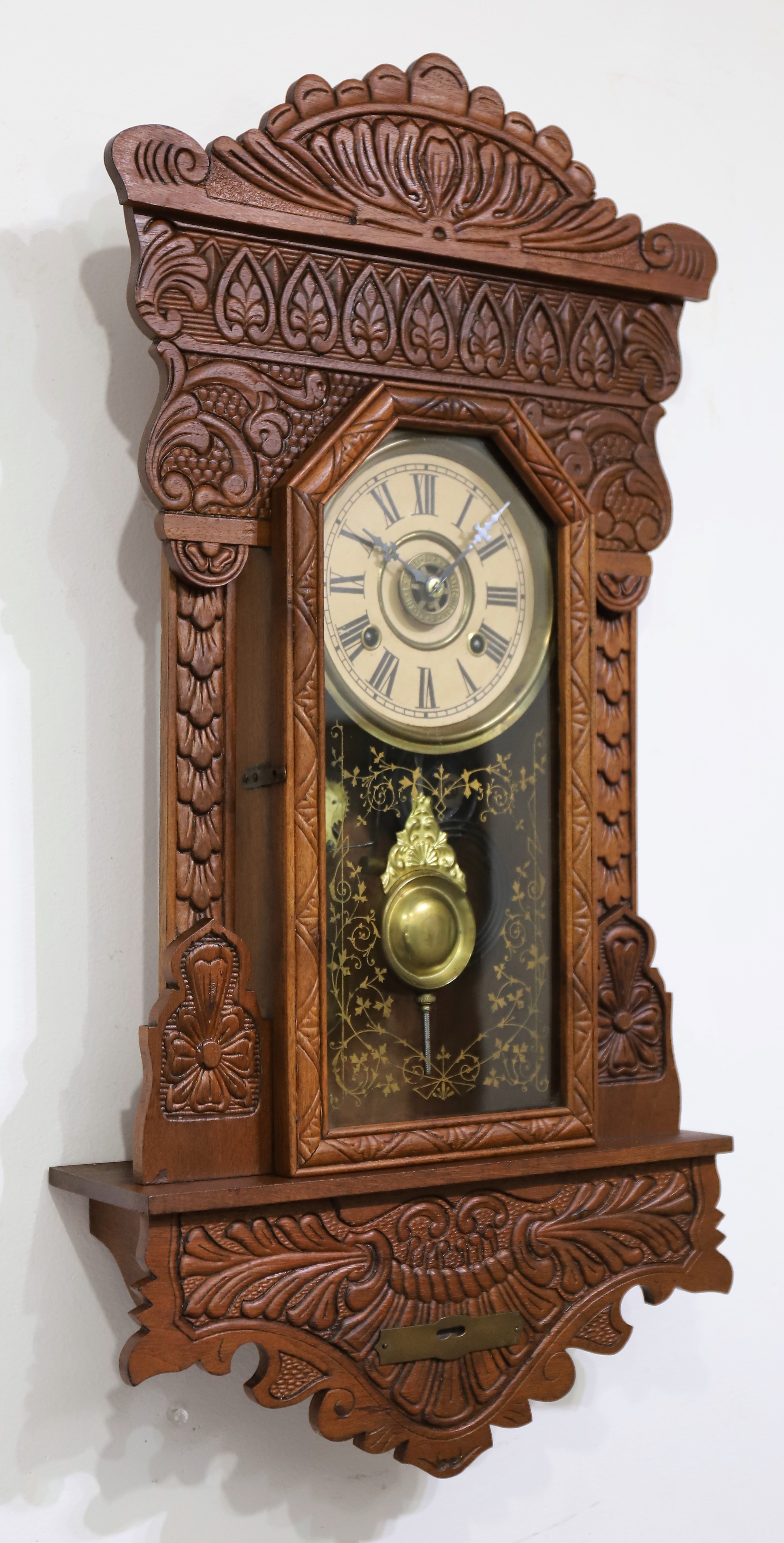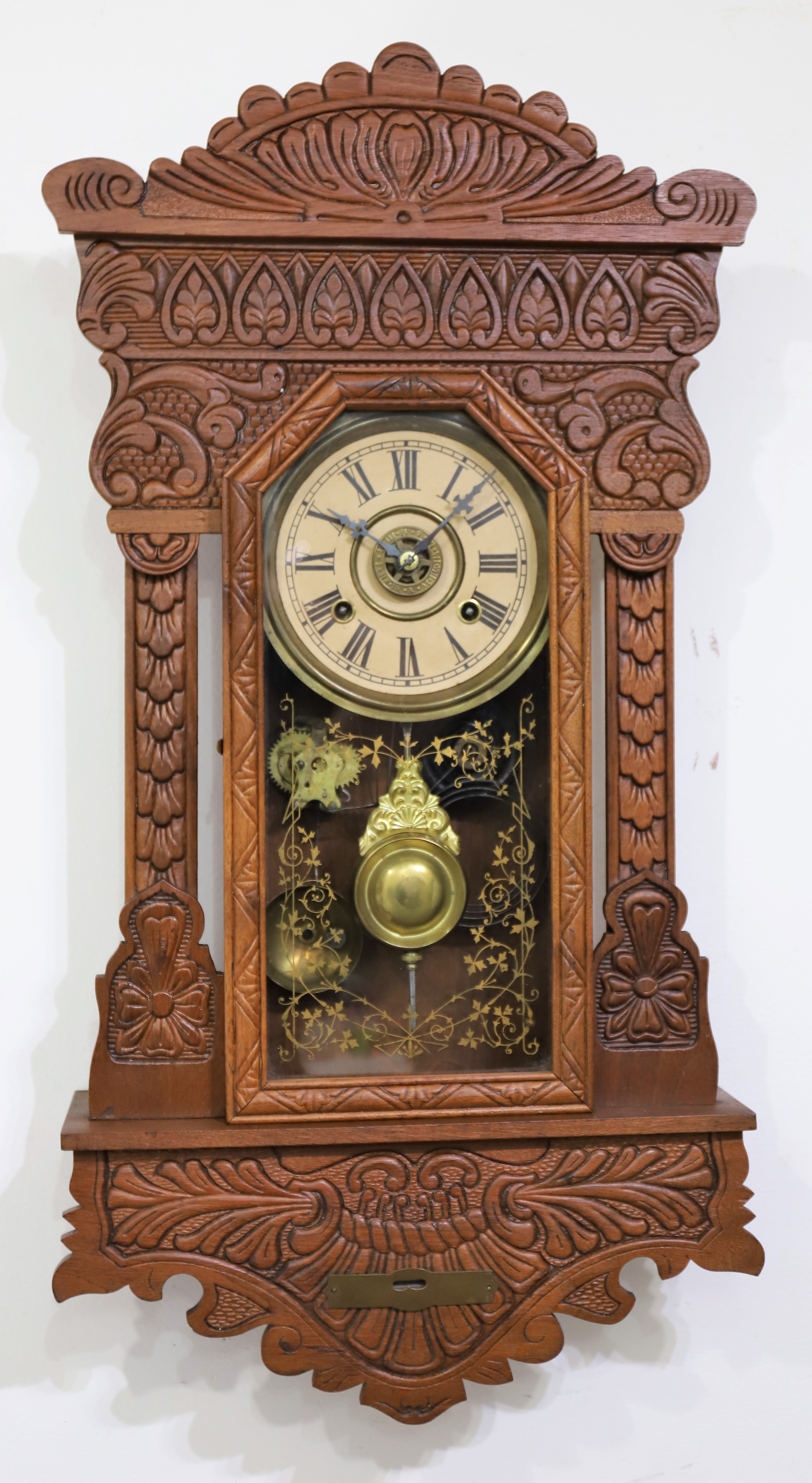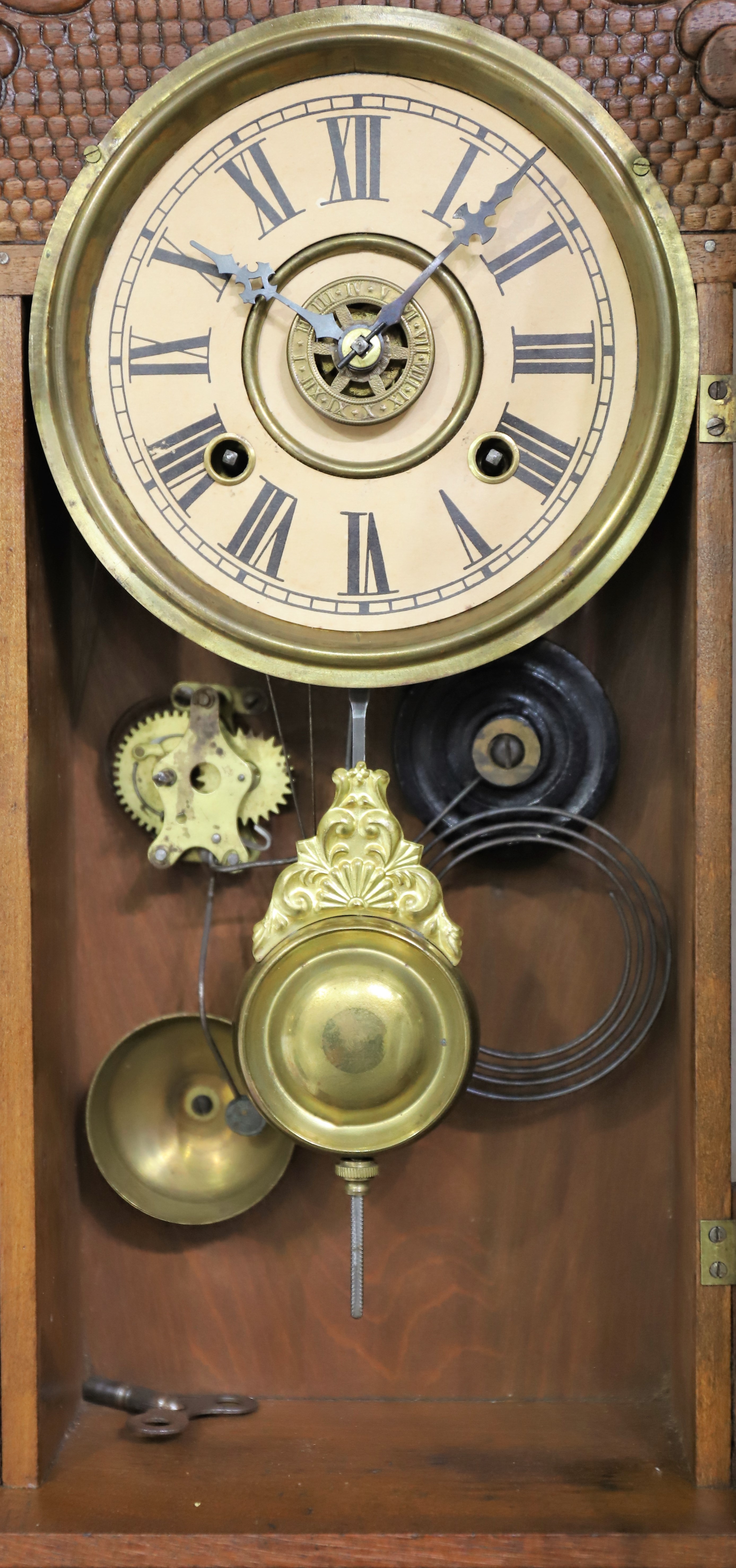 New Haven Clock Co. pressed wood hanging clock, ca.
