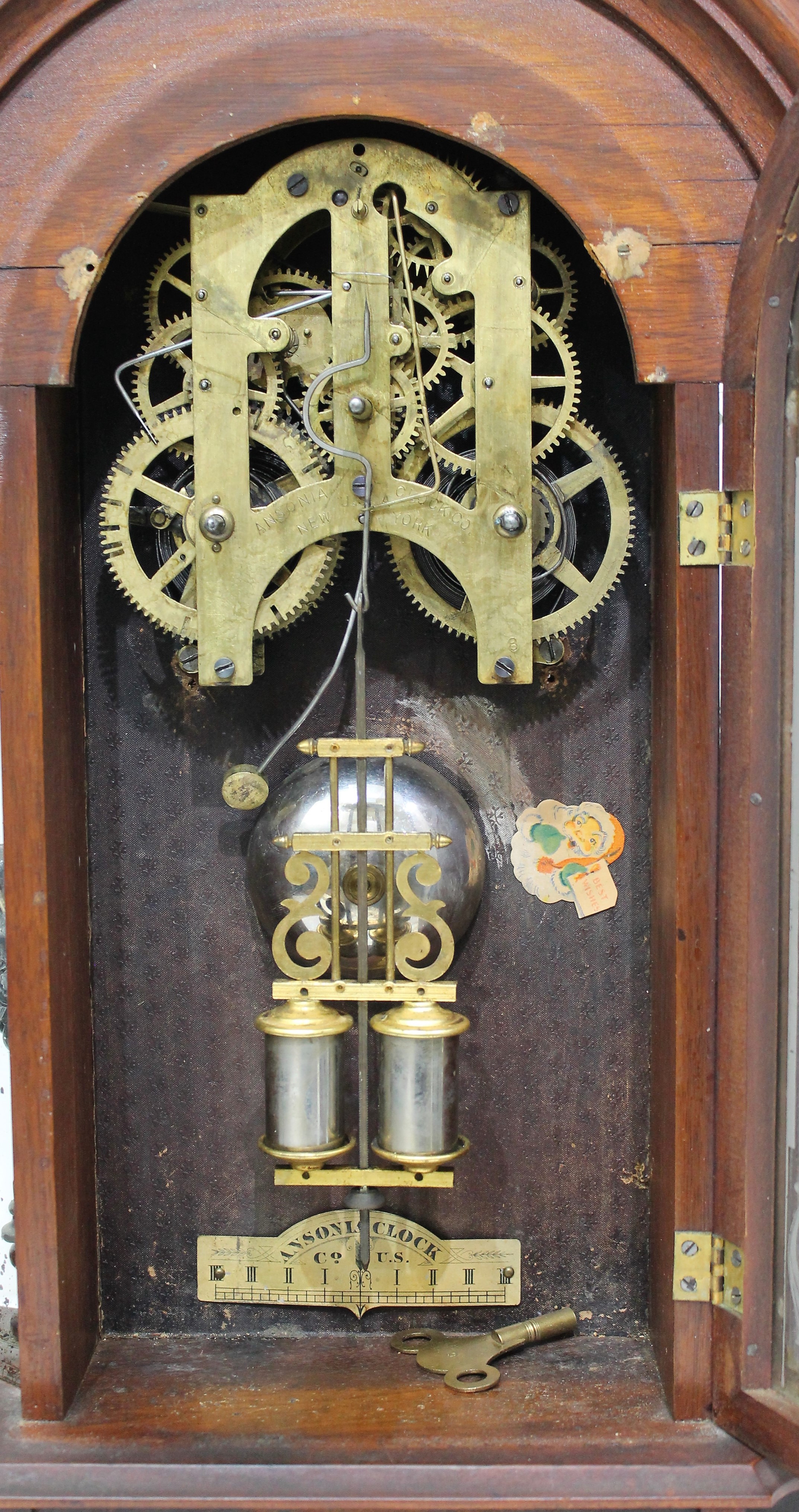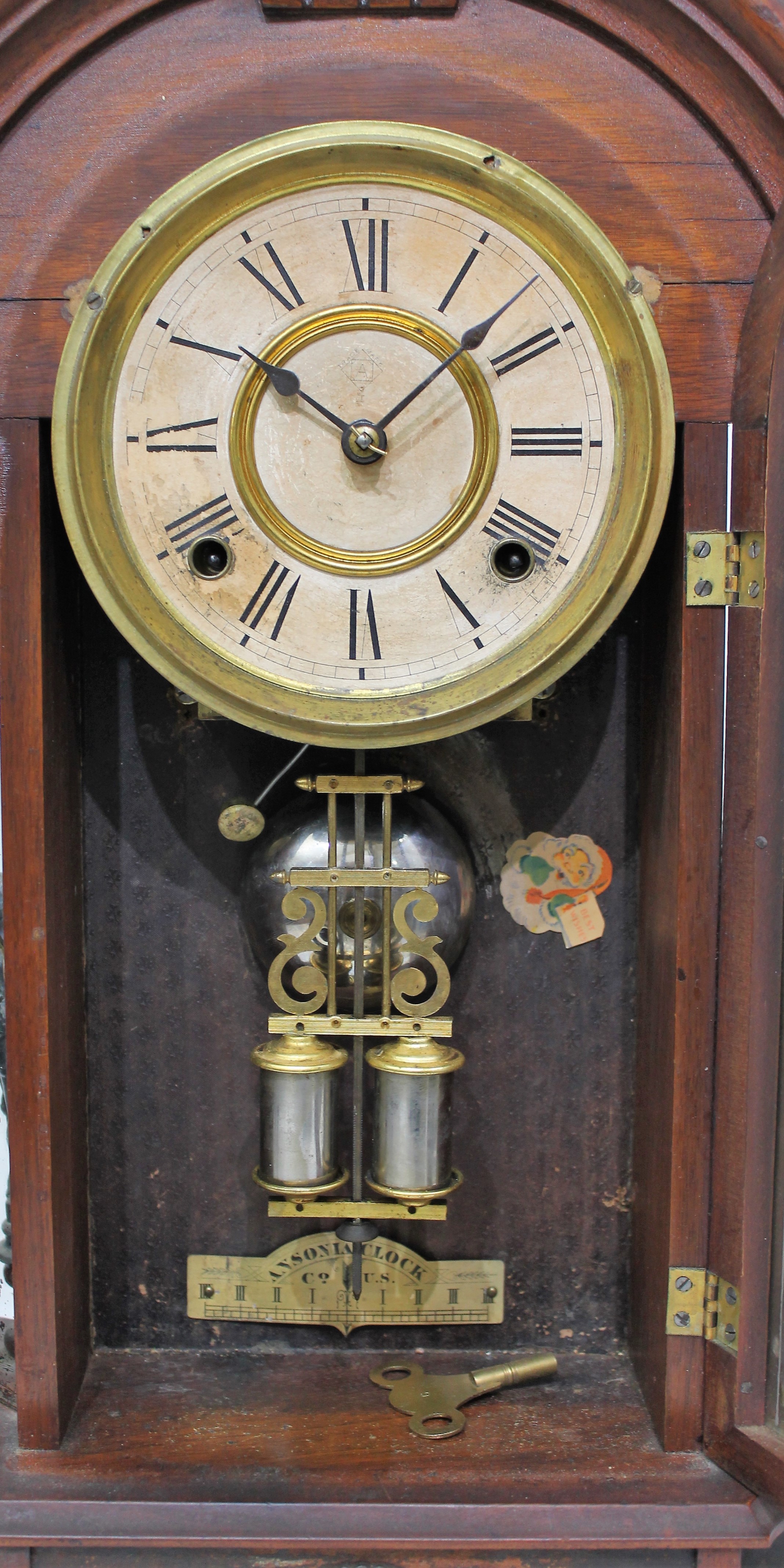 glass with some loss to the stenciling from 140 years of cleaning. The paper dial bears the Ansonia logo and isn’t too badly