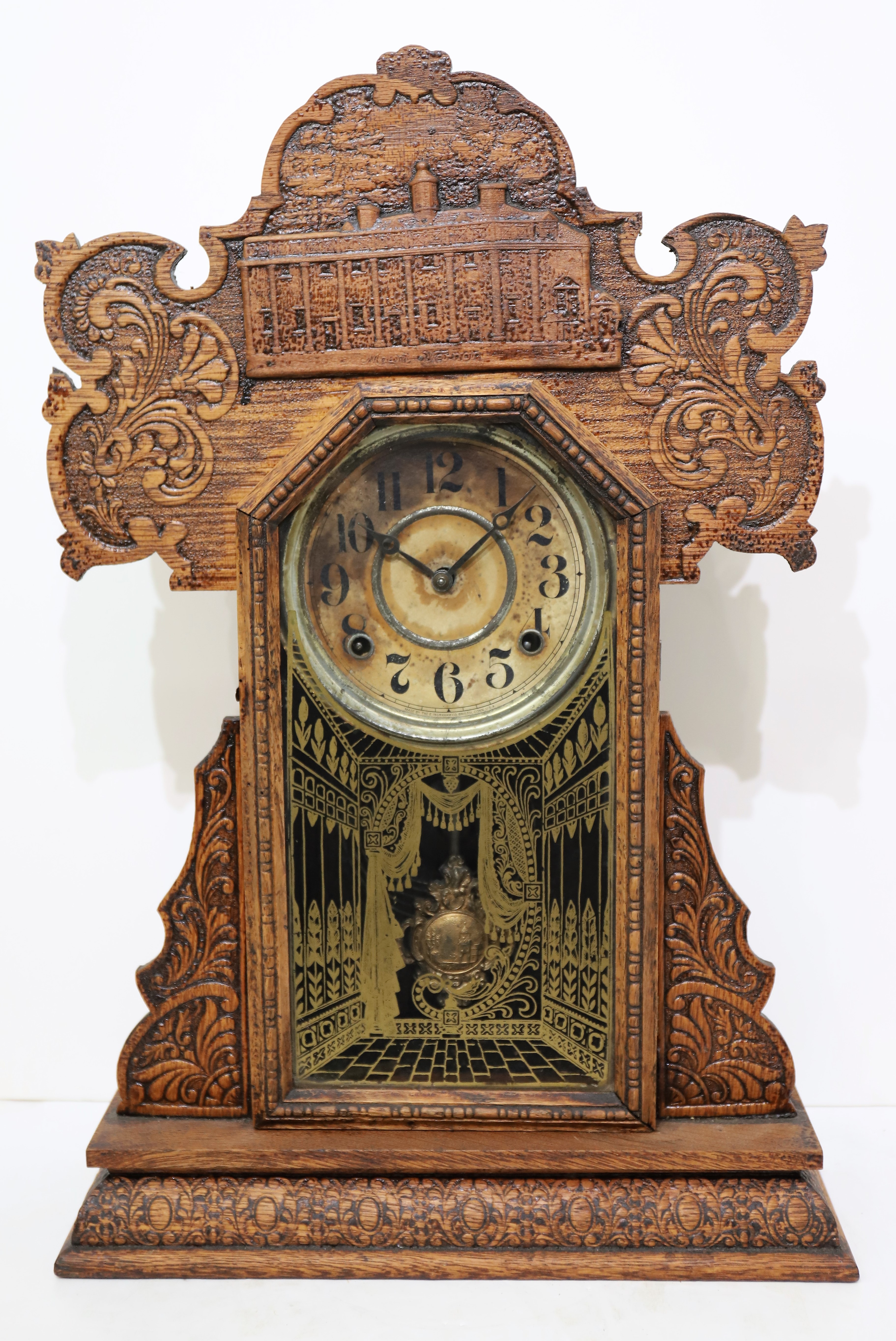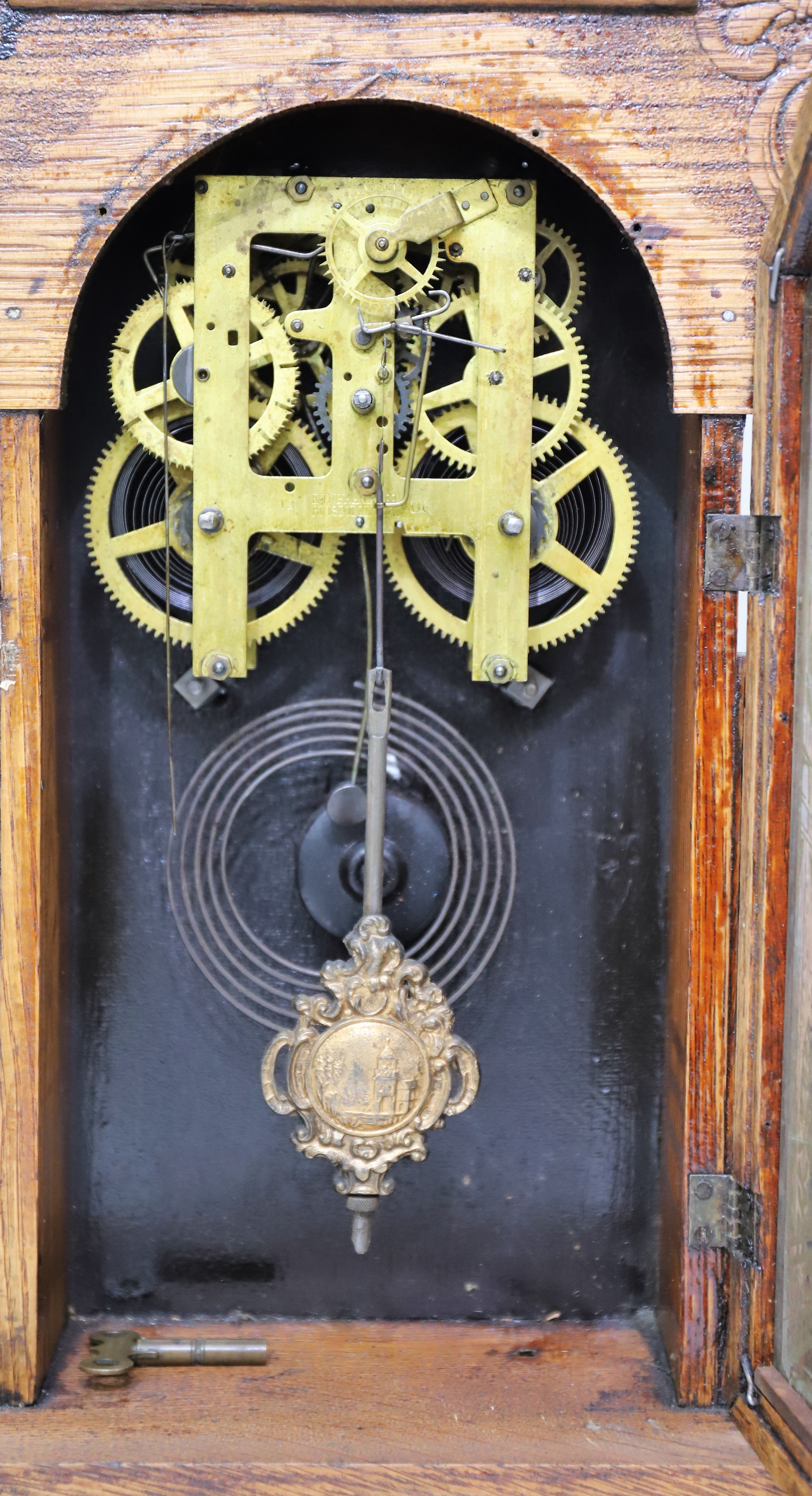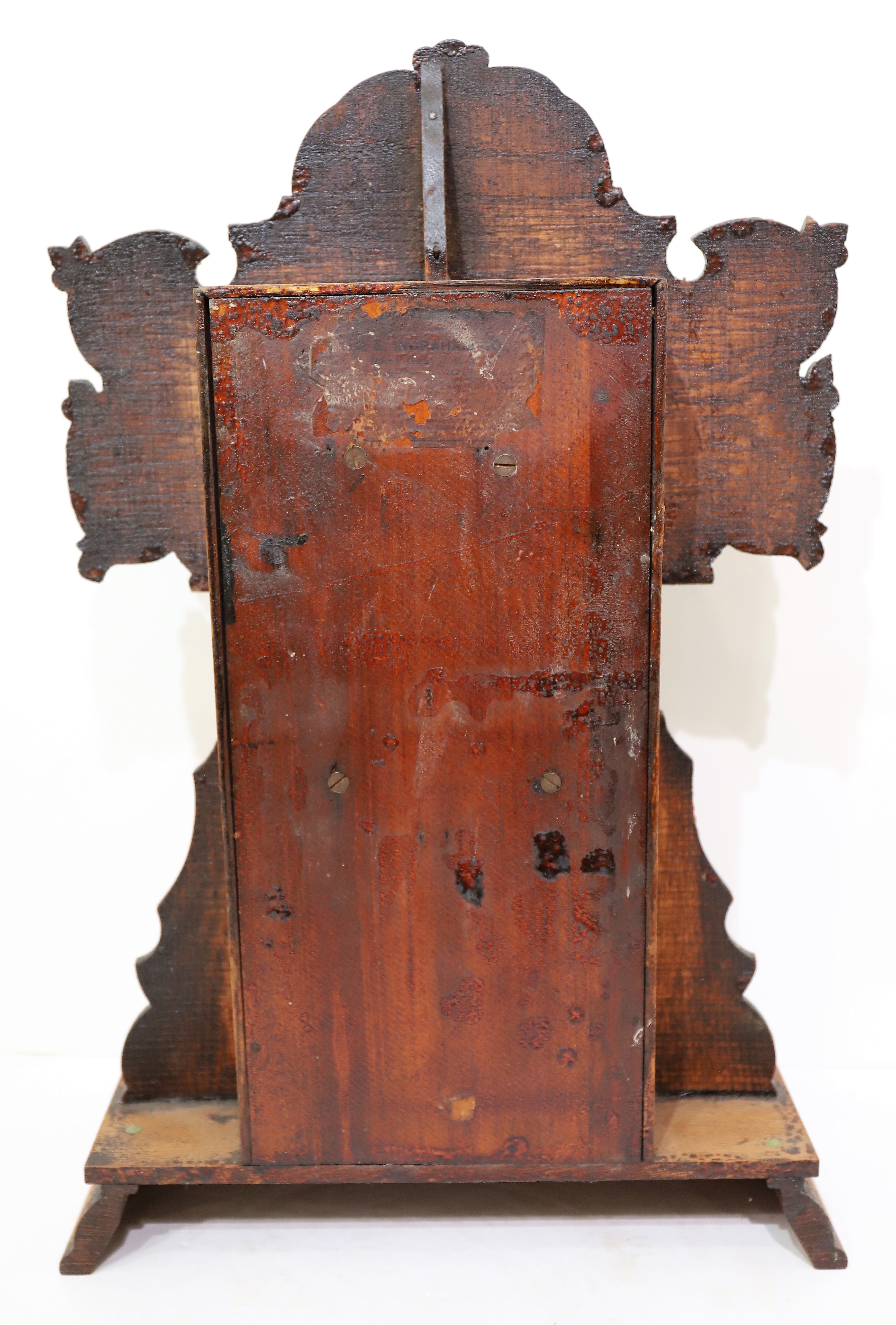 are correct. The signed 8-day, time-and-strike movement is running and striking, reluctantly. Ingraham pendulum and remnants