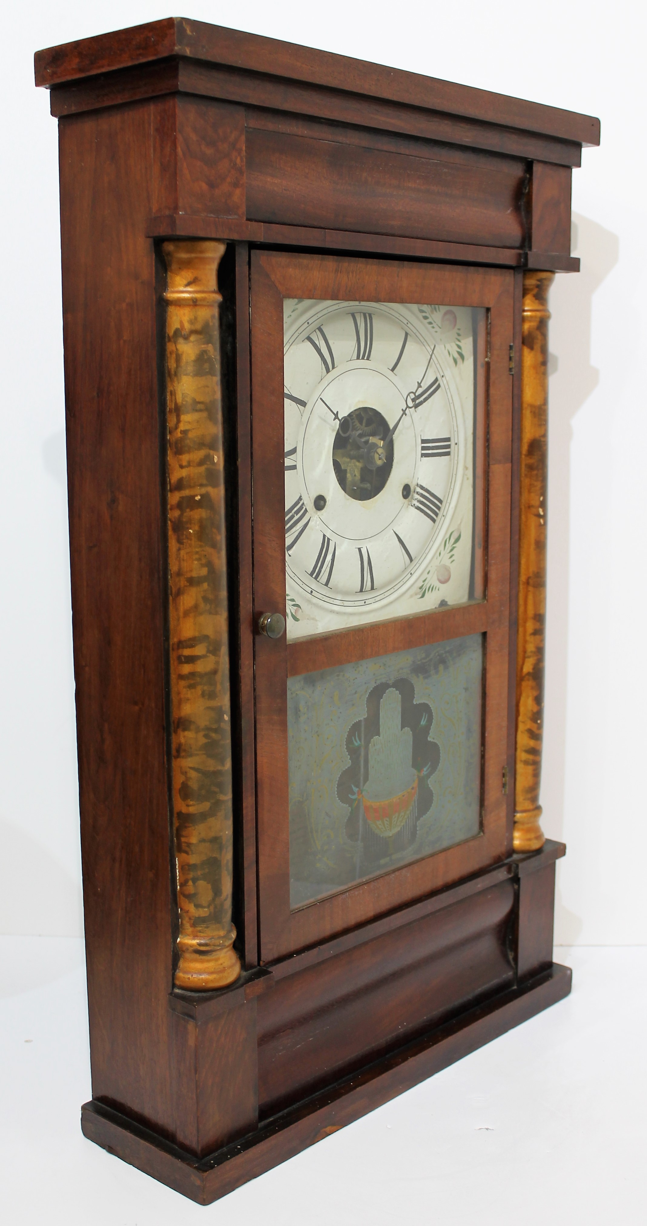 25-inch case with good mahogany veneer, two original glasses, a period painted dial, period hands, and a weight-driven, 30-hour, time-and-strike