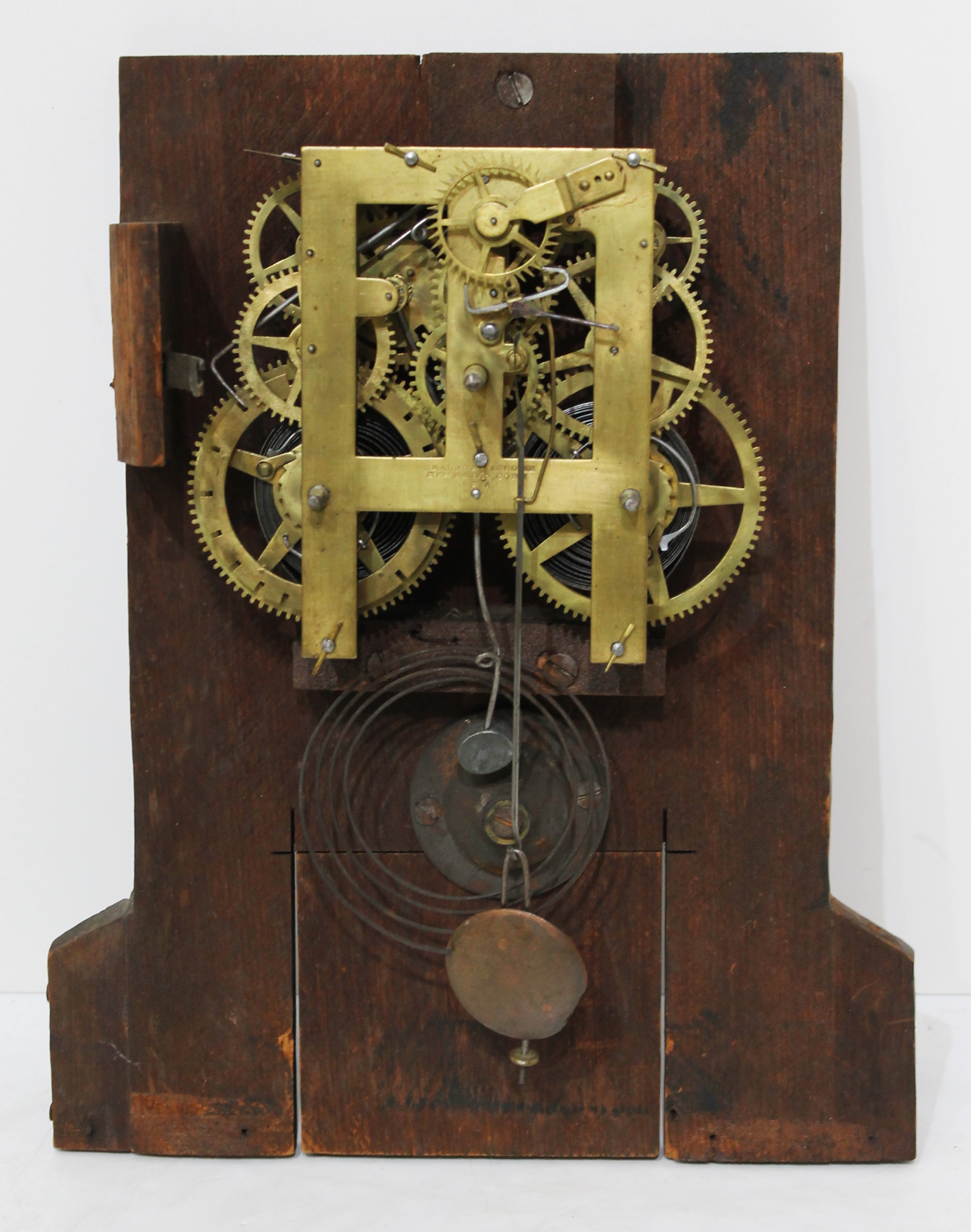Jerome, New Haven Conn USA; it is running and striking on a wire gong. There is no label. Rough. $50-$100.