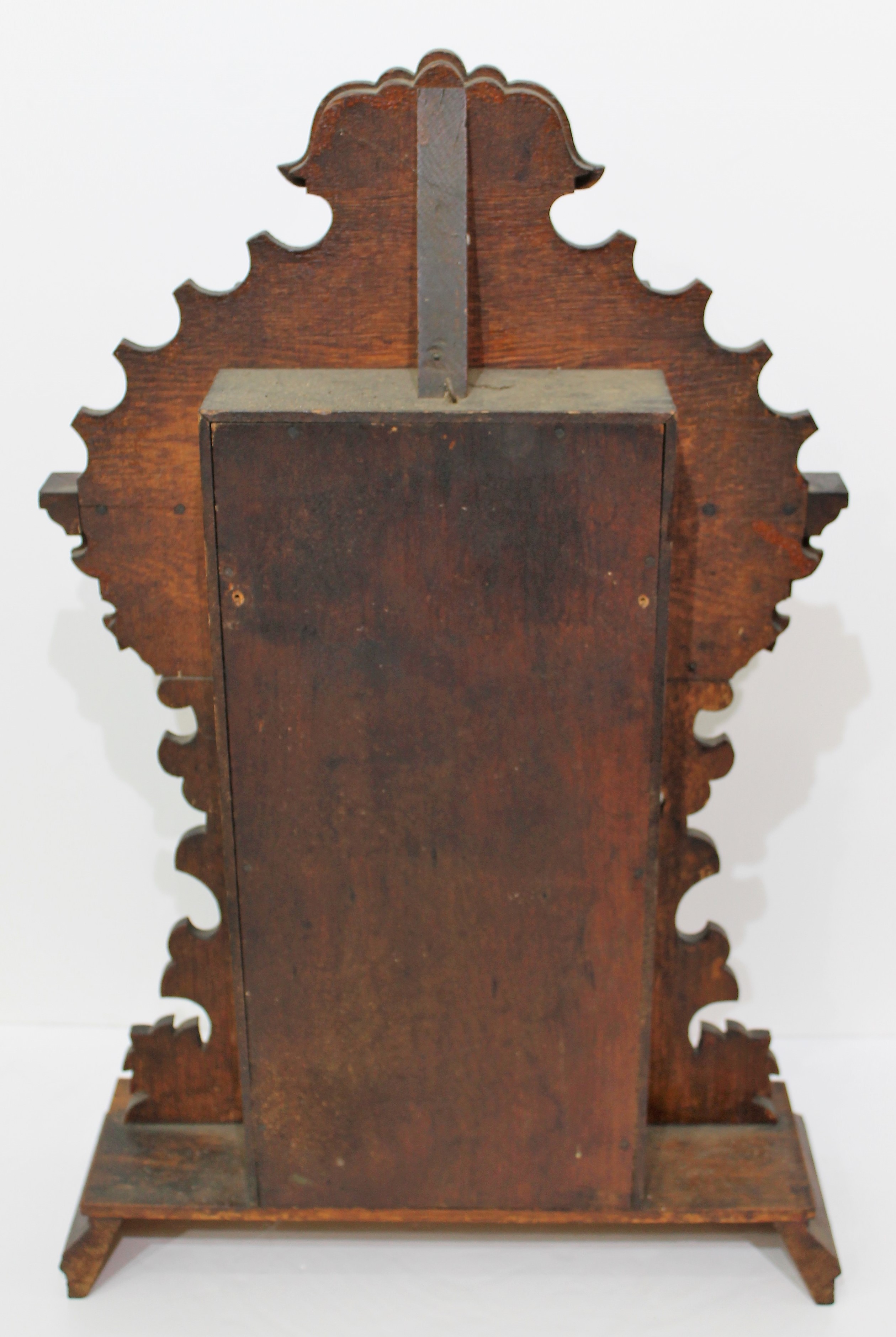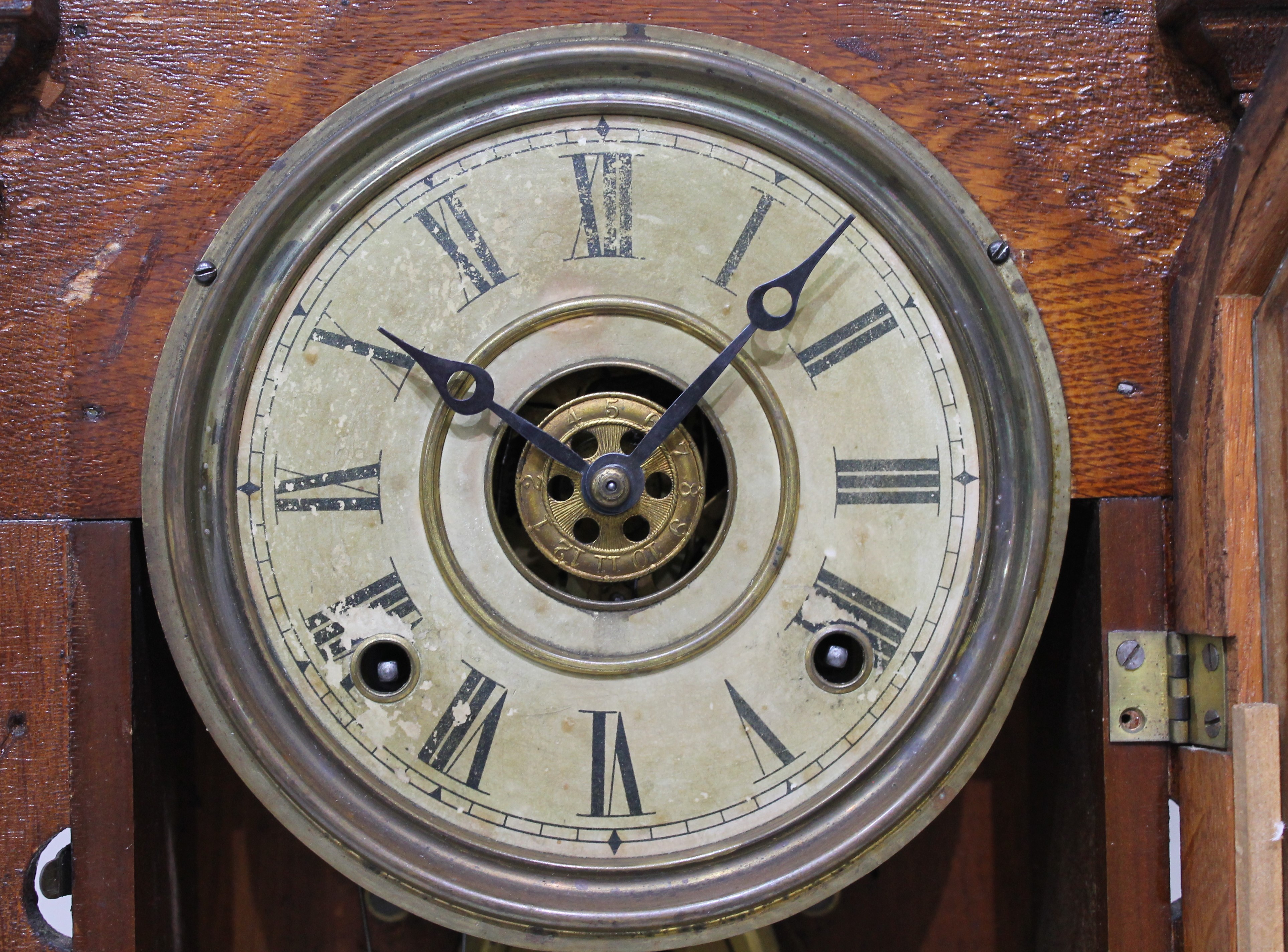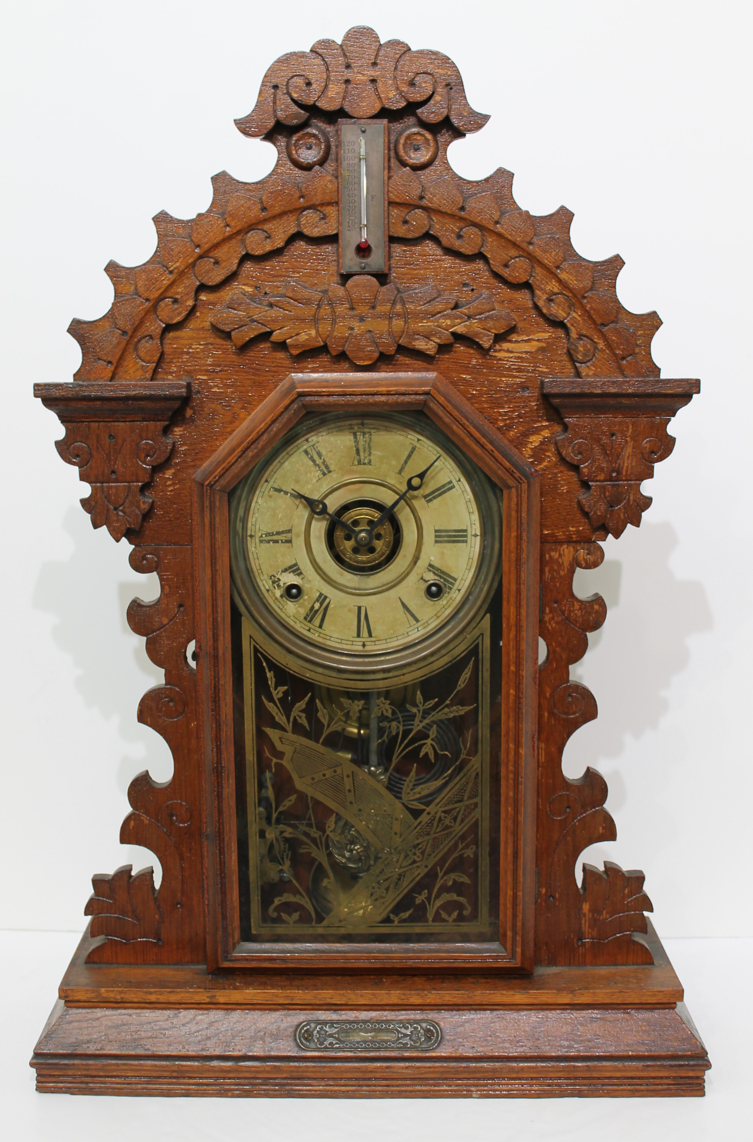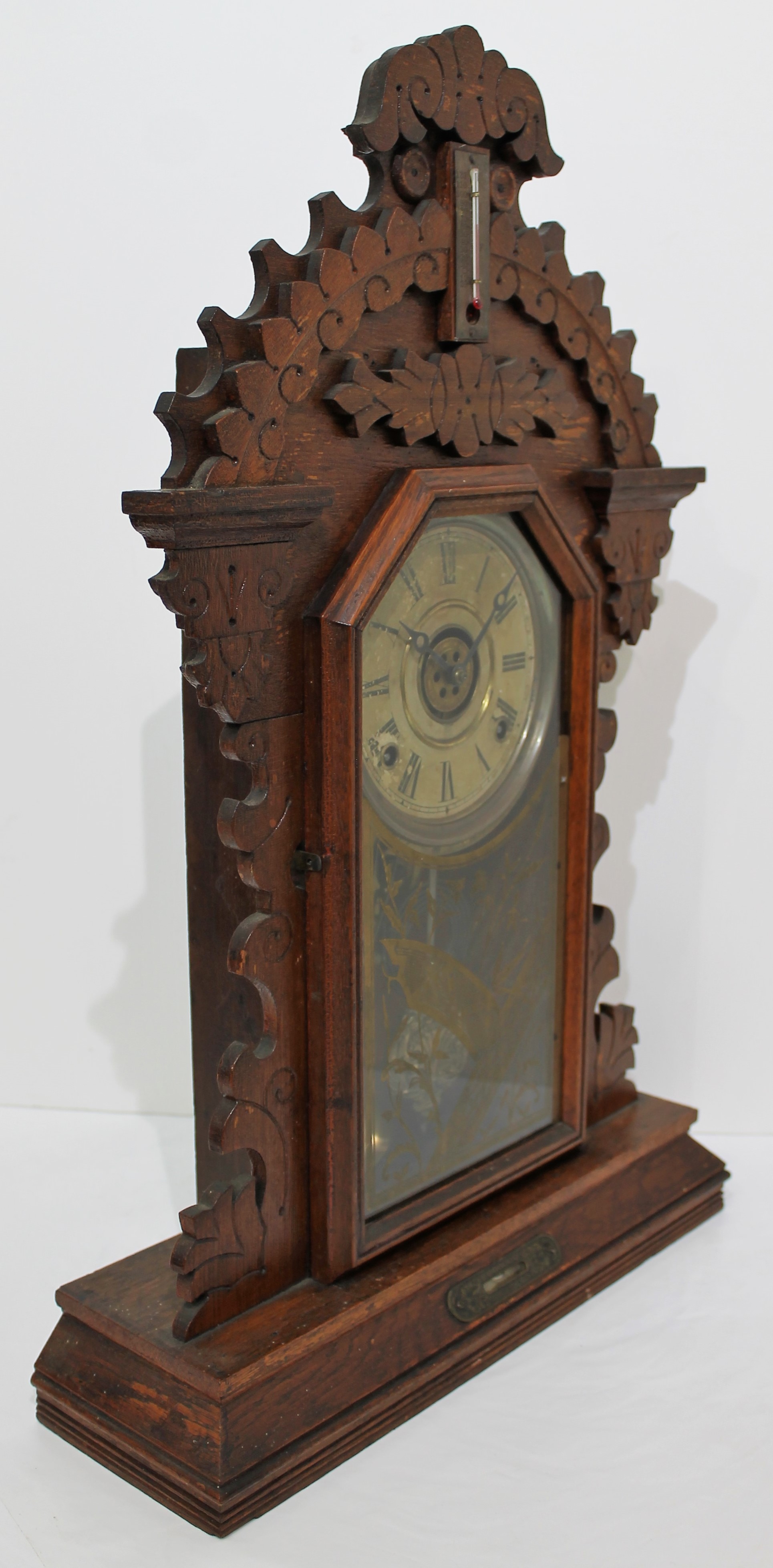 & Watches and there is no label, but the movement is stamped Ingraham. The oak case is 23.5 inches tall with an old, probably