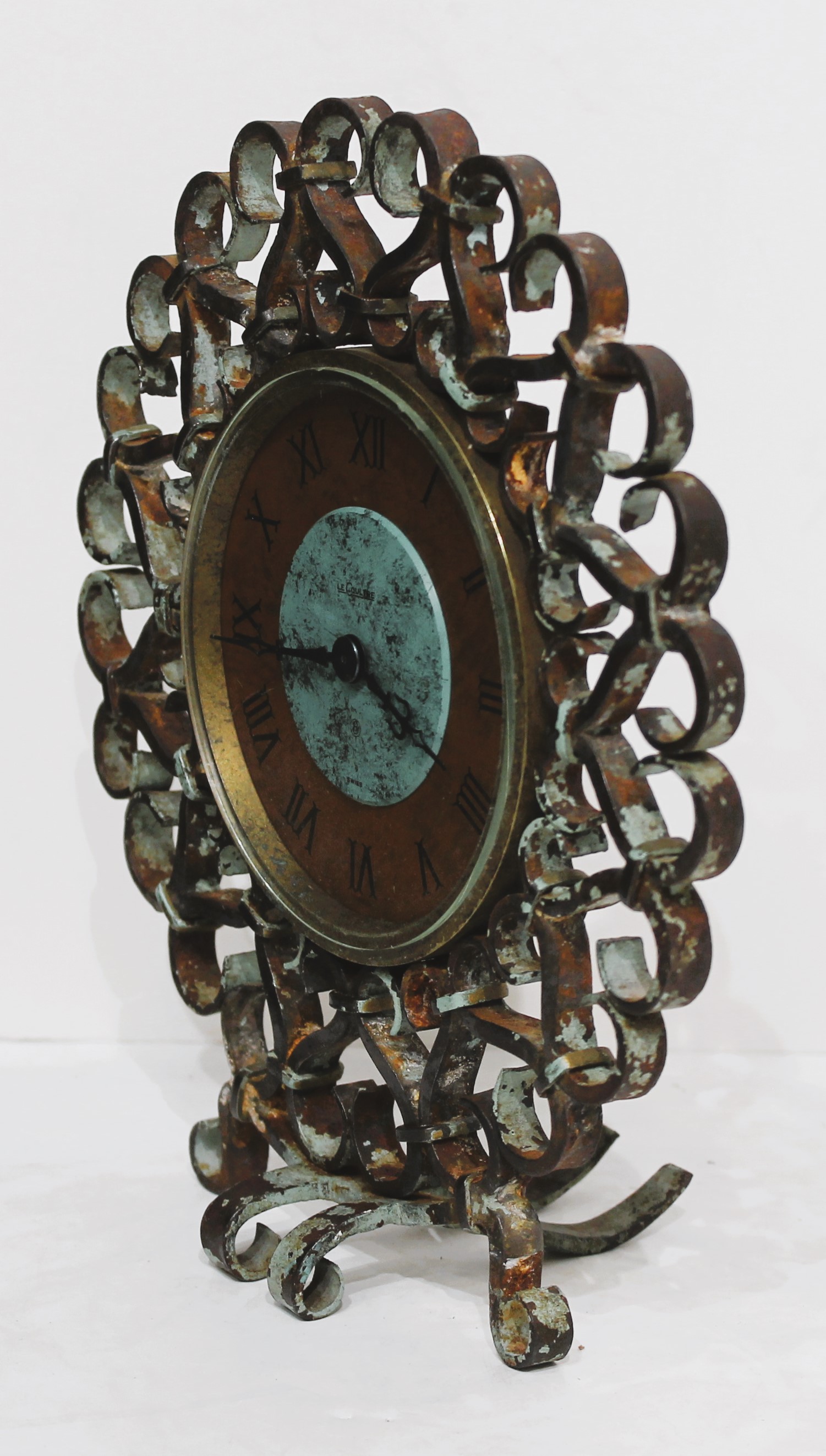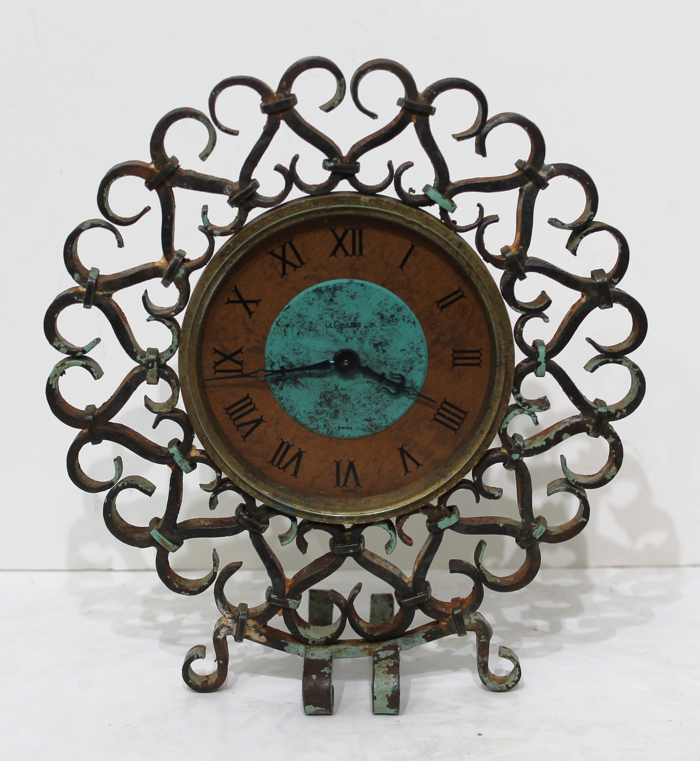 LeCoultre desk clock, ca. 1955. A 9-inch wrought-iron