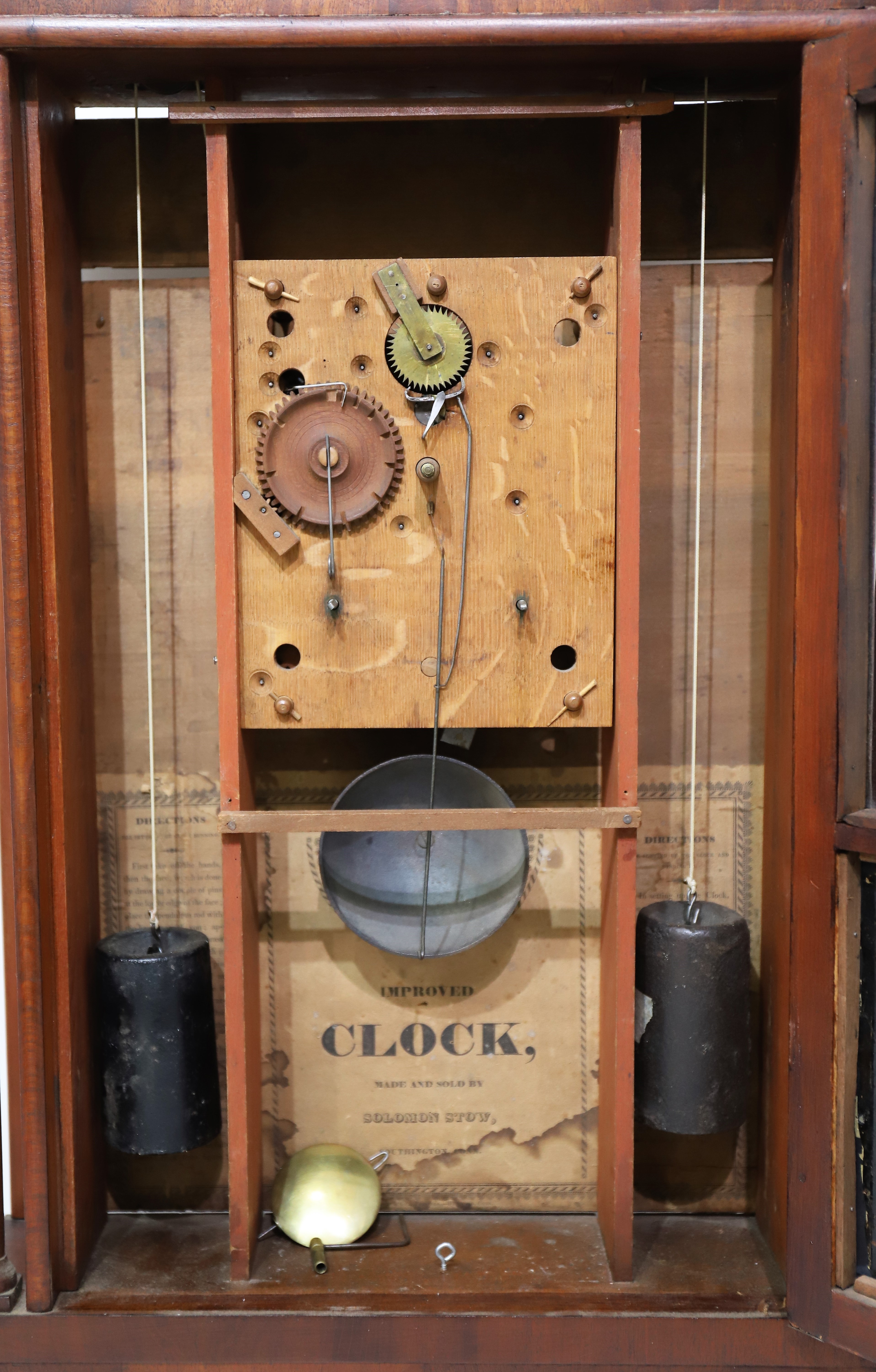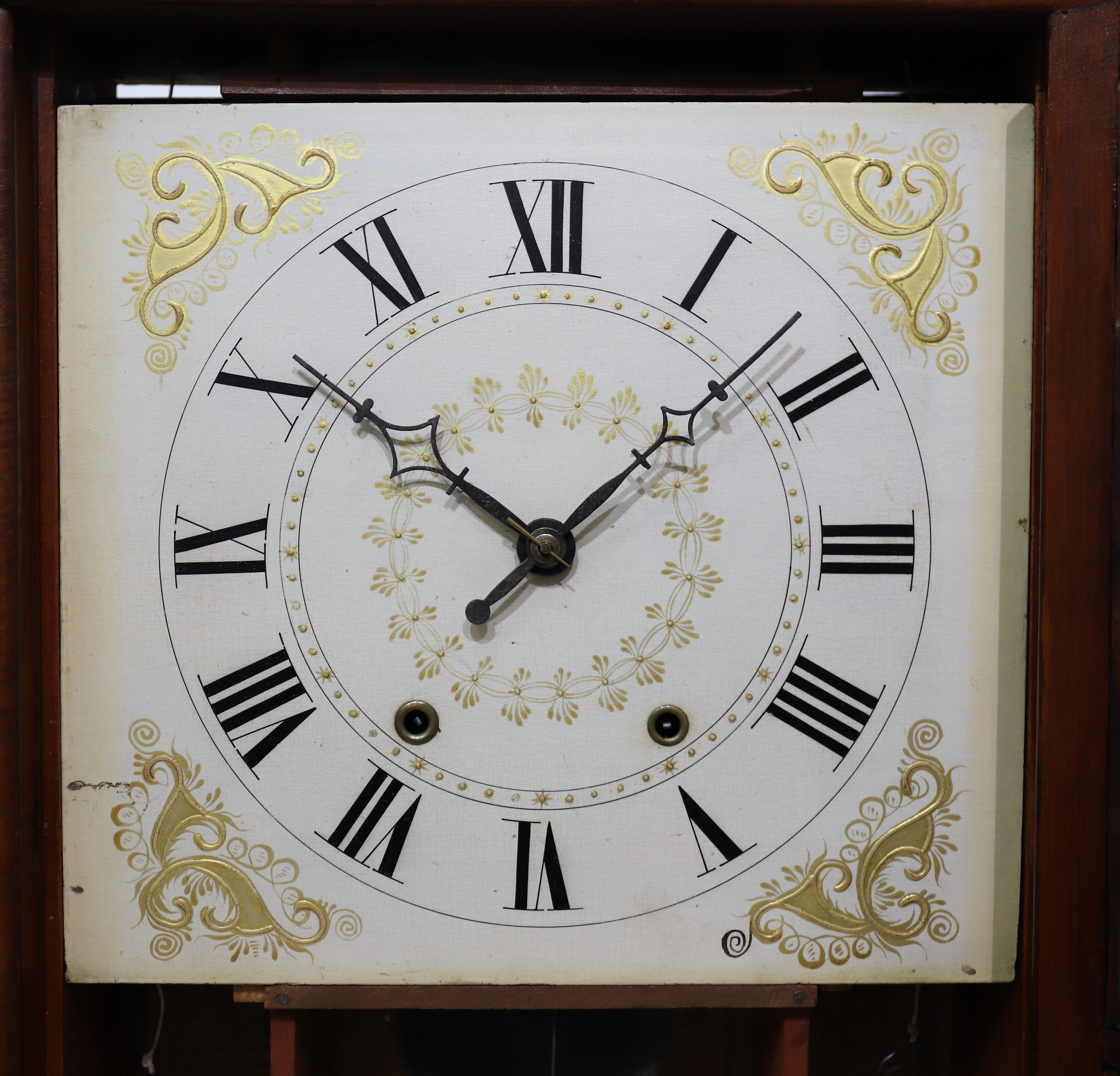 too clean not to have been repainted, the hands are period/correct. The 30-hour time-and-strike wood movement will run briefly