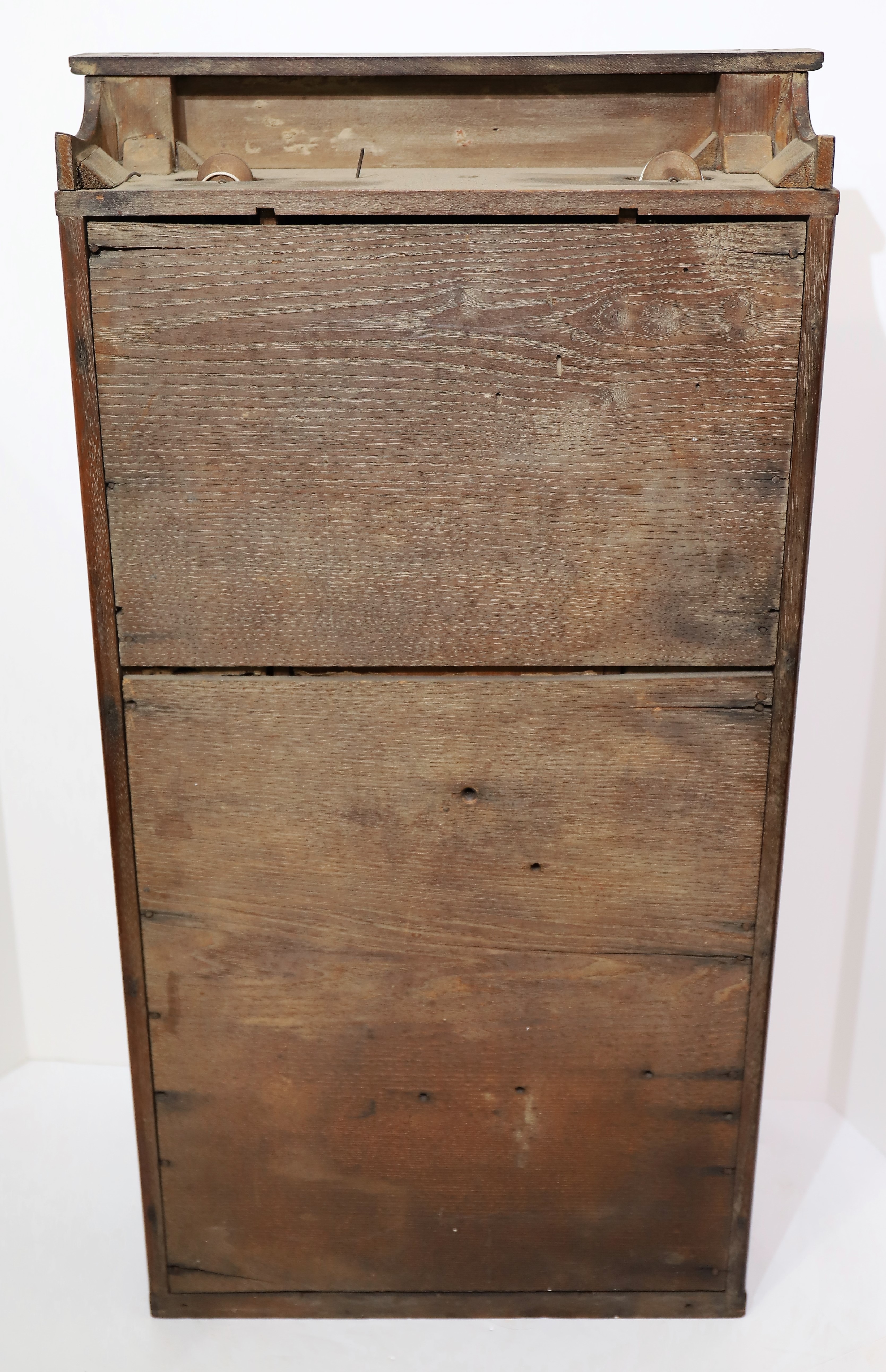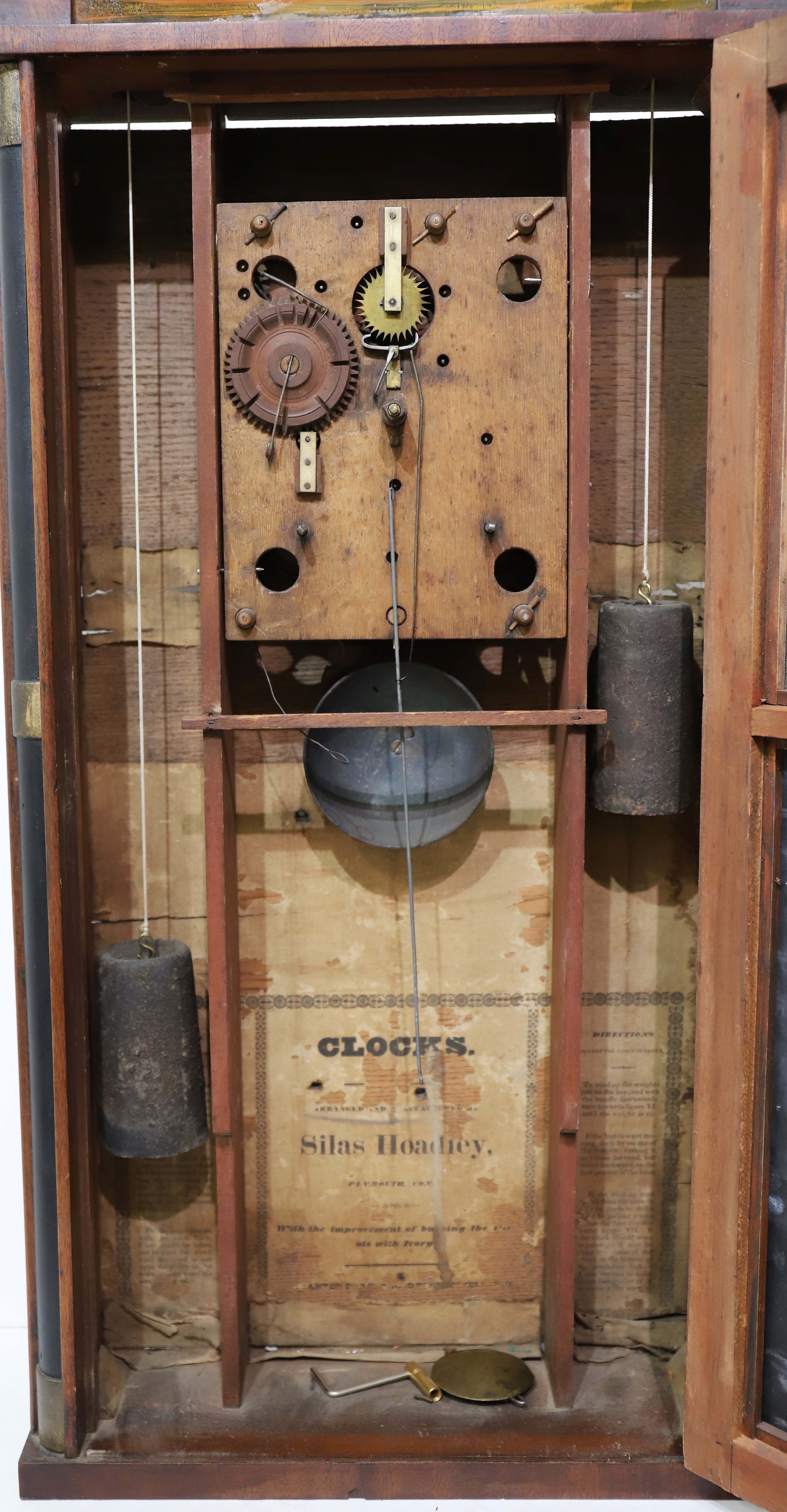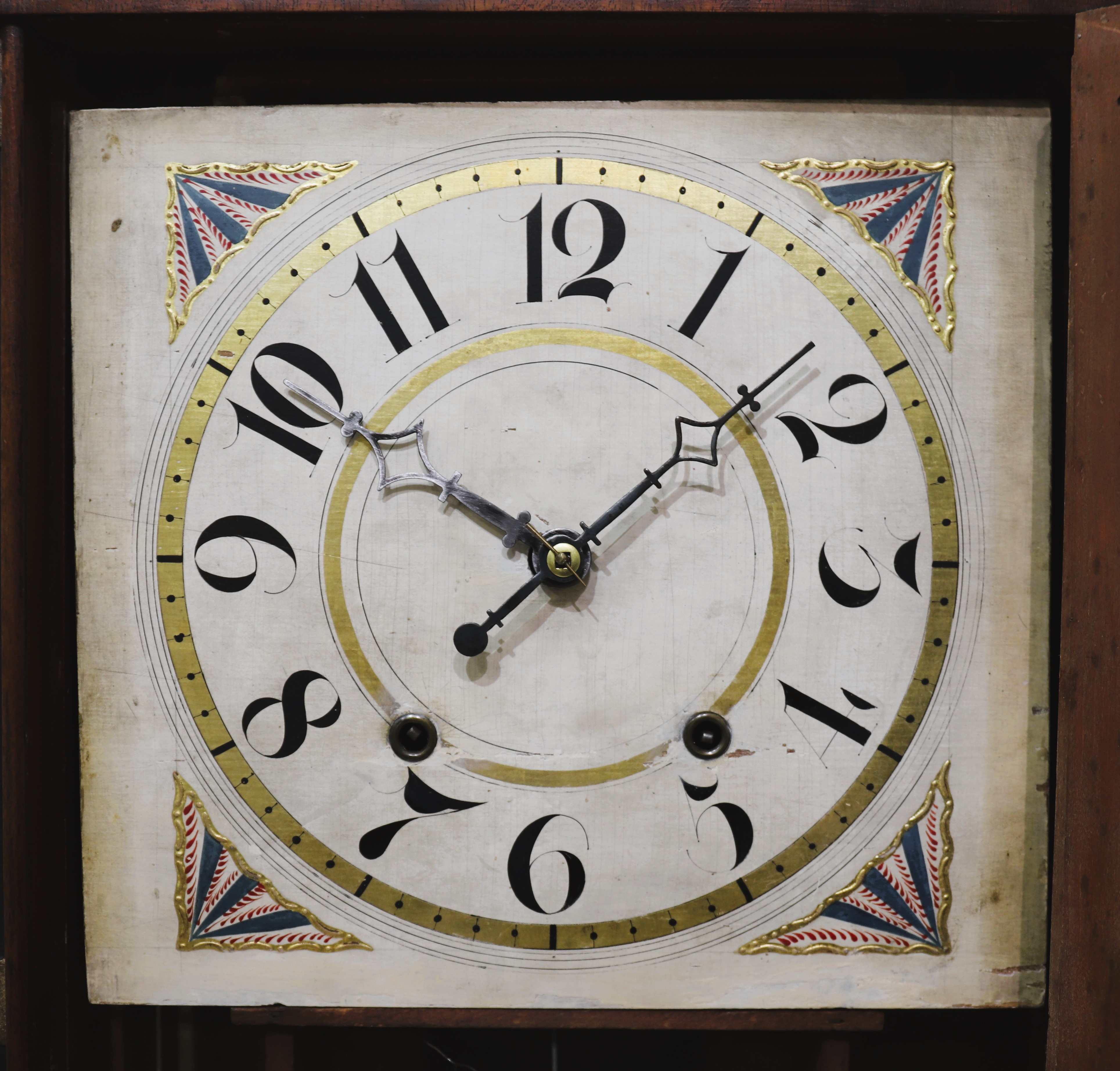 highlighting of the chapter rings. The hands are period. The 30-hour wooden movement runs briefly but while the strike
