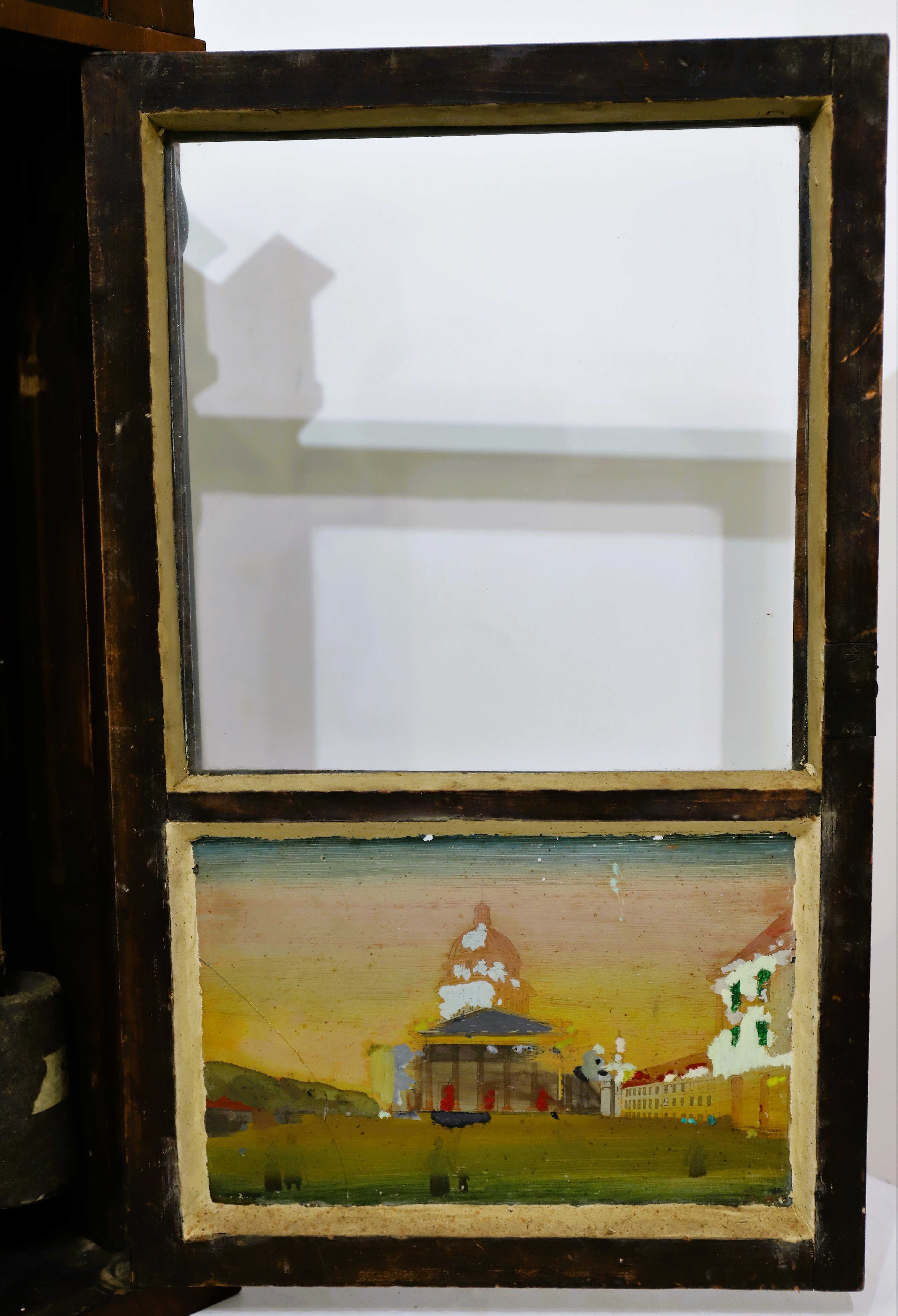 scroll clocks. The dial glass is modern, the tablet period and has been touched up slightly; it is cracked but stable. The tablet is in remarkably good condition and is a real plus here. The putty on both glasses is newer. The wooden dial