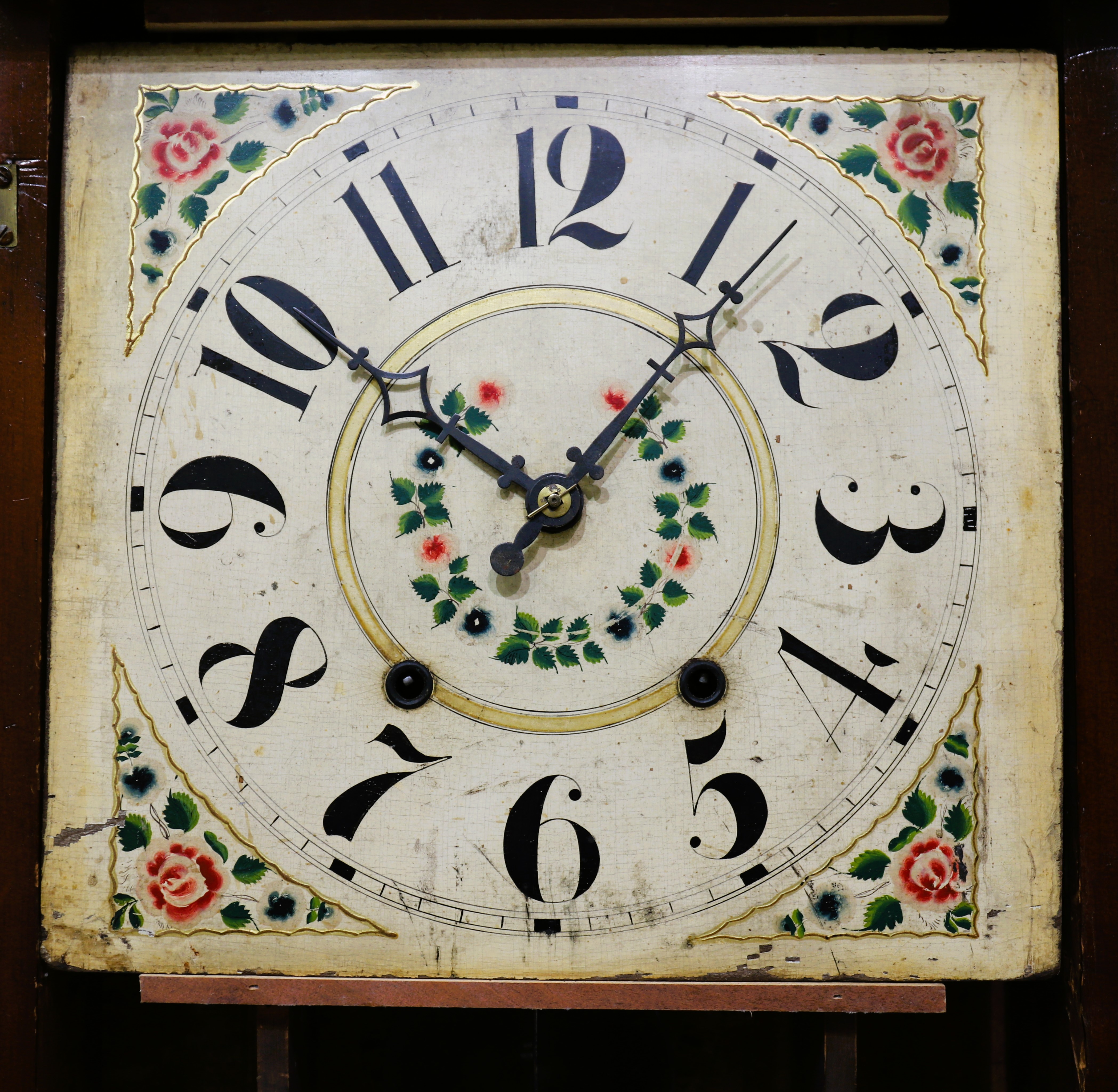 board is colorful but very soiled and will not readily clean up. The hands are correct but modern replacements. The 30-hour