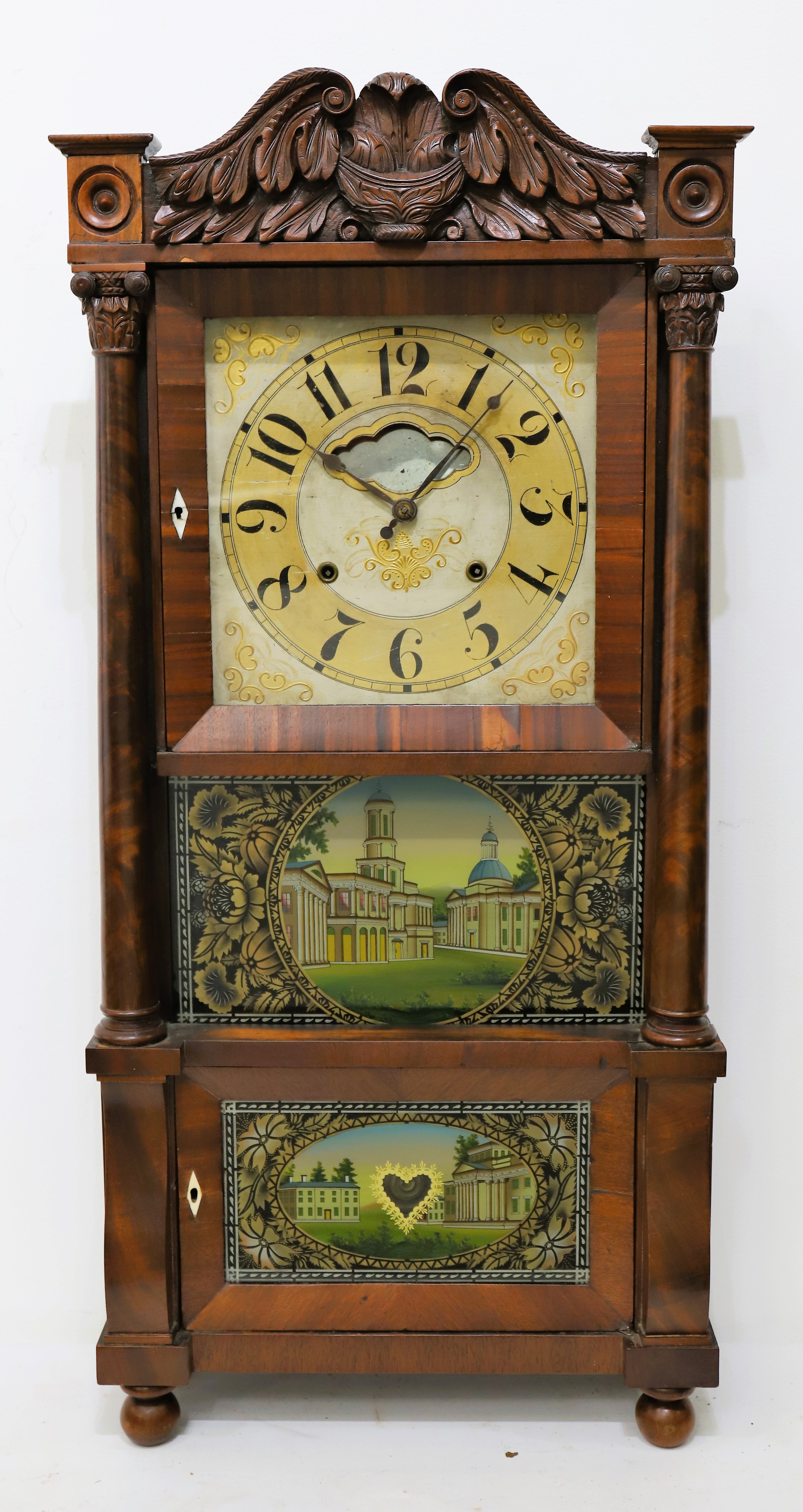 Ives “Patent Brass Eight Day Clock”, 1830-1836. A second example of this model, with a cleaner finish; the dial glass is original,