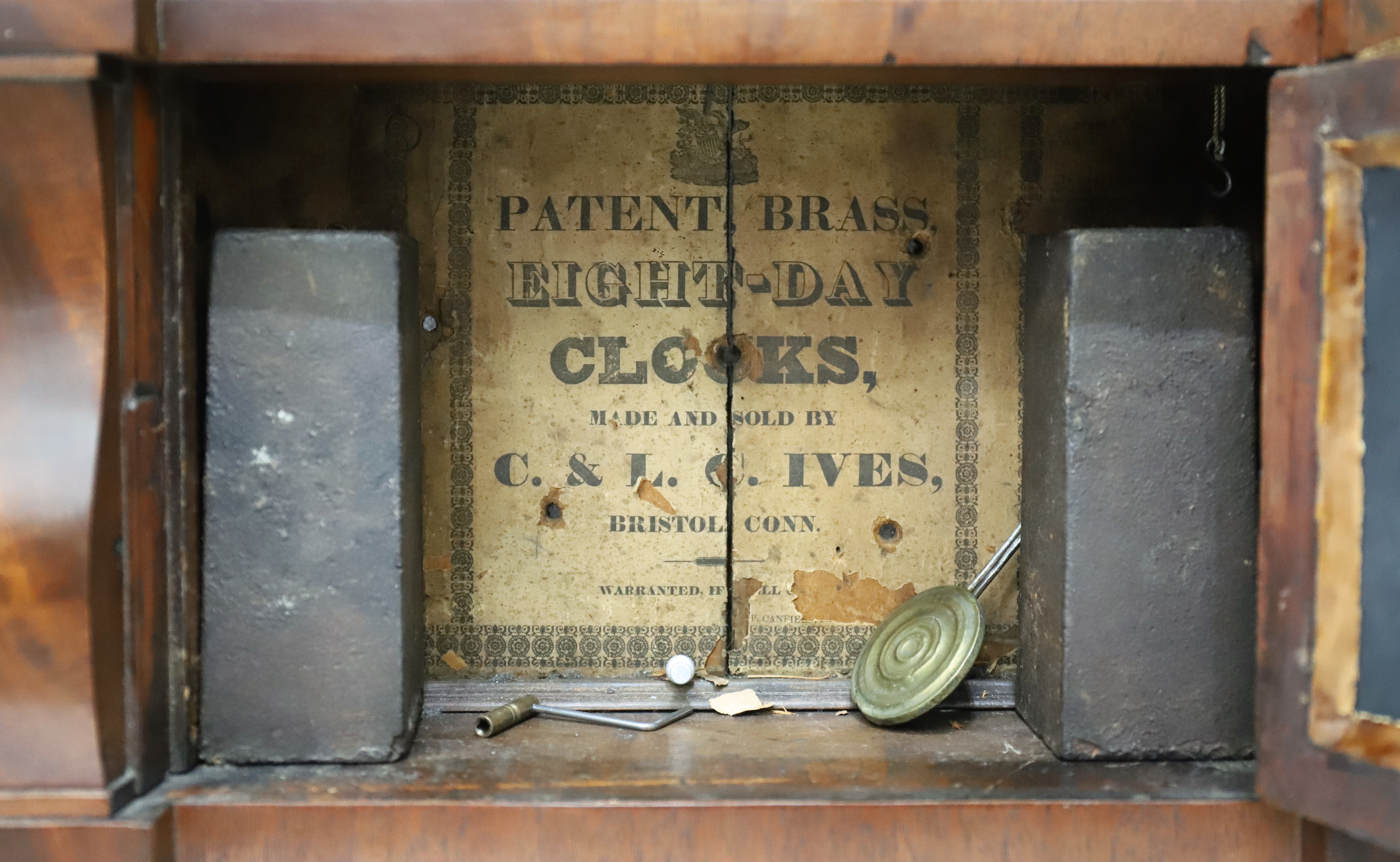 period pendulum bob, with a good label inside. $250–$350.
