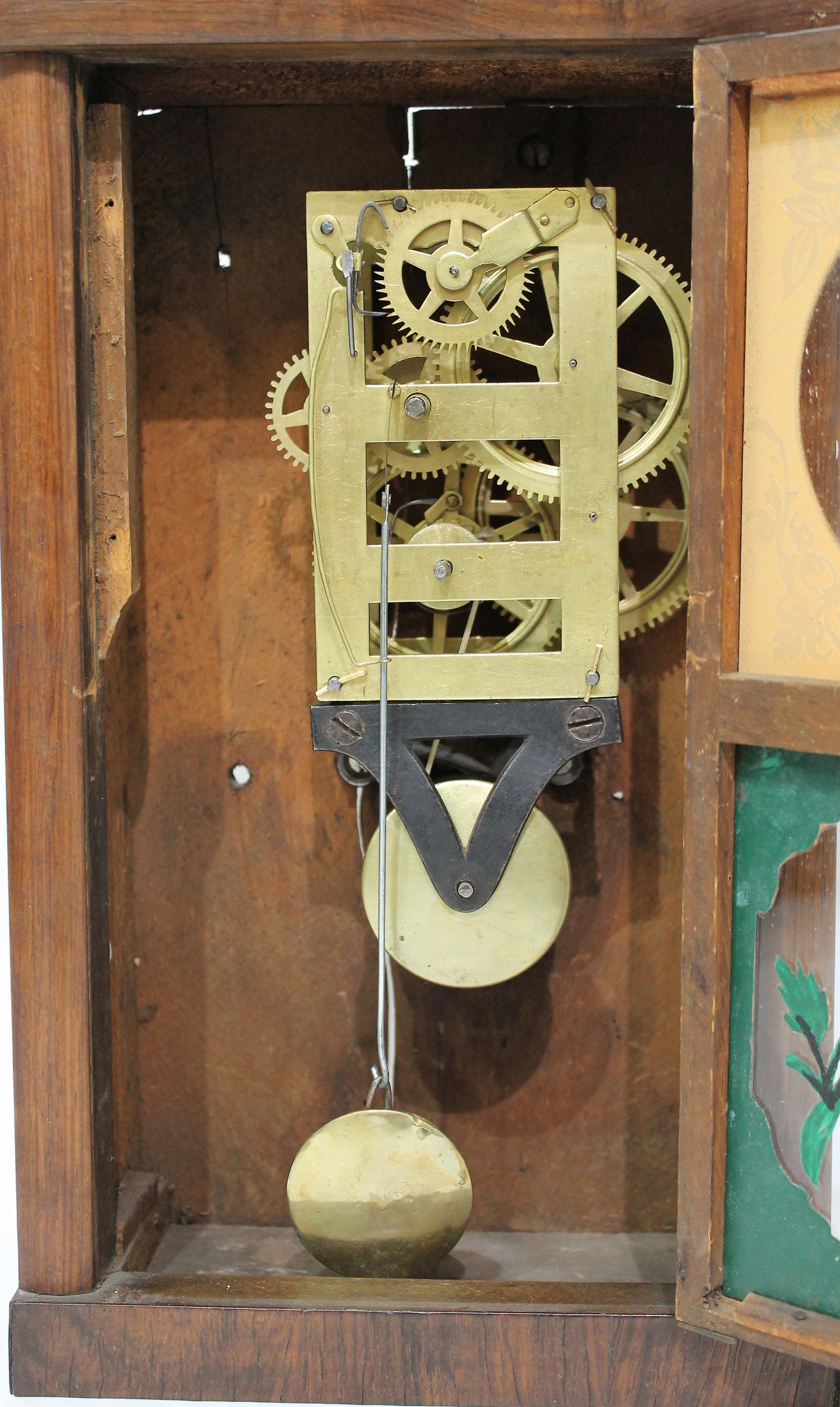 it is running strongly. There is a decorative pendulum rod cover present, but it cannot be fitted to the current rod. These small box clocks are popular and bring good prices; AAC has sold several similar examples for $400–$900. This clock sold at