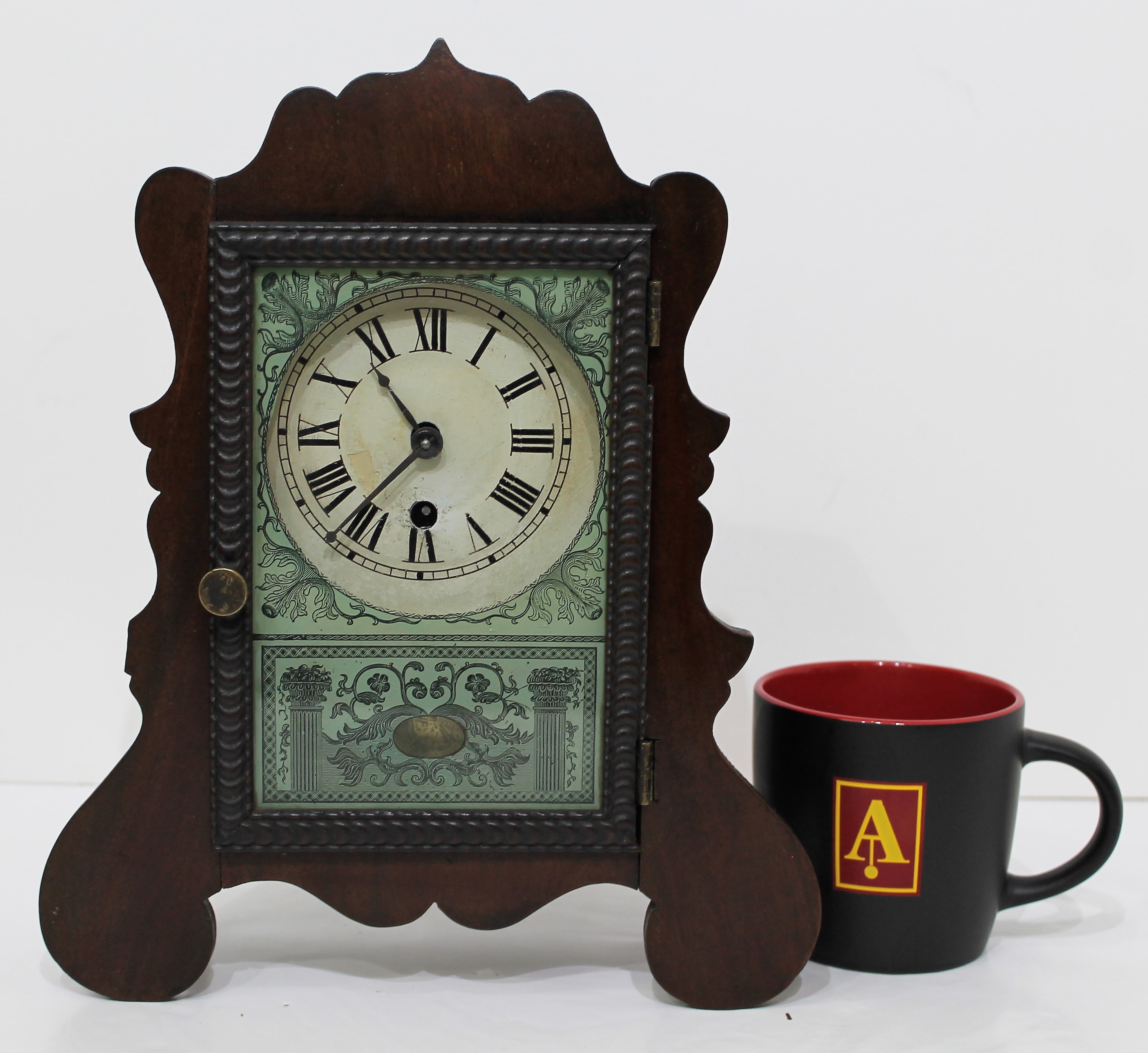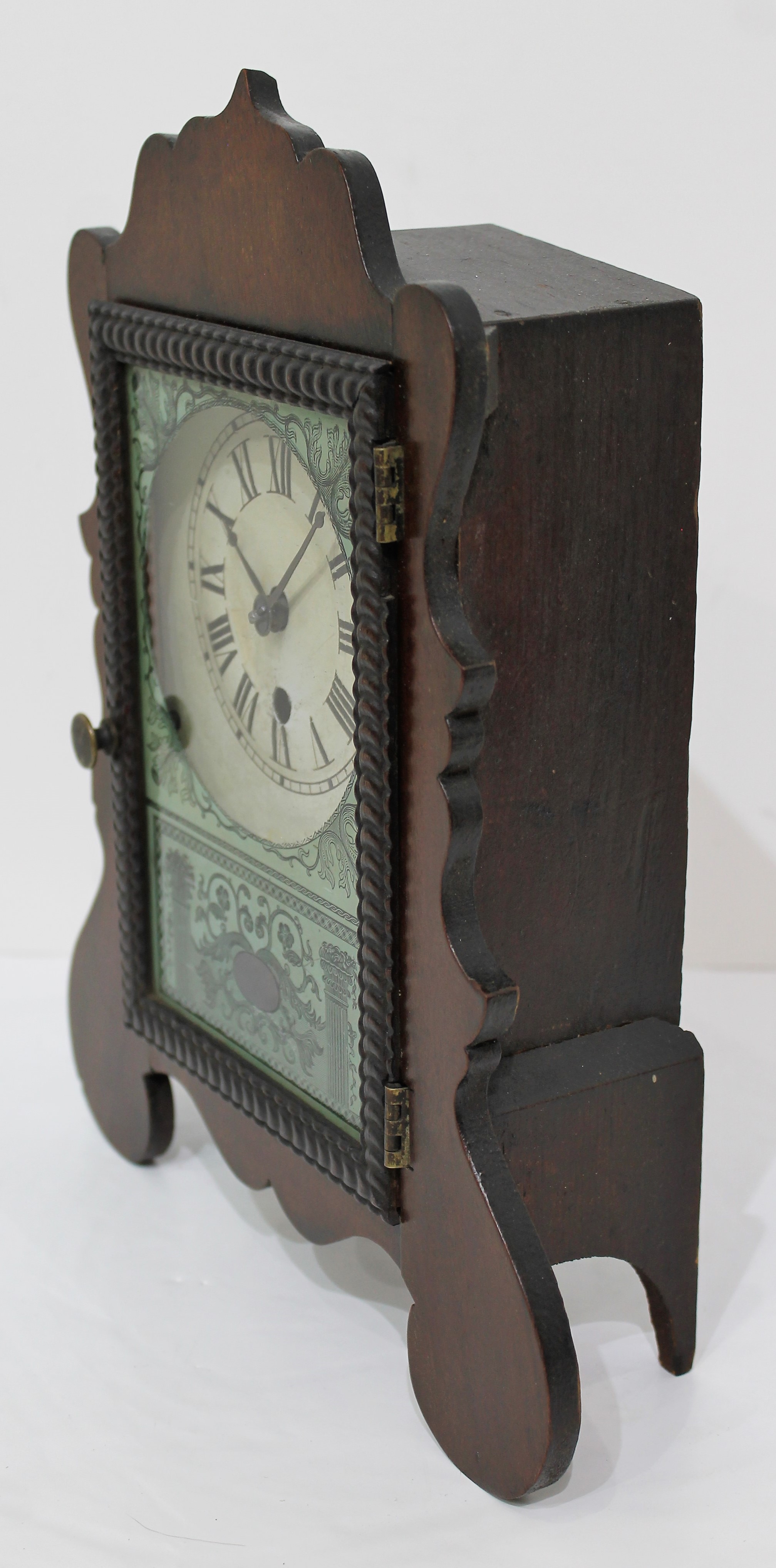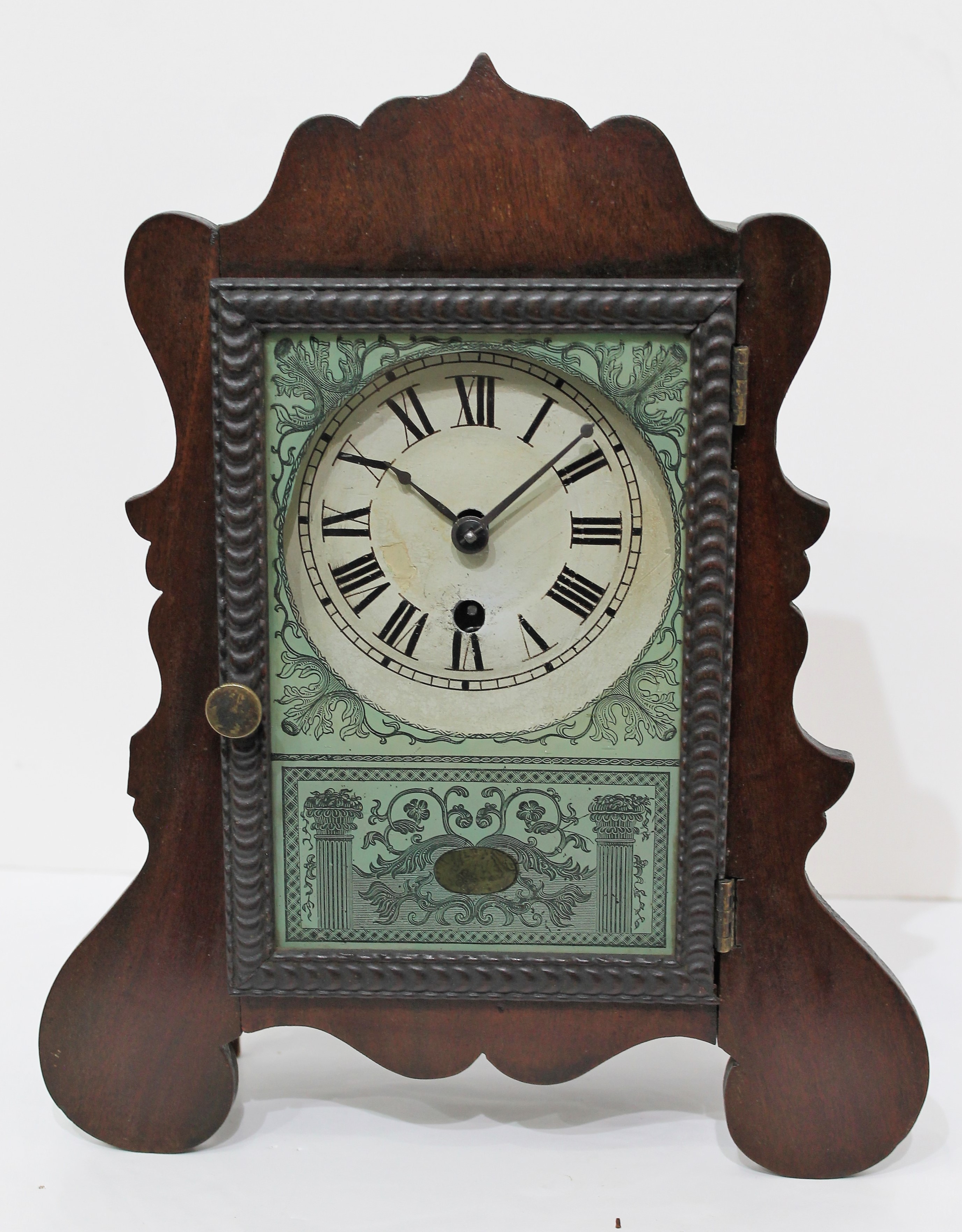 1852–1854. A rare 12-inch-tall scroll-front from a short-lived business that consisted of just Elisha Brewster. The door