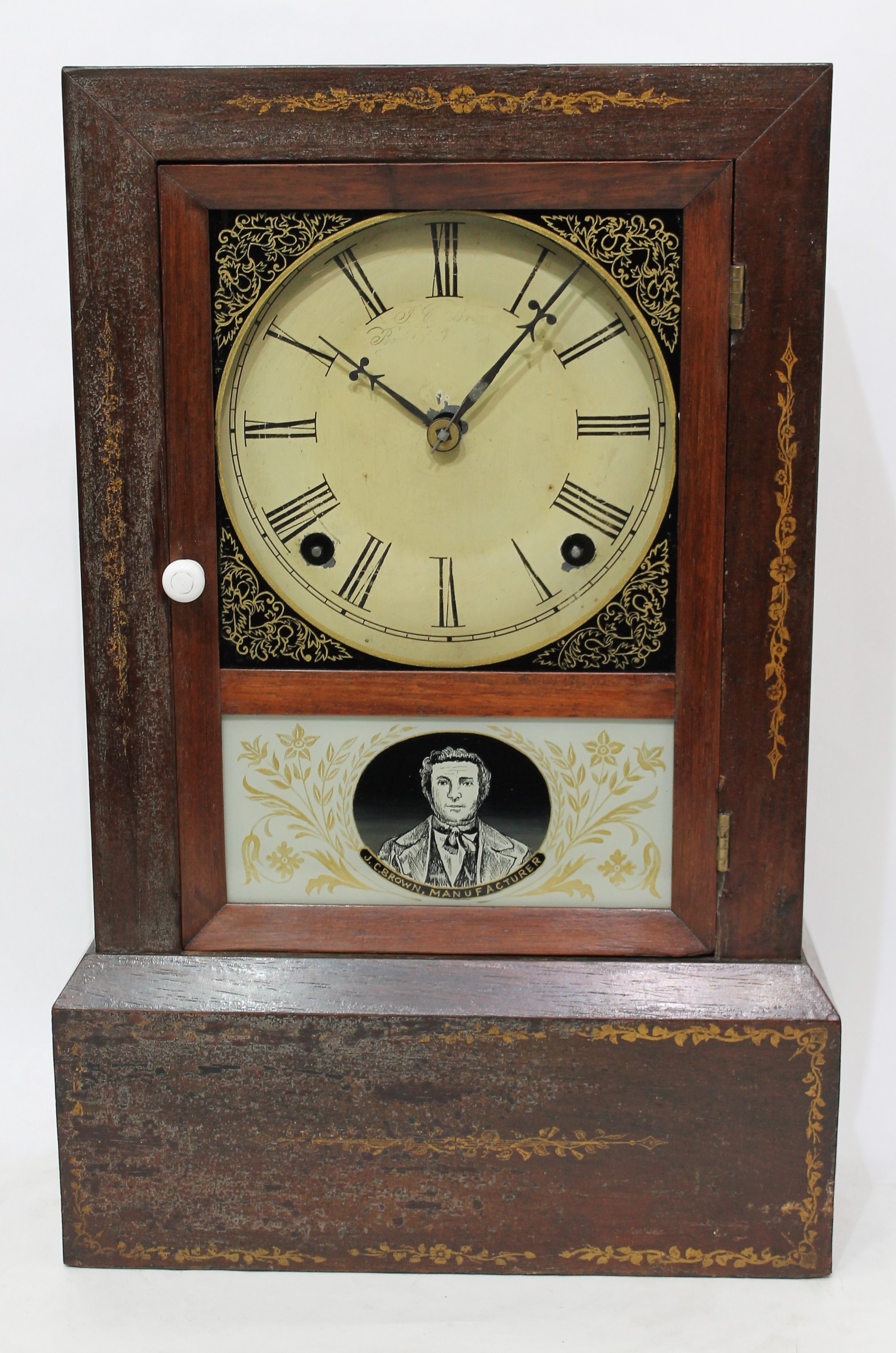 paint, and a faded J.C. Brown signature at the top. The hands period, with a repair to the minute hand. The 8-day time-and-strike