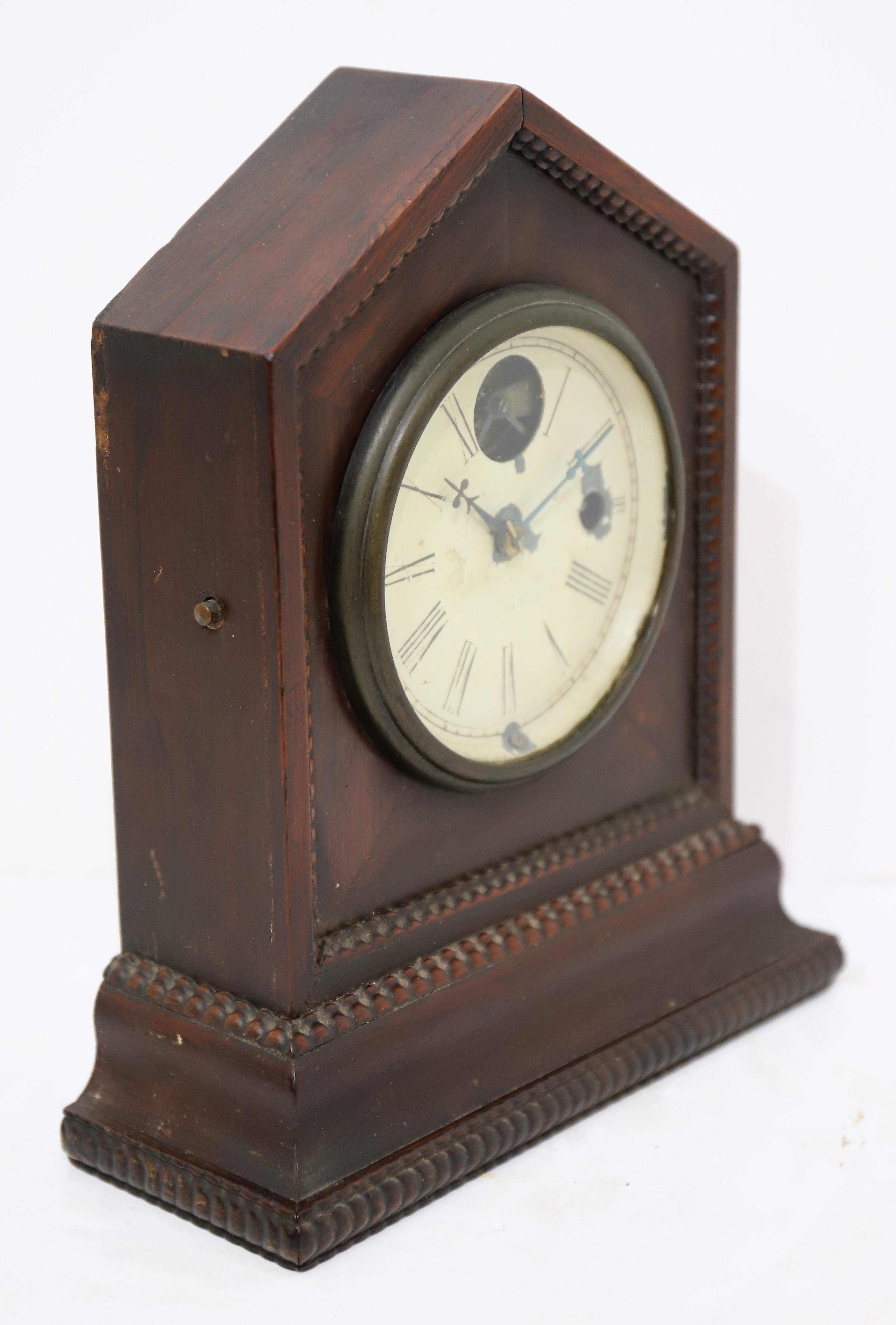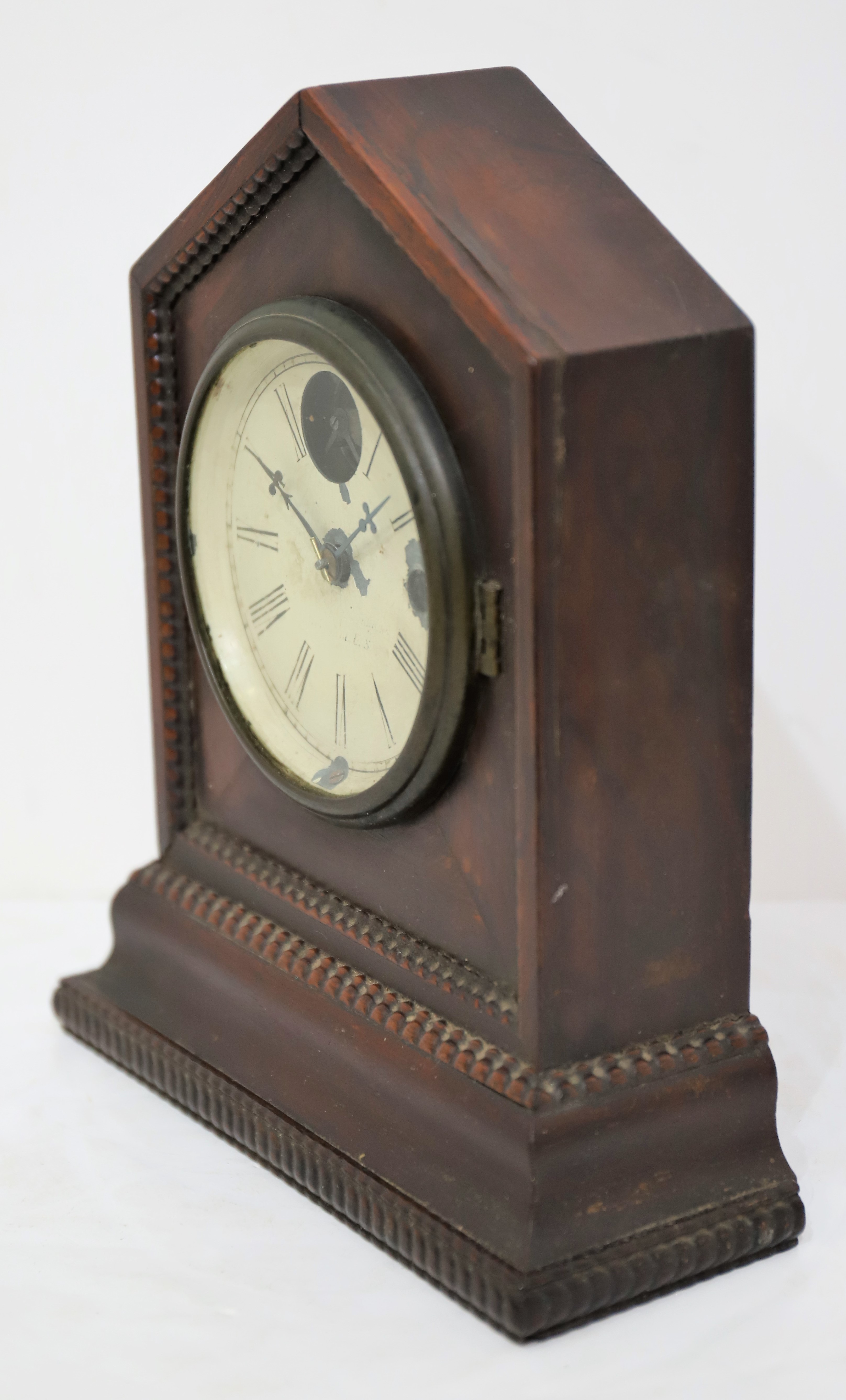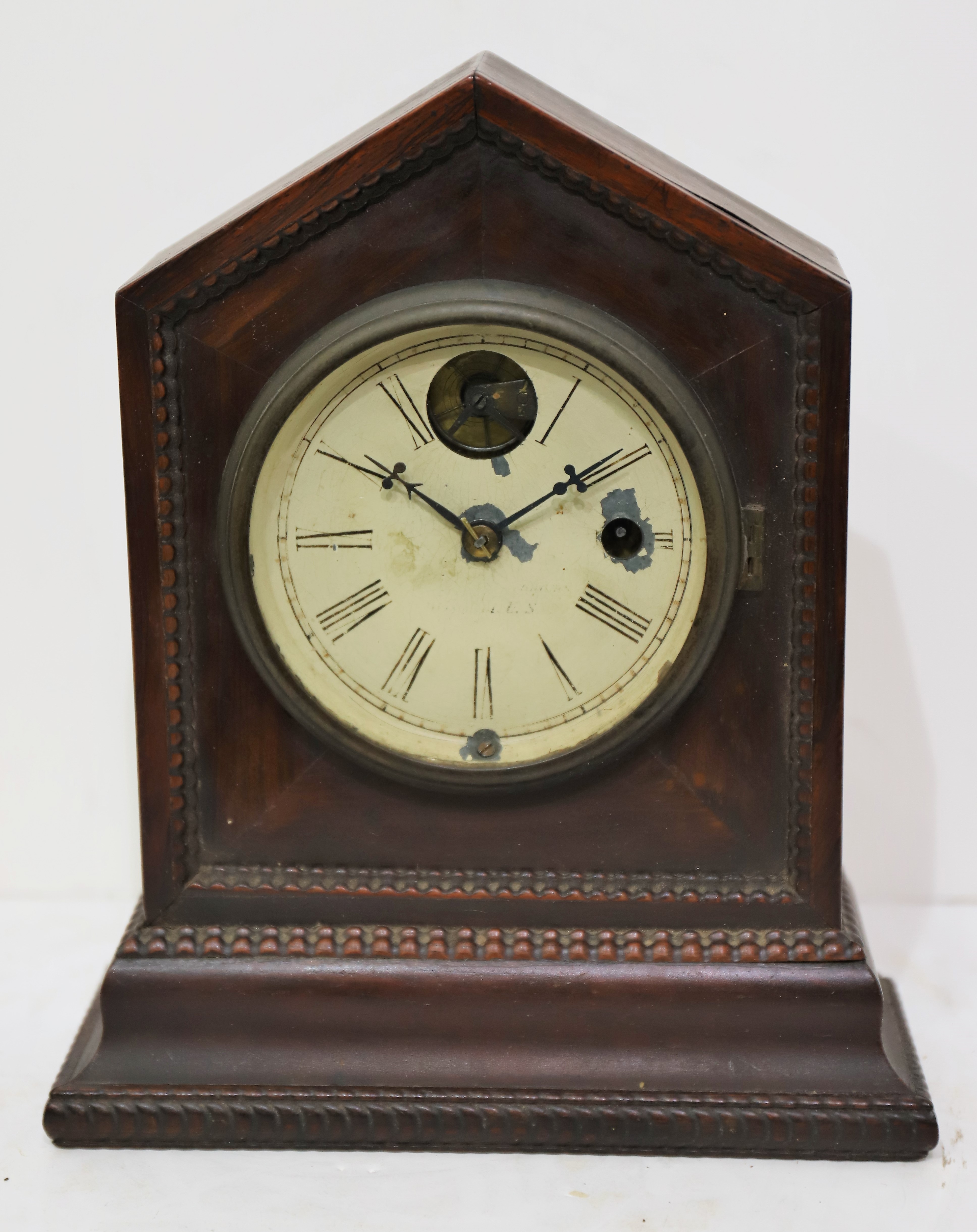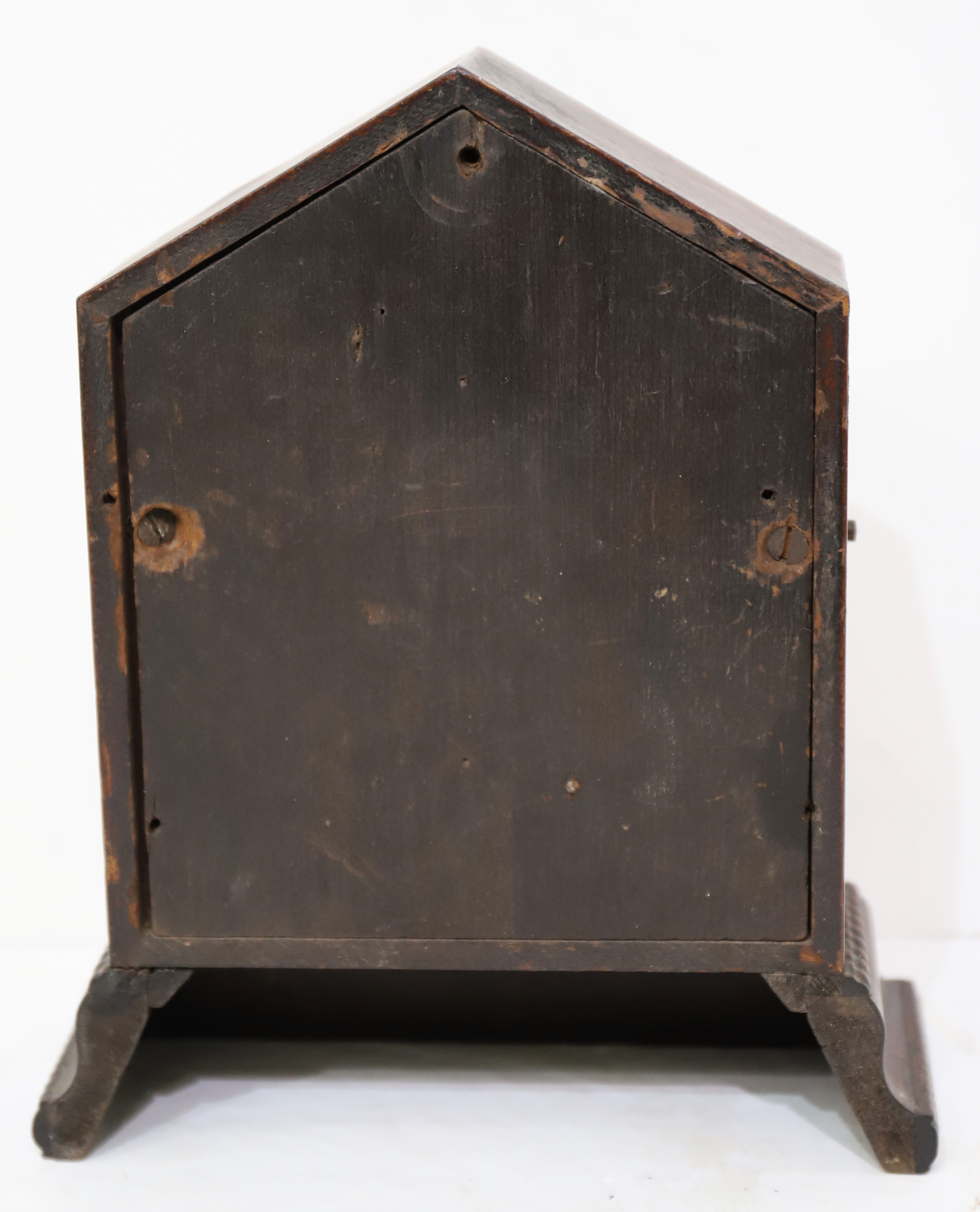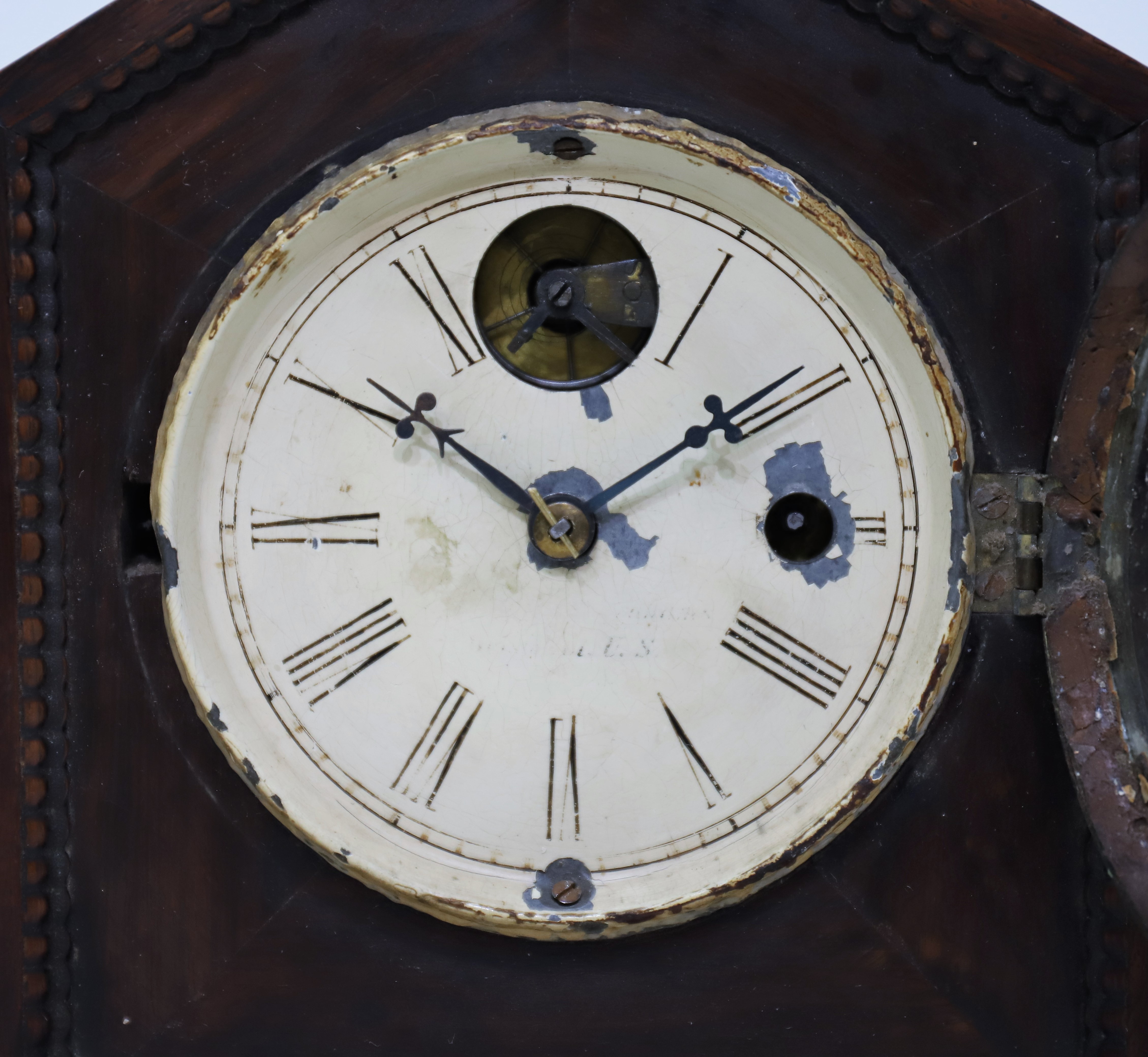 two known clocks by this maker; do you have one? The wooden case is 10-inches tall in mahogany or rosewood with a thick patina;