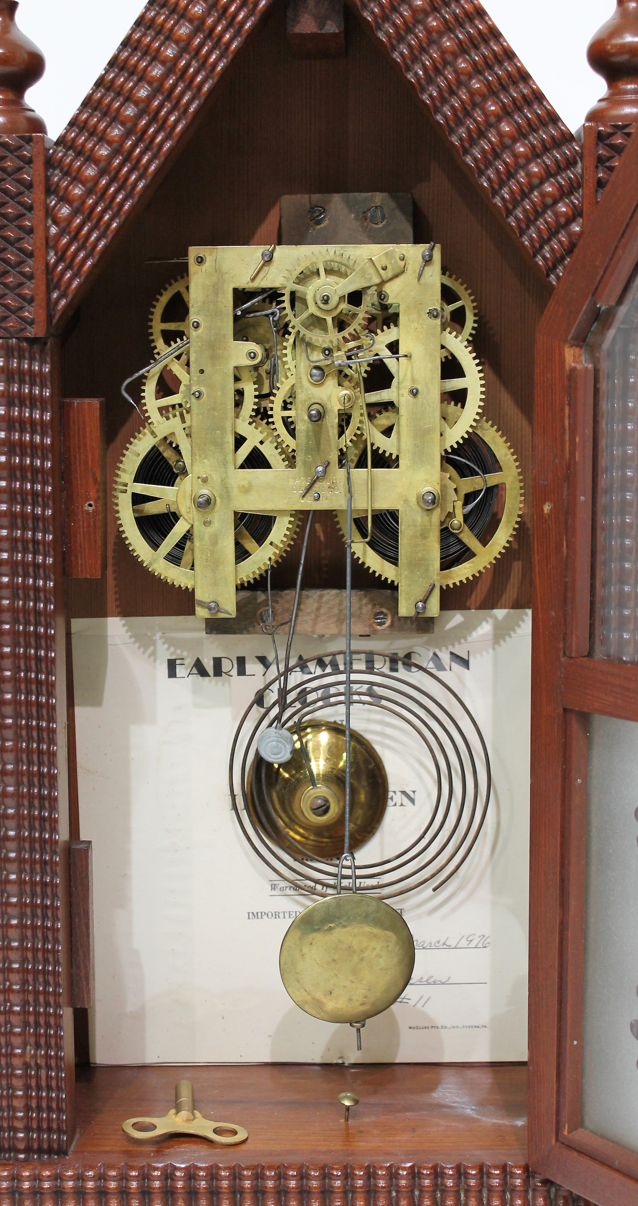aluminum; the hands are modern. The 8-day, time-and-strike movement was made by Waterbury and is running and striking on the