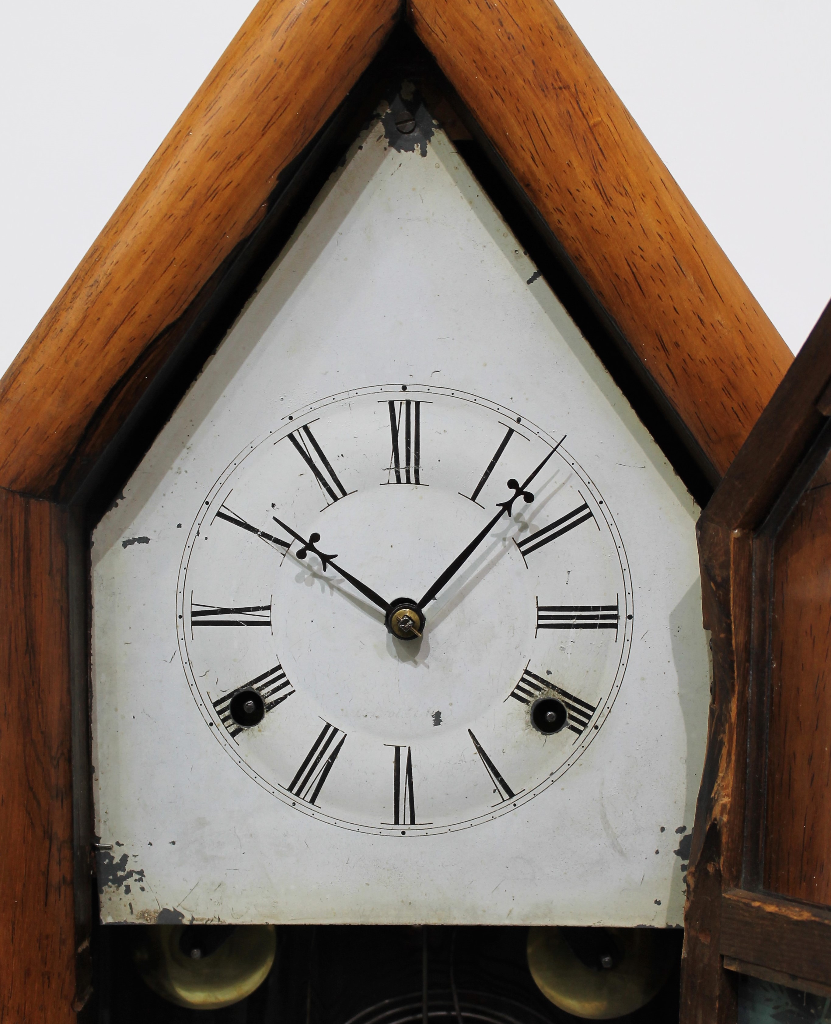plastic on the backwall. This steeple is notable for the lack of finials; a rare clock. How rare? It’s the only