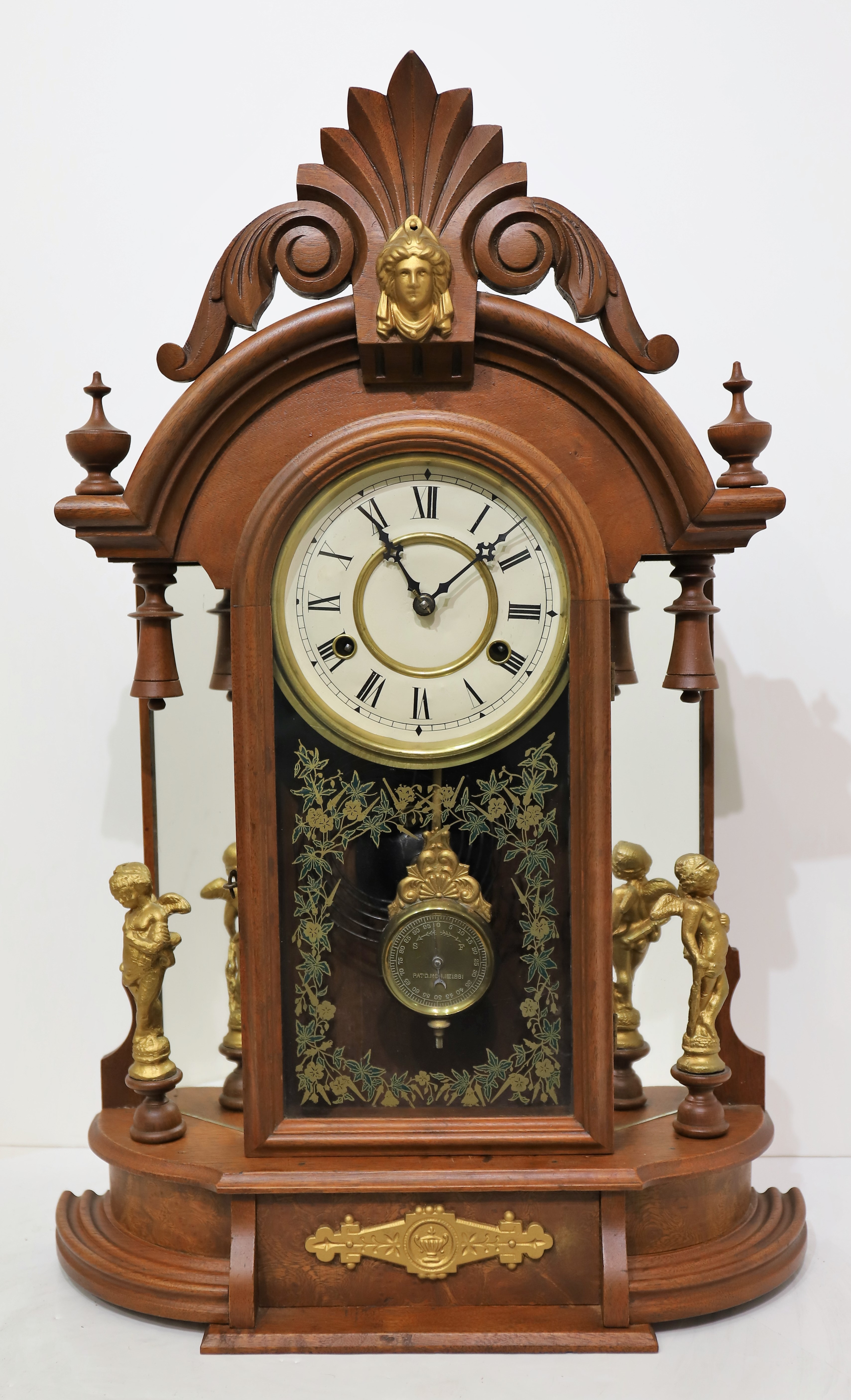 New Haven Clock Co. “Occidental” ca. 1900. Every major clock manufacturer made a mirrorside clock in the late 1800’s; their popularity must have been enormous. This is