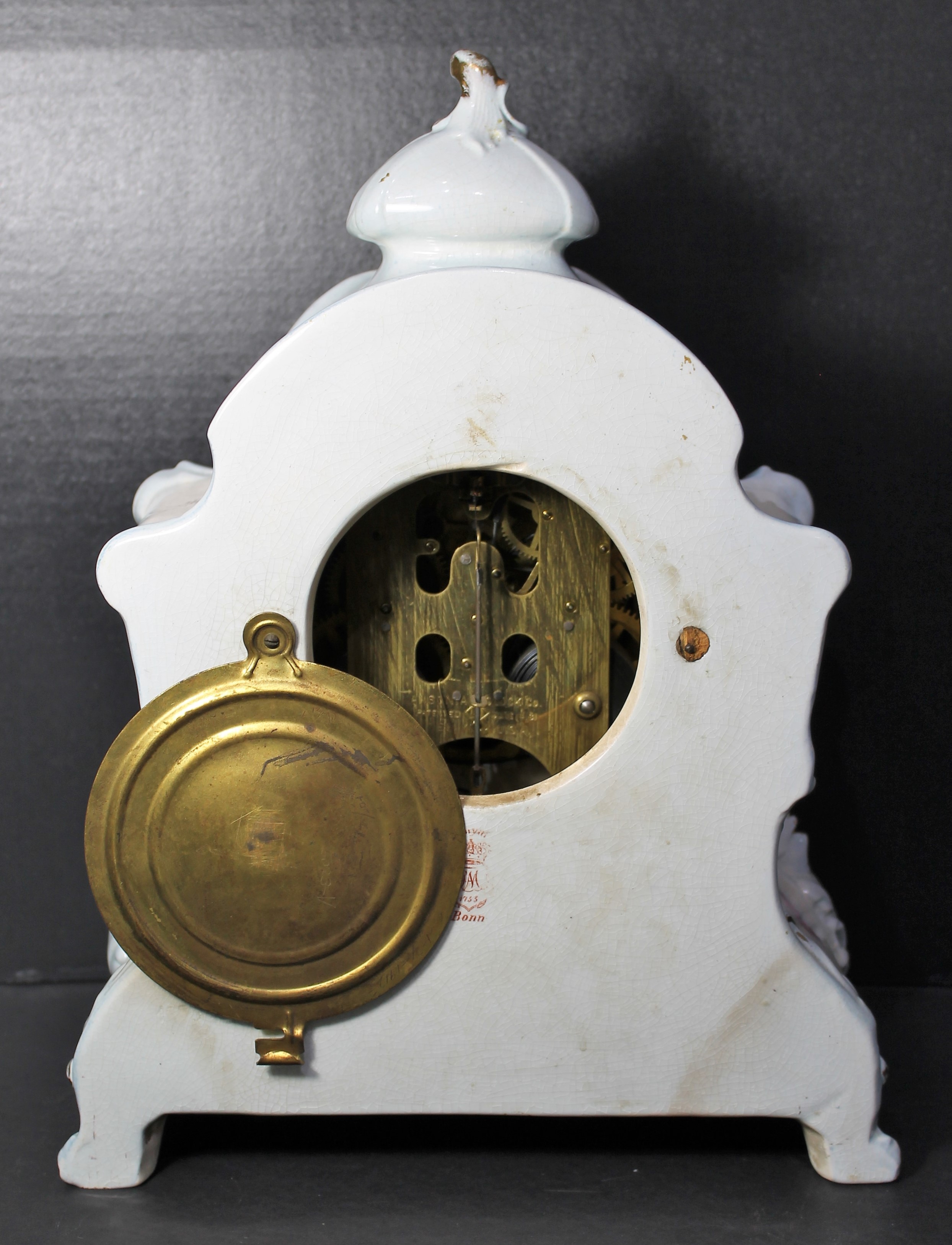 discoloration at the base, but no chips, cracks, or repairs. The signed two-part porcelain dial is flawless and sits behind