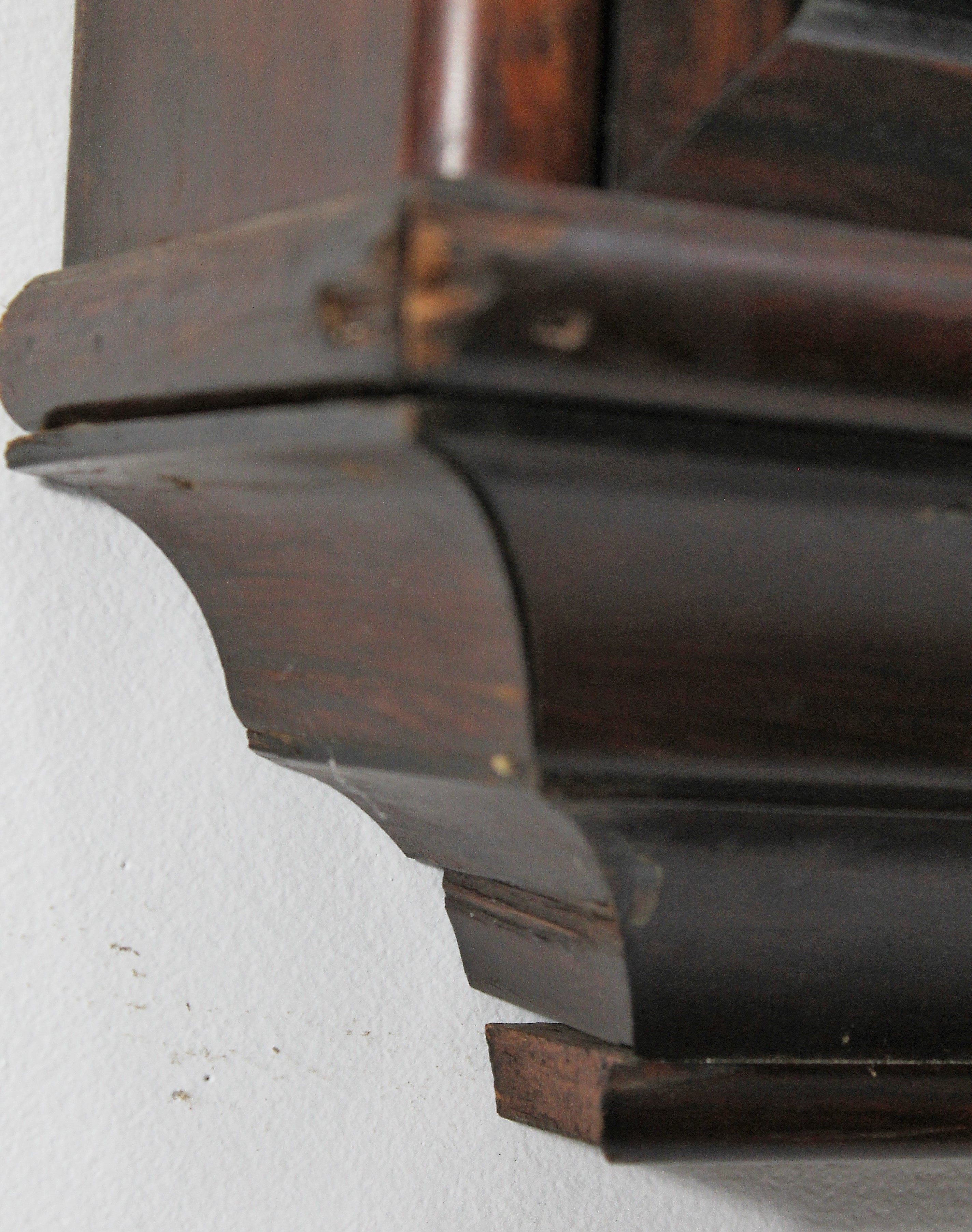 chapter ring. This clock was made with a 16 inch and 18 inch dial. The three glasses are old, the bottom glass likely