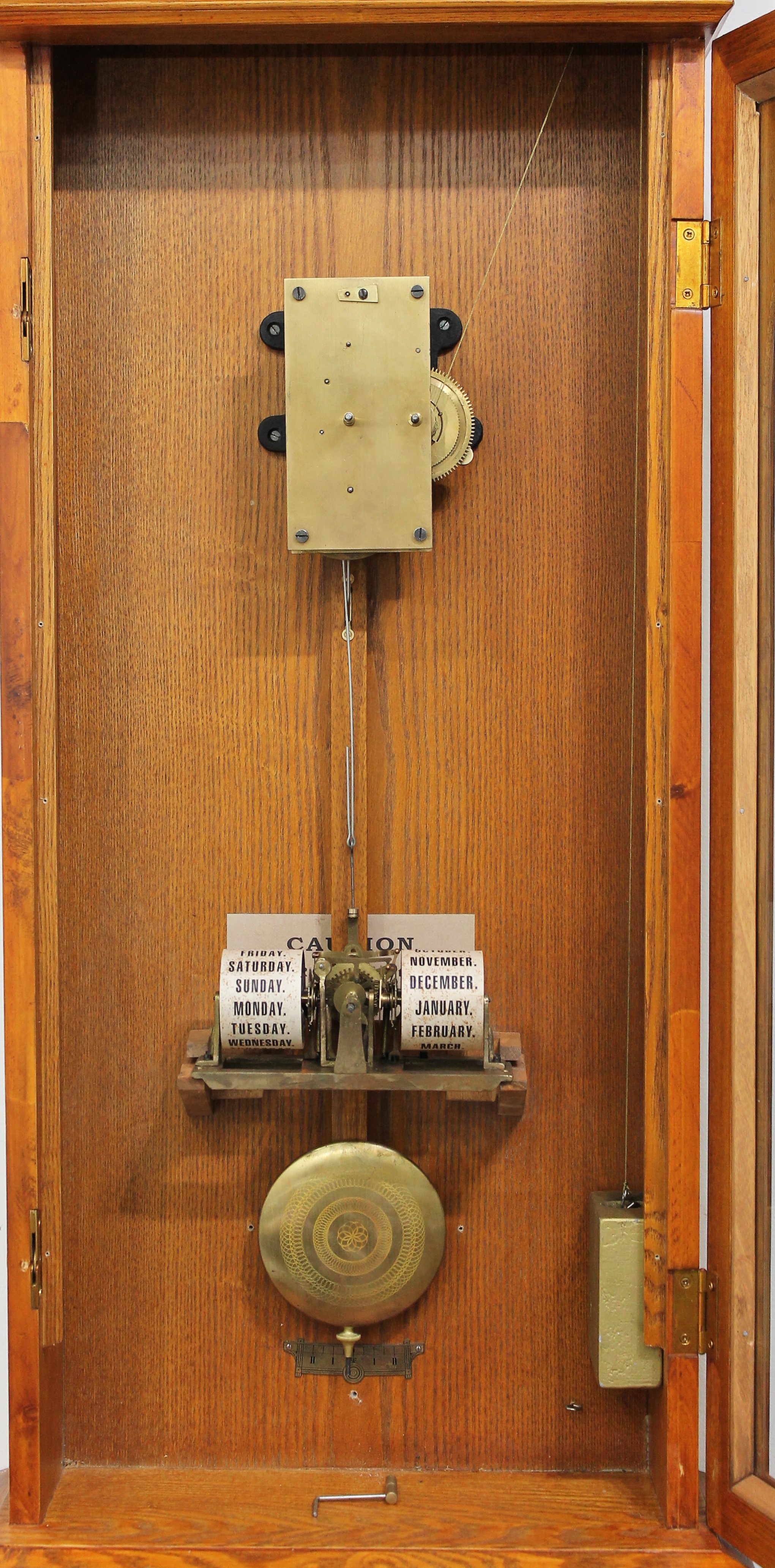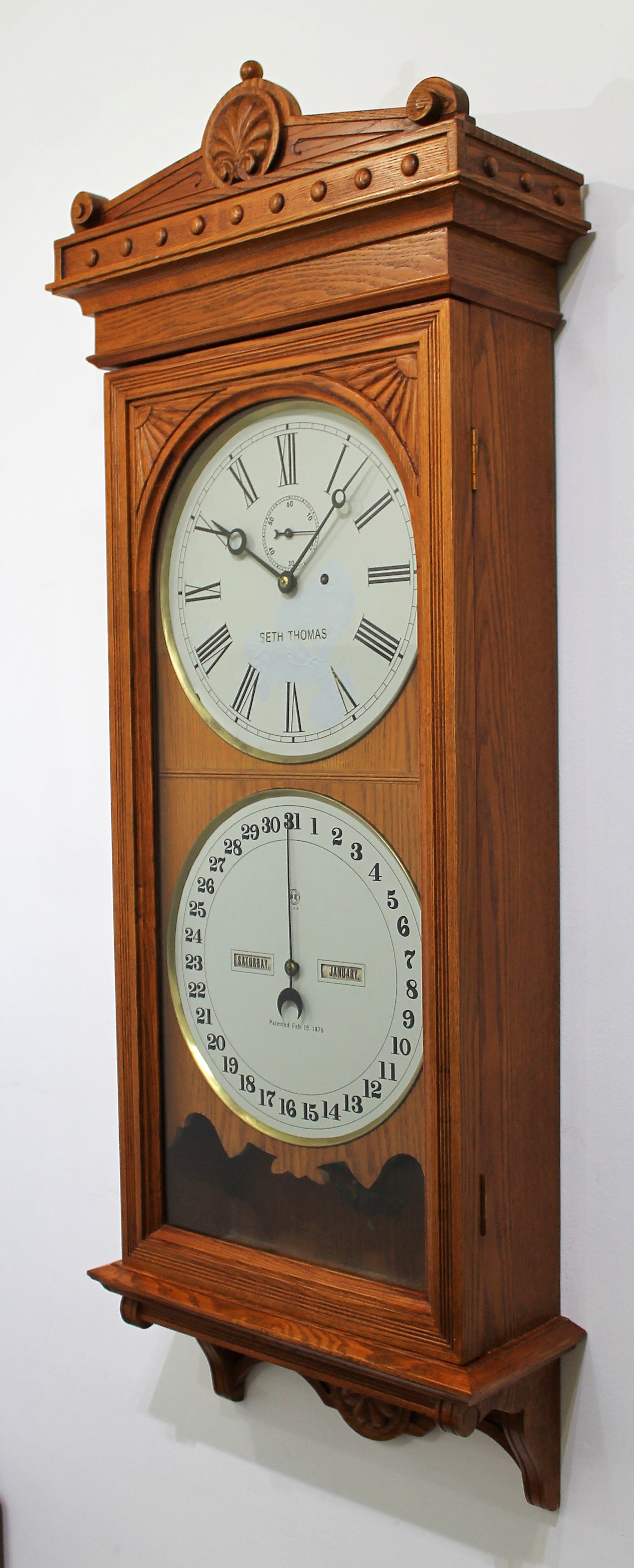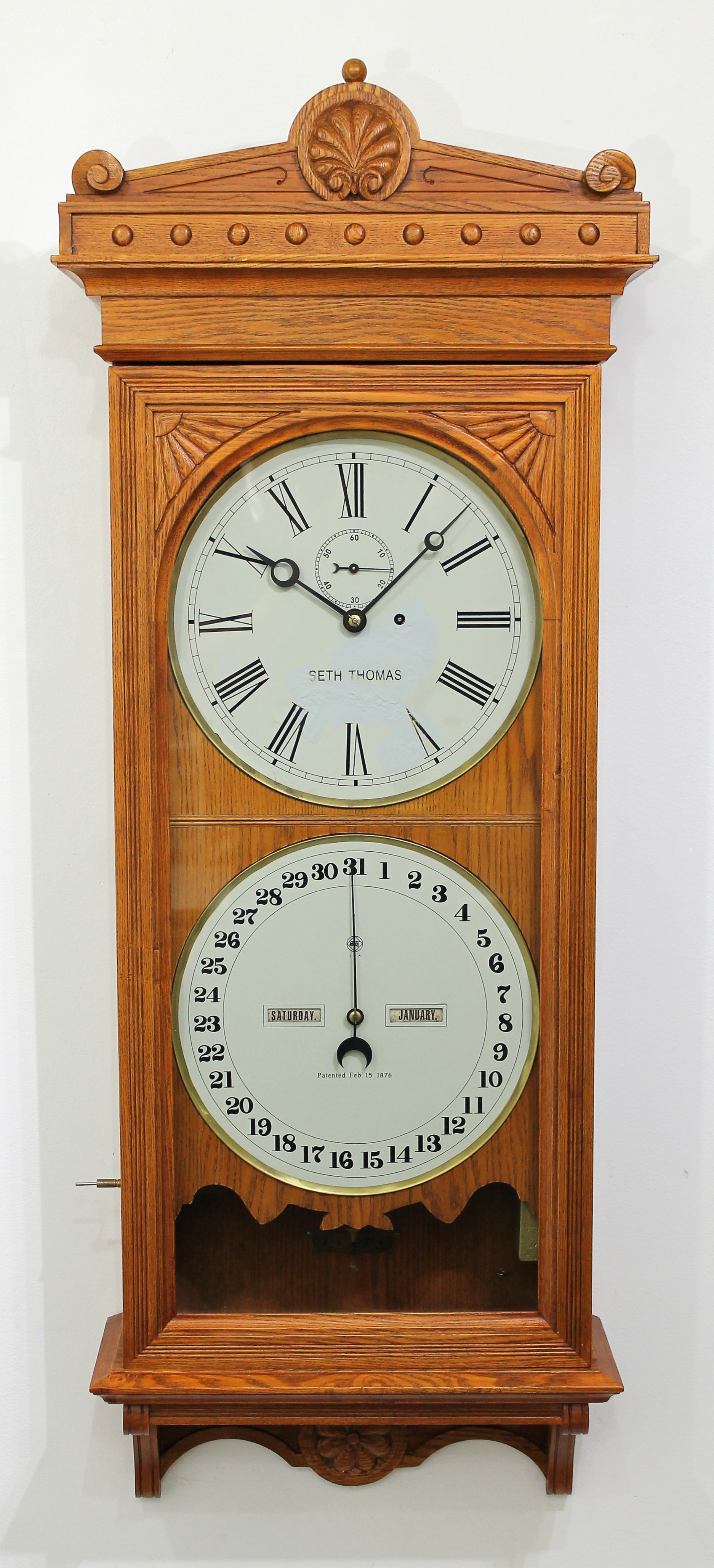 Seth Thomas “Office Calendar No. 13”. A 48-inch oak case,