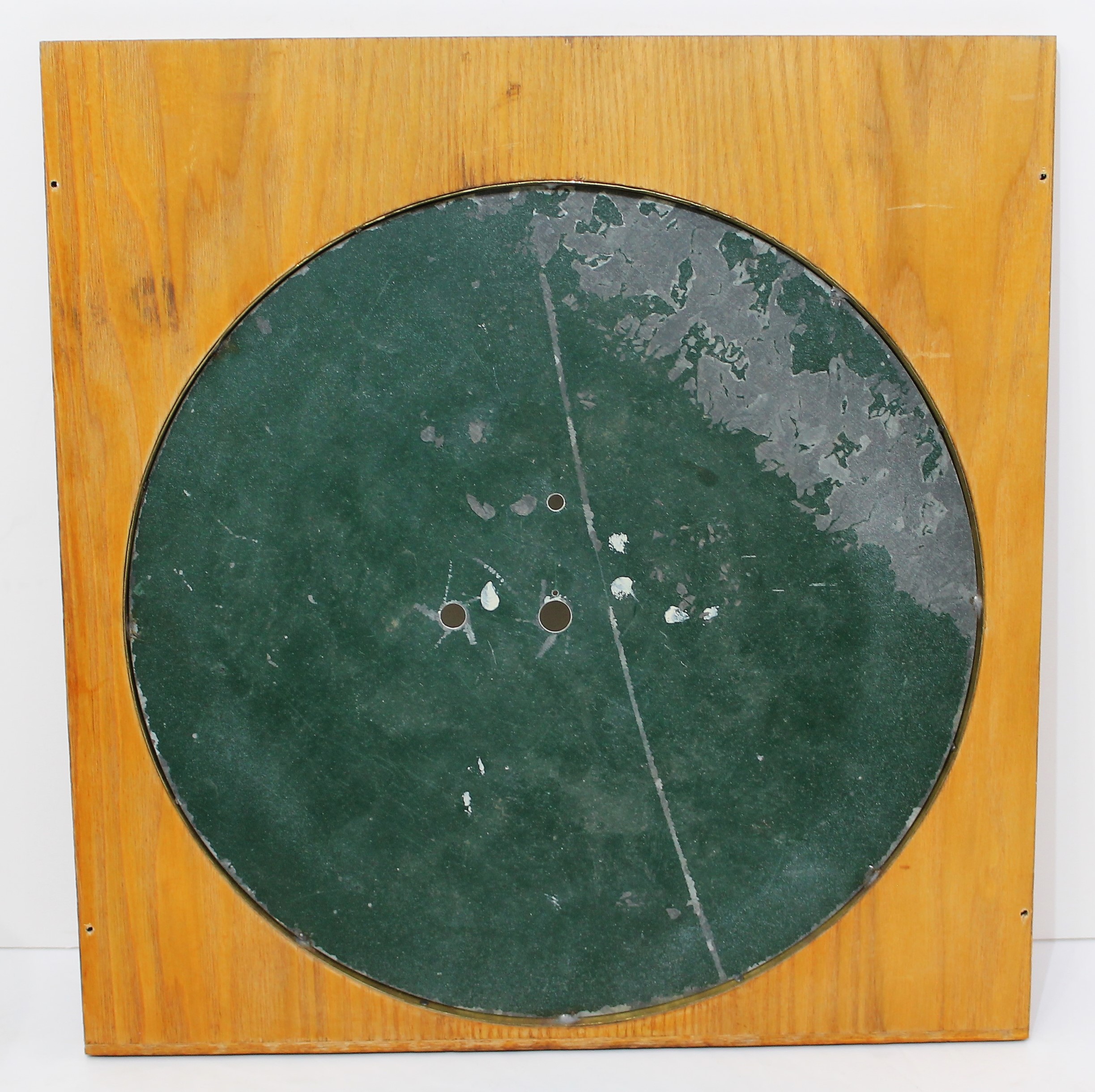 dials appear to be old but have been repainted, and the time dial has had very poor touch-up work and will need to be repainted. The hands are modern. The 8-day, time-only, weight-driven movement is unsigned; it is running without problem and the calendars