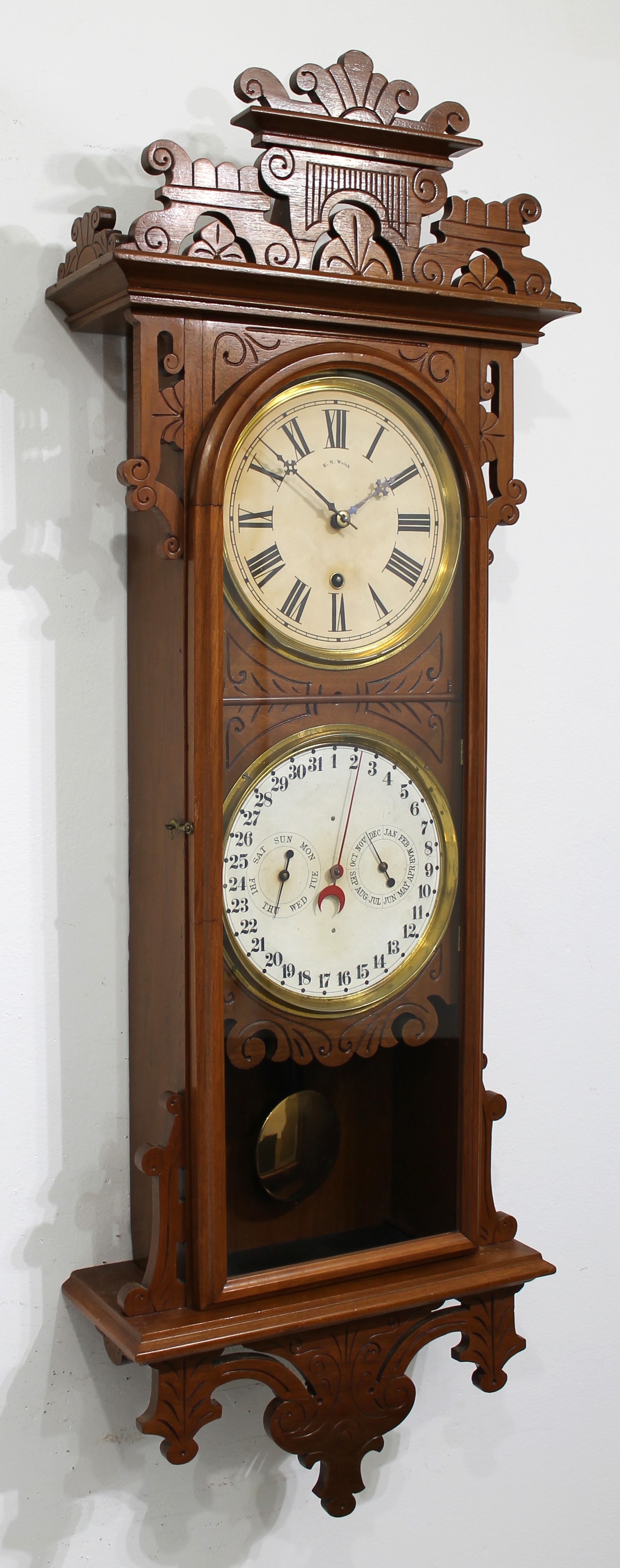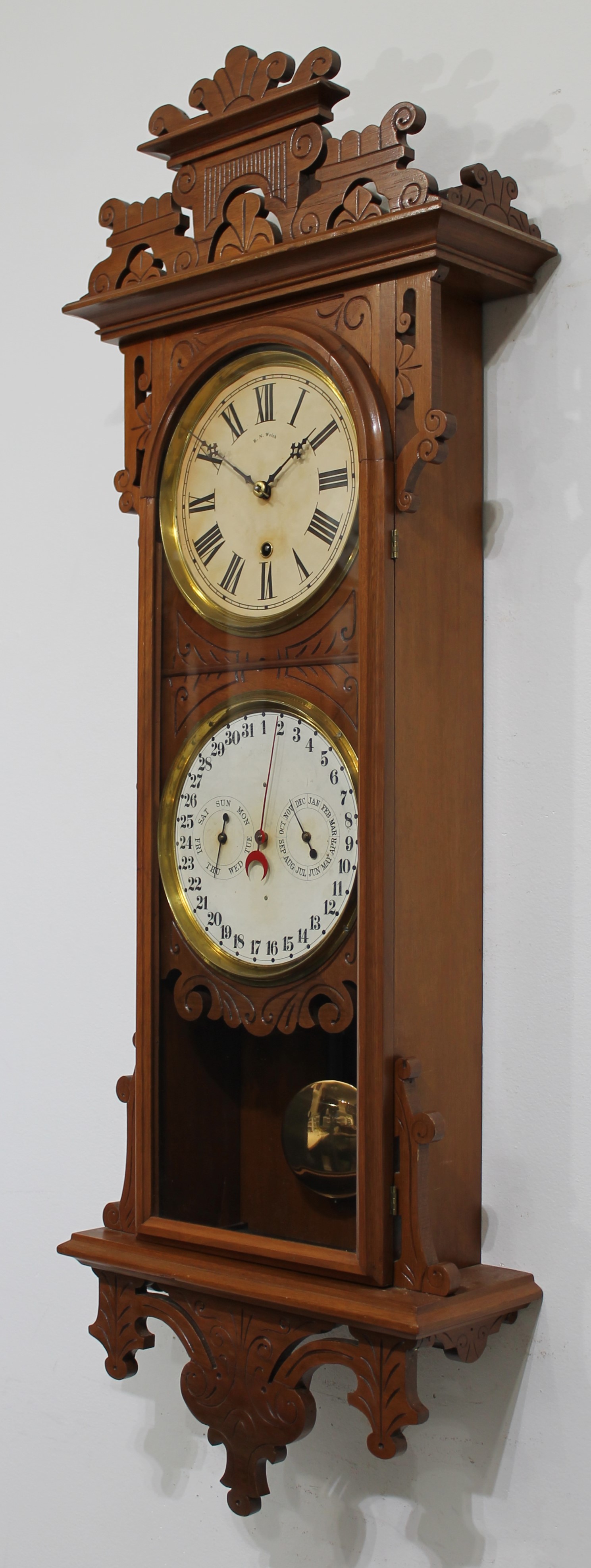 calendar dial also likely an old replacement. All hands are proper. The signed 8-day movement is running, but reluctantly,