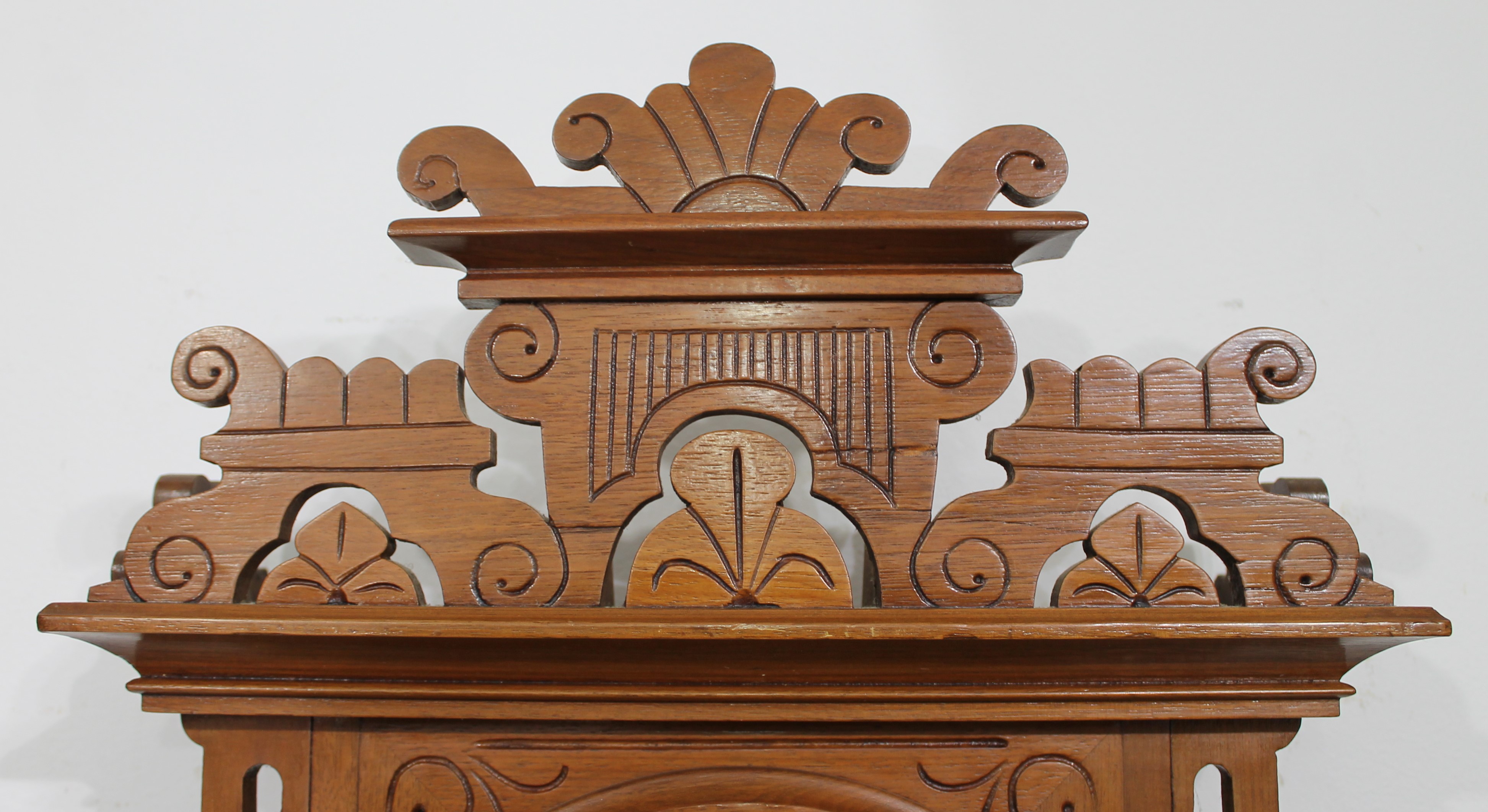 refinished example of this uncommon model. The walnut case is 41 inches, tip to tip; there have been repairs to the base, but