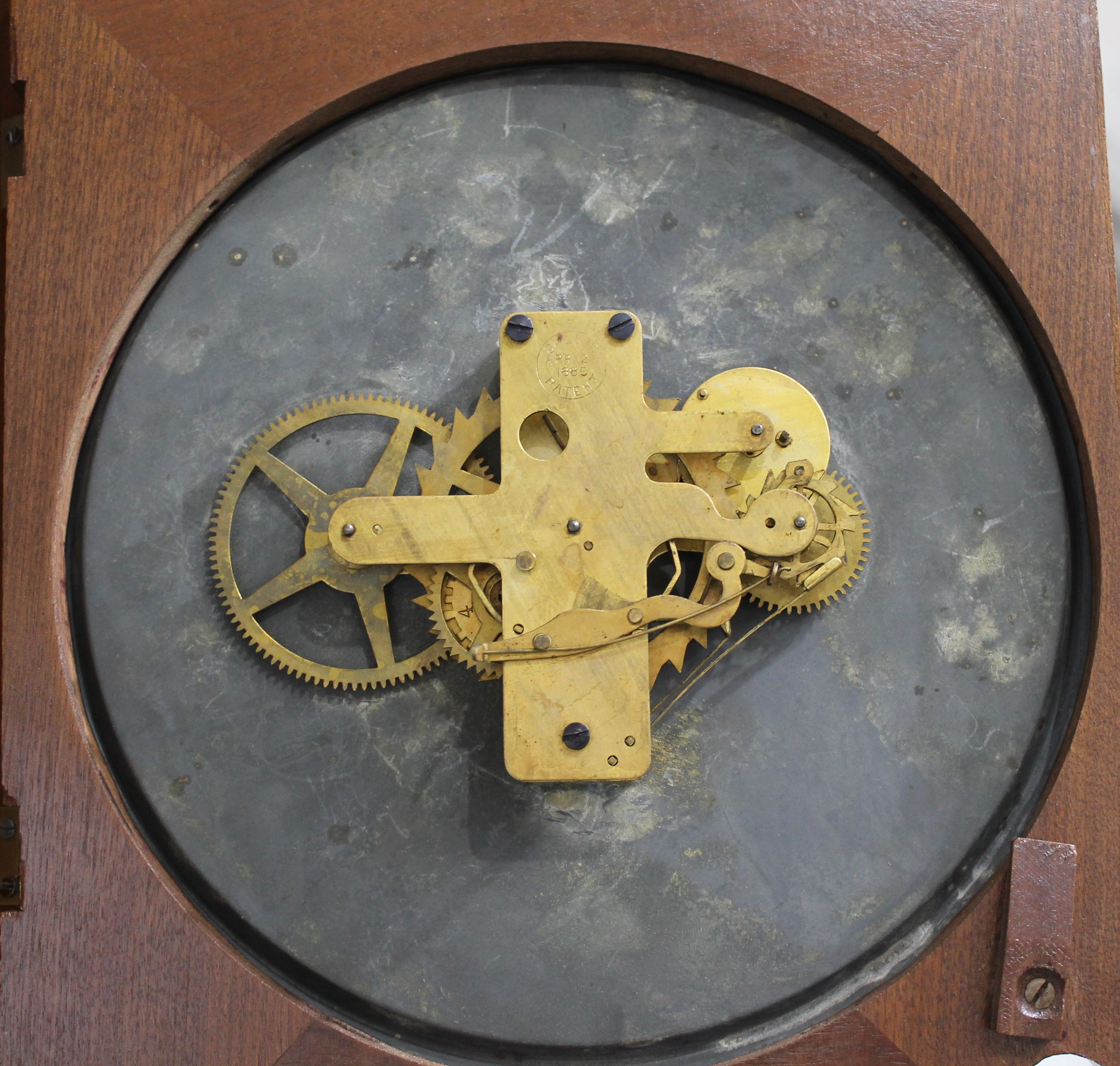 and the calendar hands are advancing, including the month indicator. There is an instruction label inside on setting the calendar,