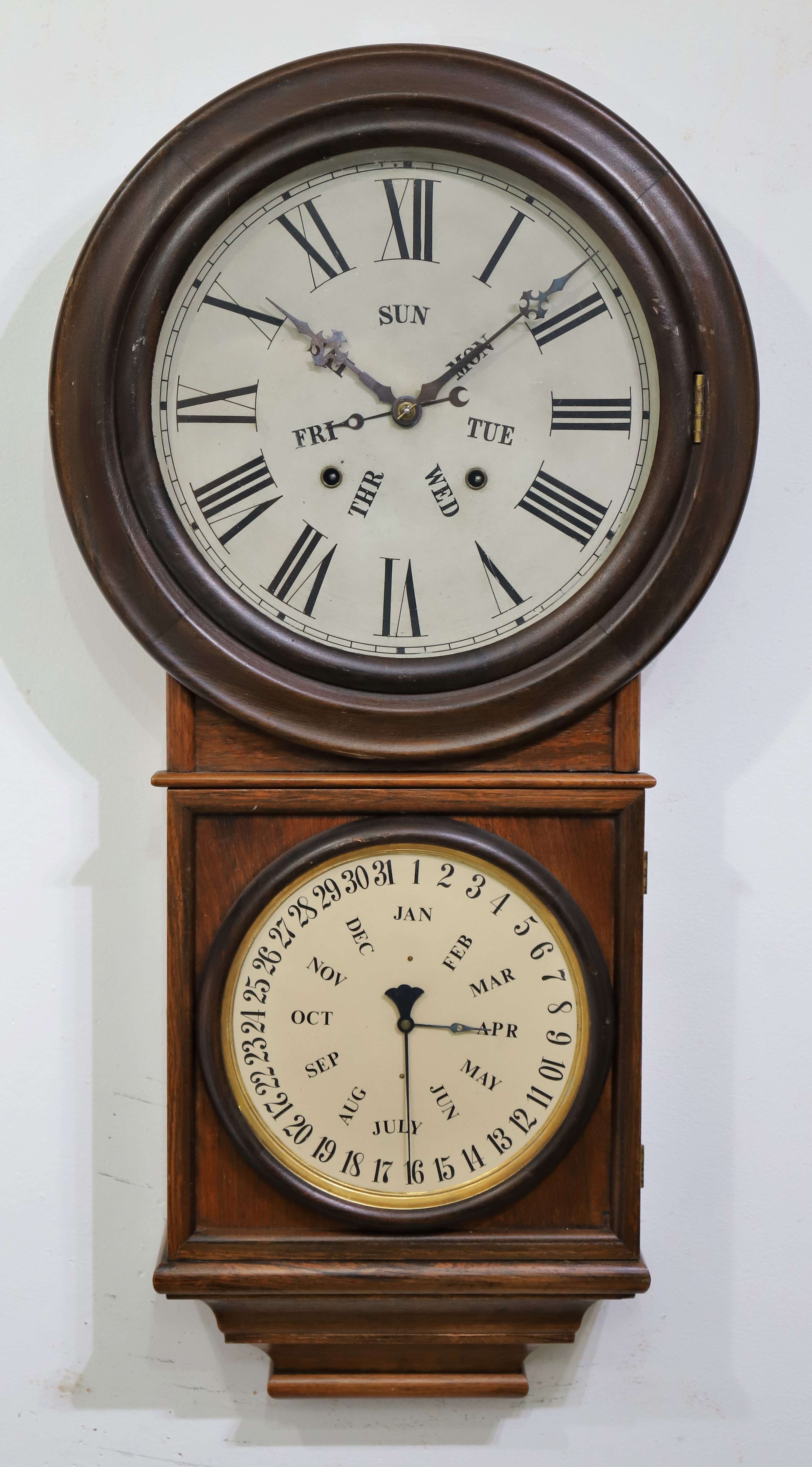inside and a good label on the back of the calendar cover. There really isn’t anything to complain about with this clock. AAC sold a similar example last summer for $500. $450–$600.