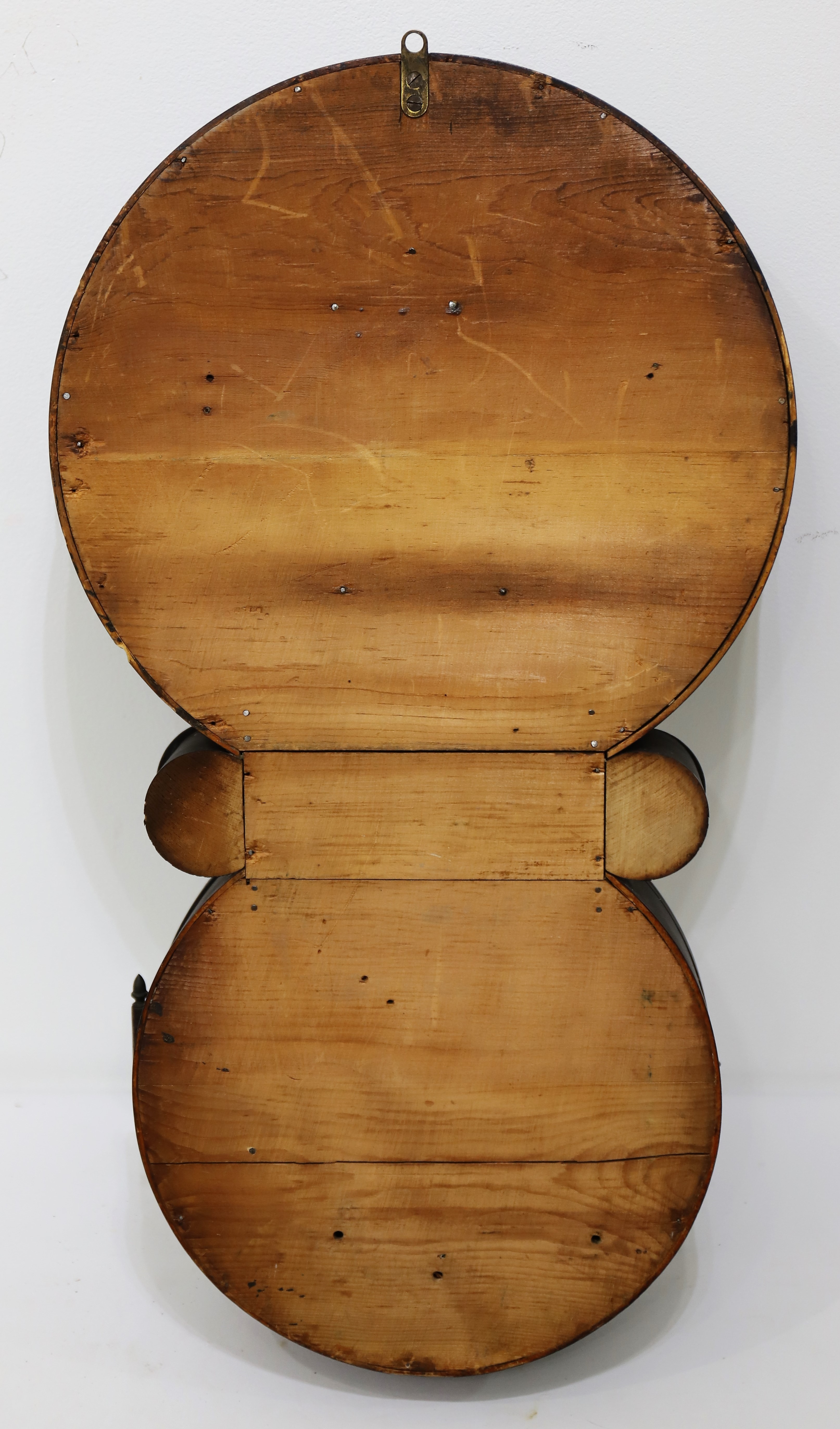 patina. The upper glass is original, the lower glass also likely so. The paper time dial has yellowed and bears the Ingraham