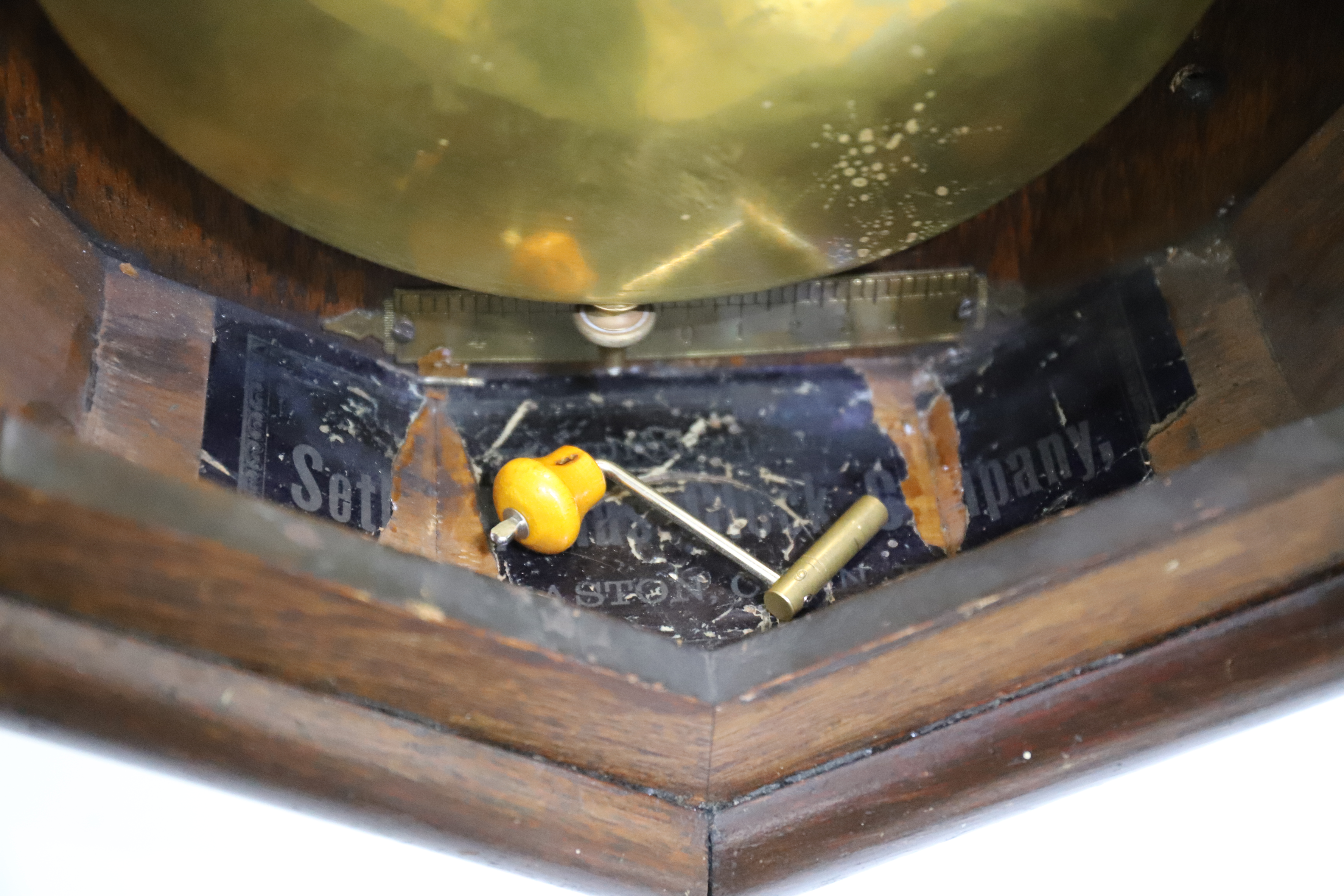 stick and heavy brass bob are original as well. It is running without issue. There is a beat scale at the bottom and a