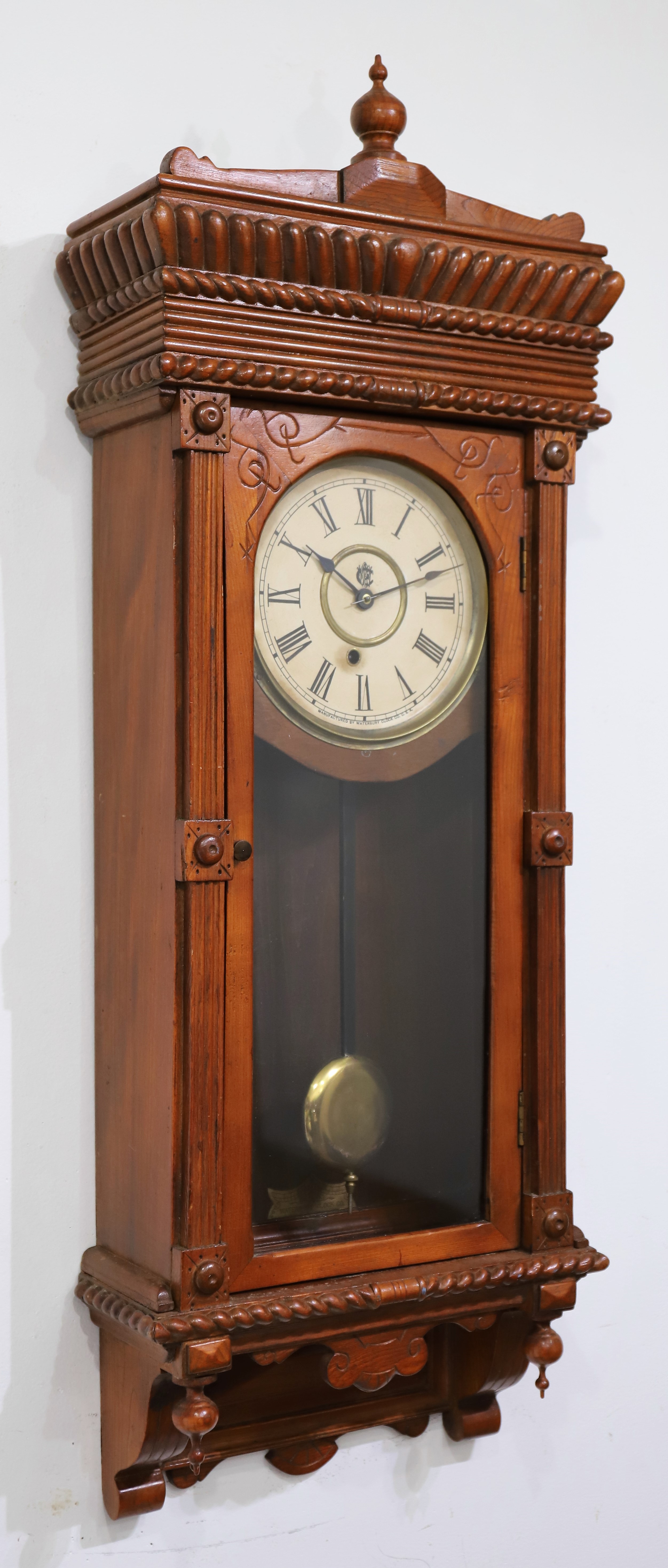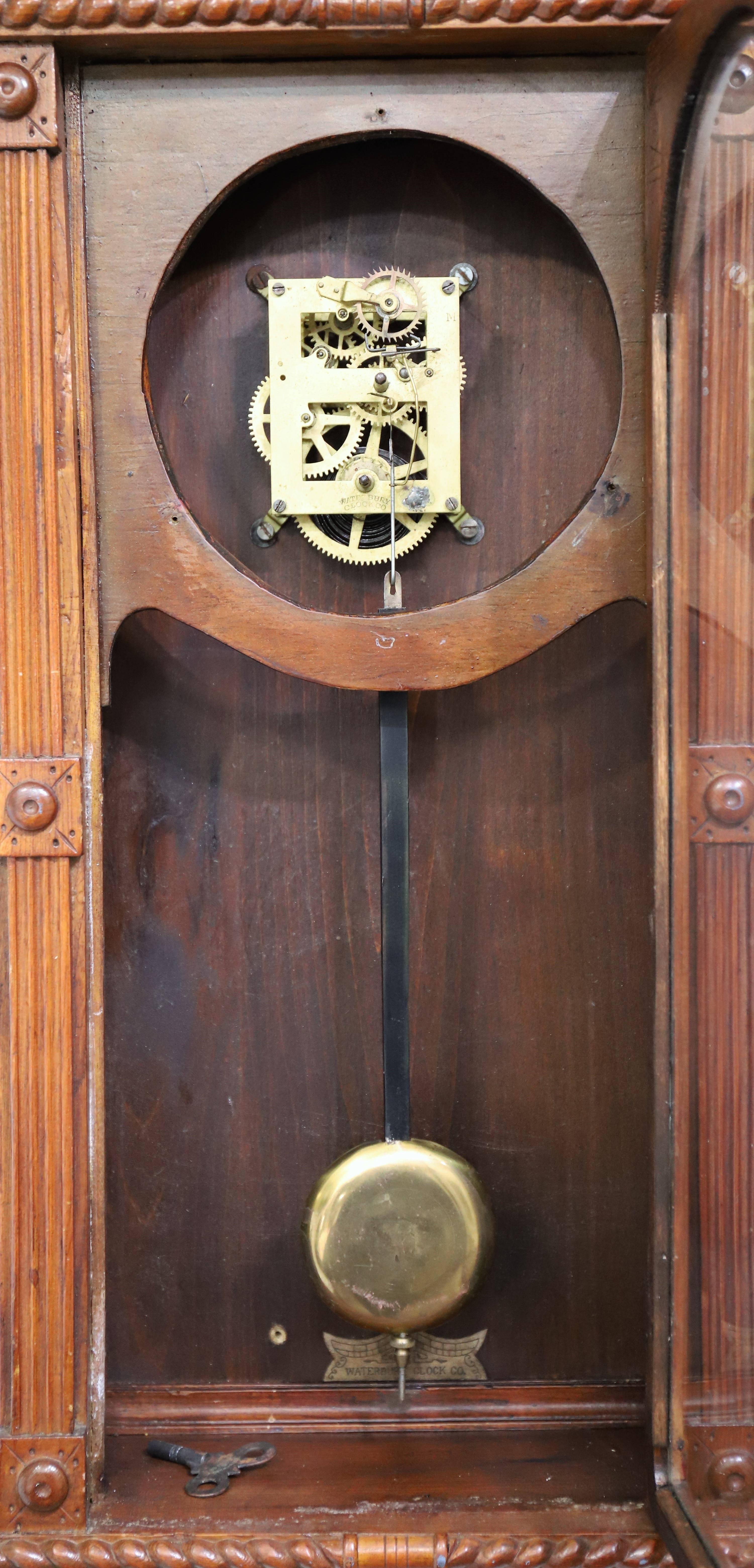 Waterbury Clock Co. “Leeds”, ca. 1893. A 39.5-inch cherry case with