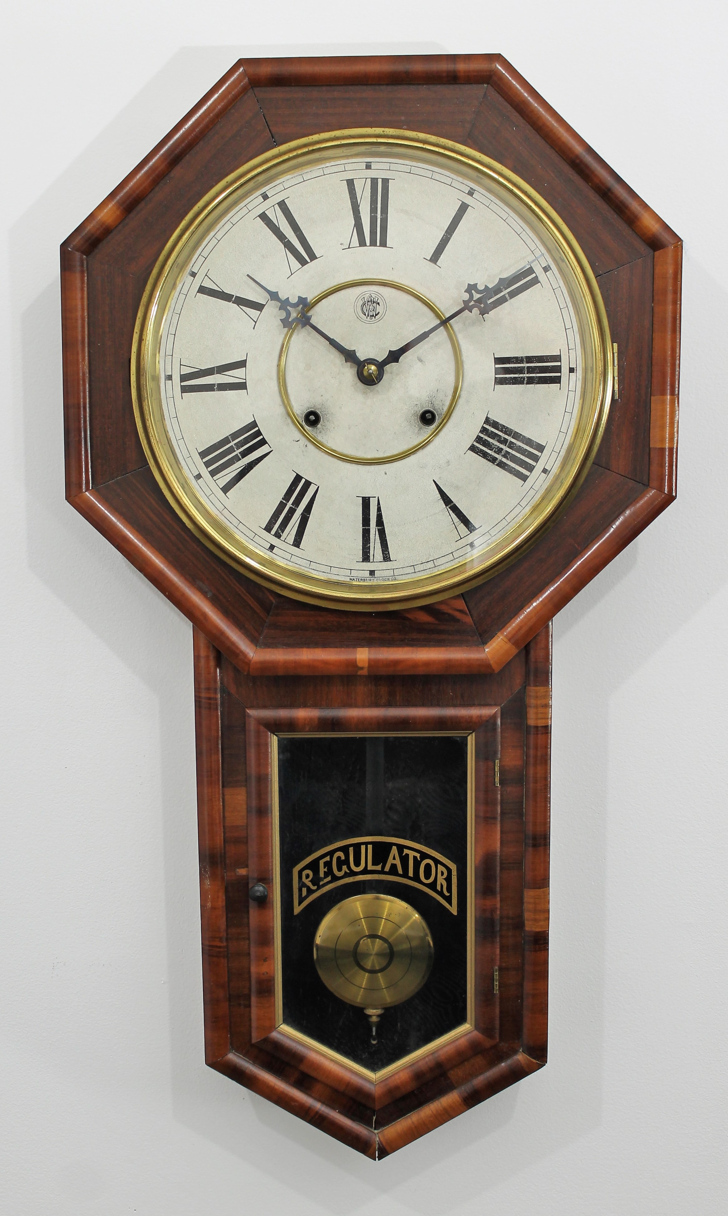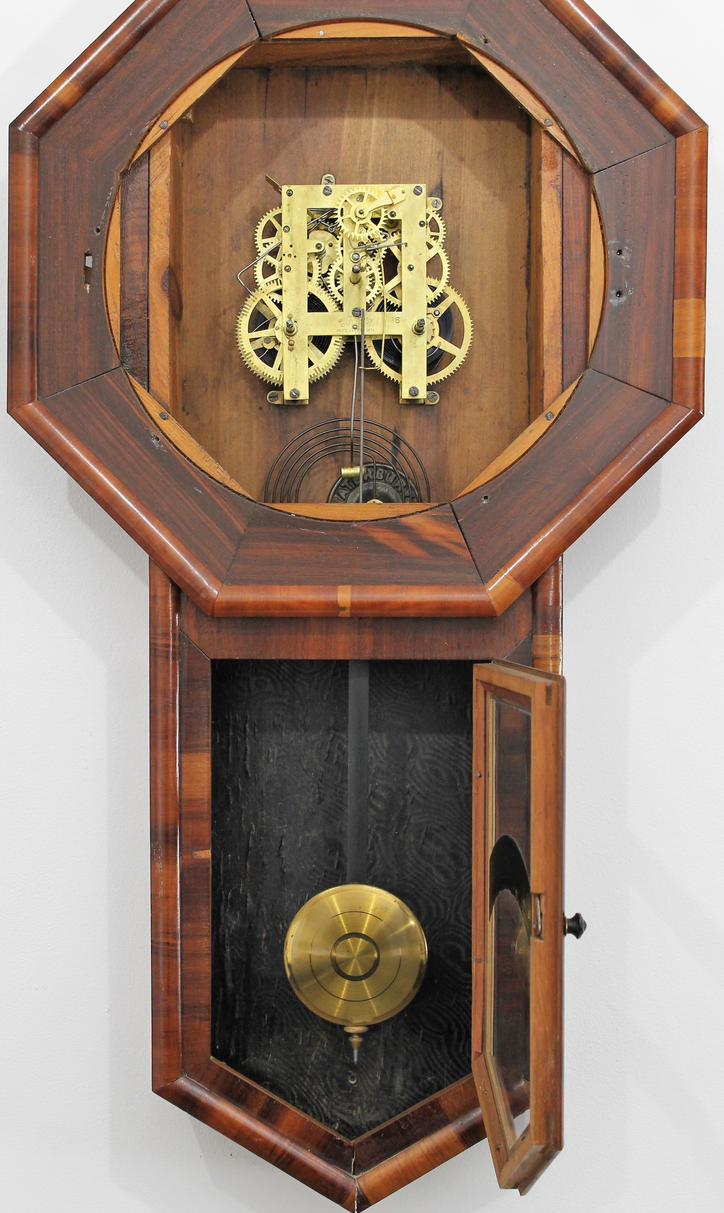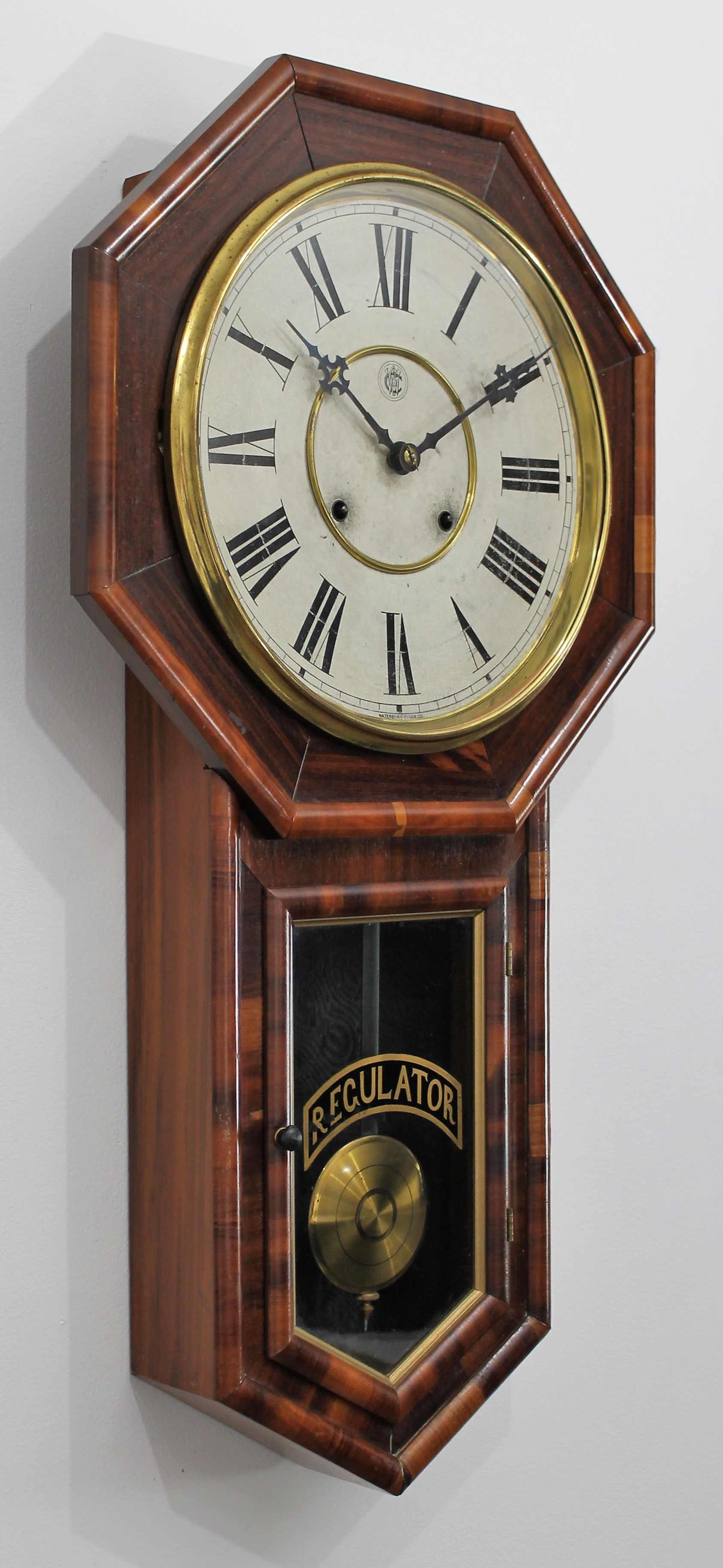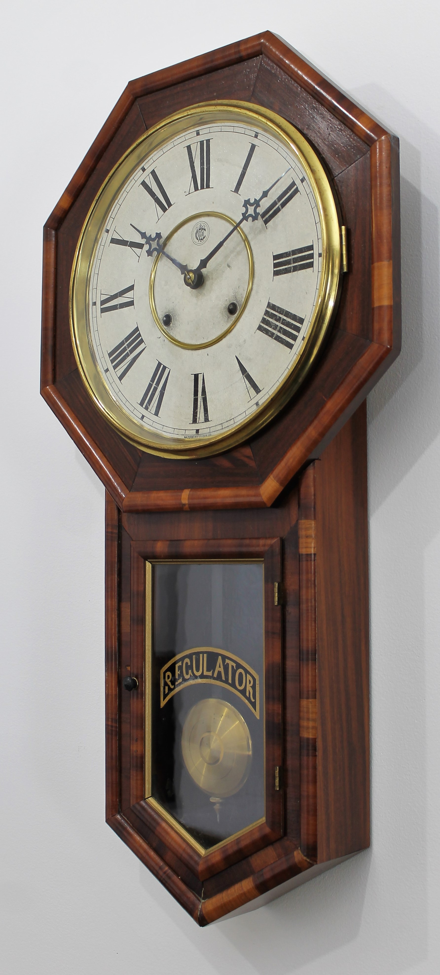 to tell with rosewood. Both glasses are old, the Regulator painting on the lower glass is flaking just a bit. The 12-inch