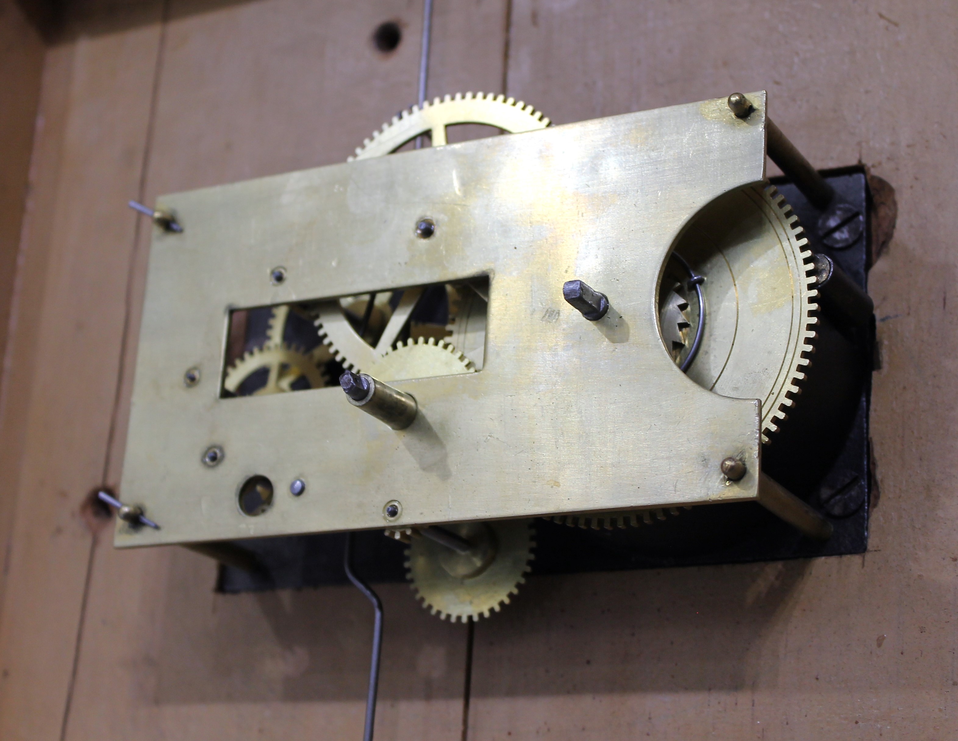 Ly’s book on Ingraham clocks. B&I used several different movements in these clocks, some with their characteristic ribbing. The clock is running without problem. The label has been lost. You can find similar examples on LiveAuctioneers, with