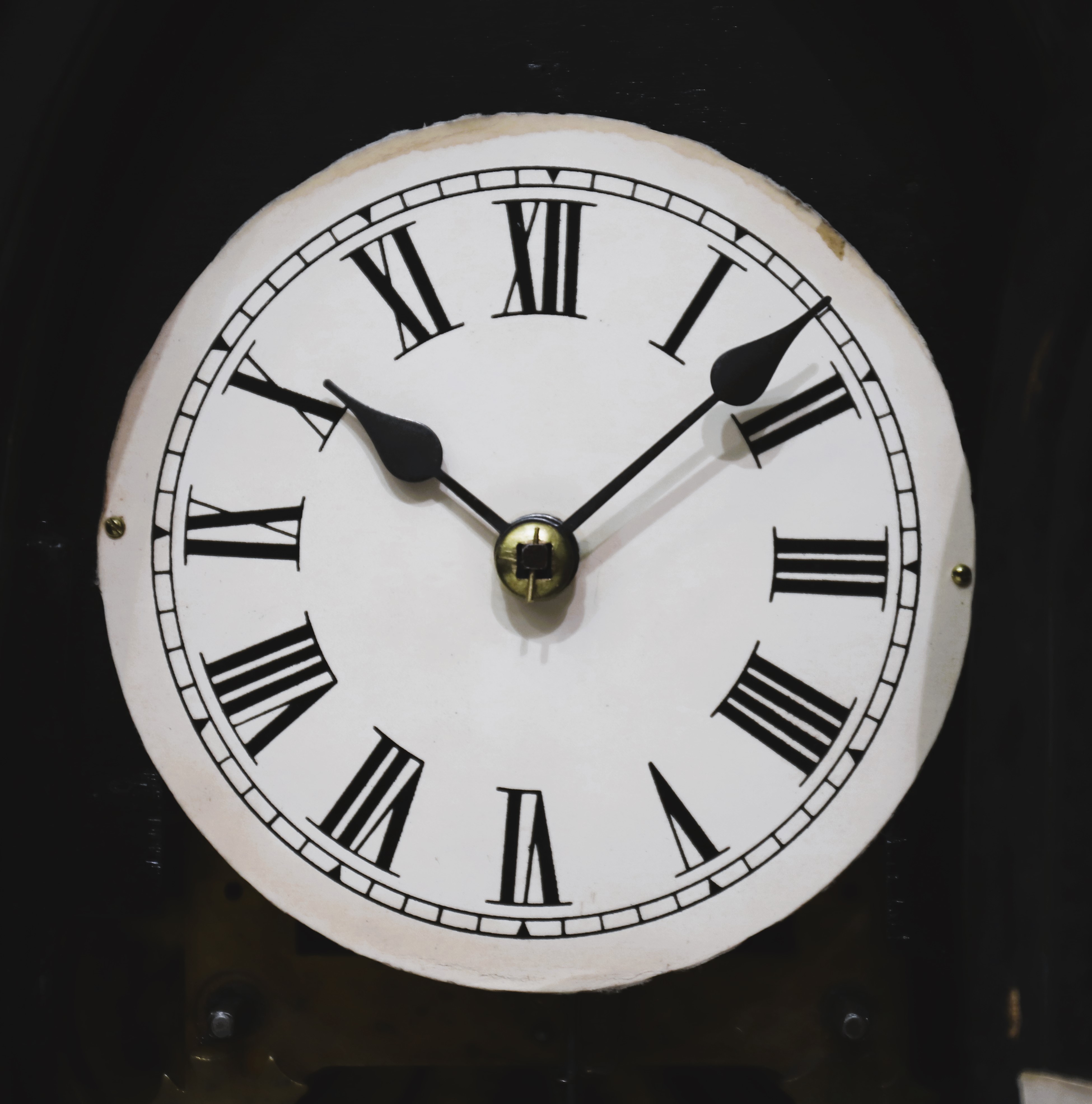 clocks. The glass is not old, the dial is glossy paper on a brass plate that may not be original. The hands are likely