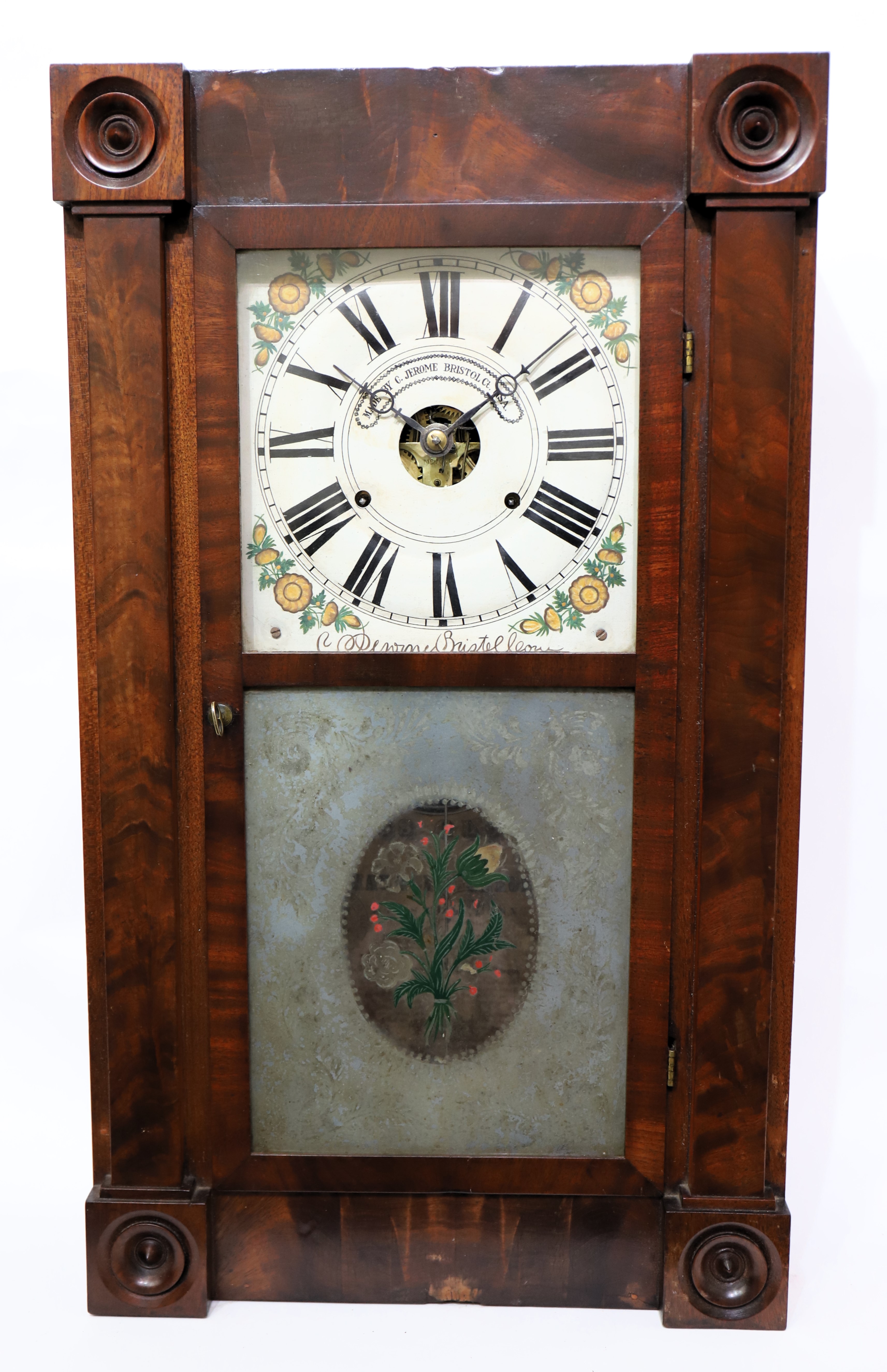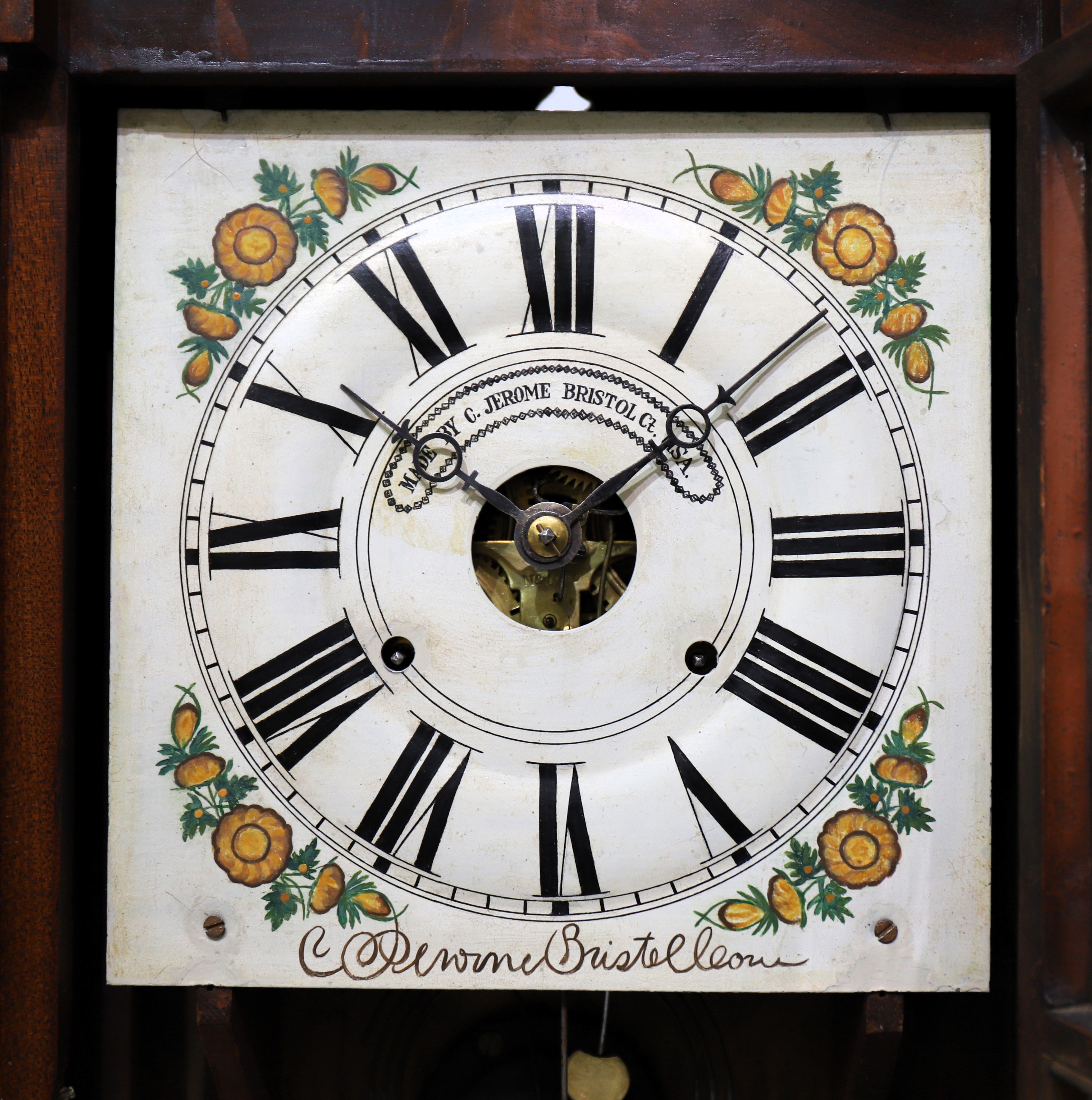 and proper. The 30-hour brass time-and-strike movement is signed ‘Chauncey Jerome Bristol’ and numbered 1000; it will run briefly