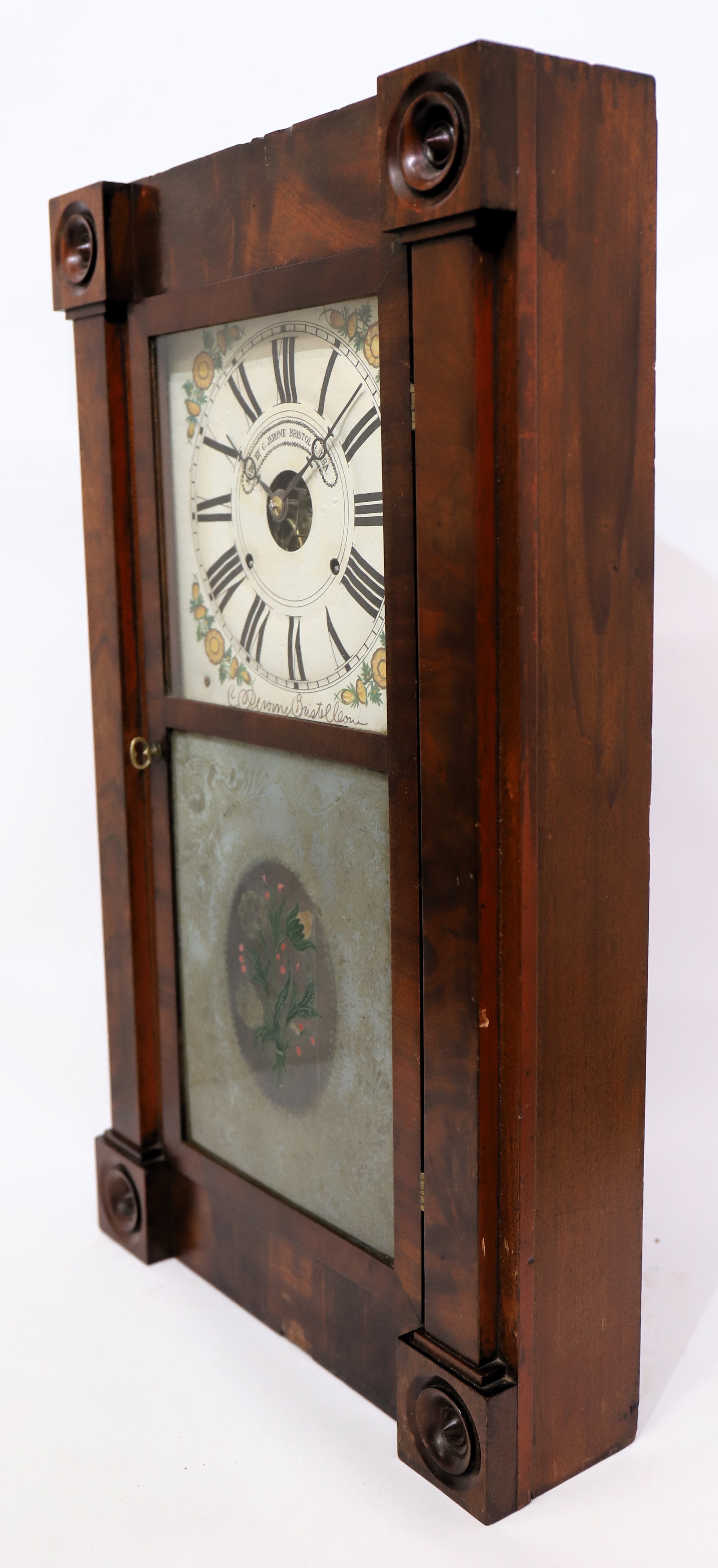 flat-column shelf clock, ca. 1840. This is the large version of a model more often seen as a miniature; this one is 25 inches