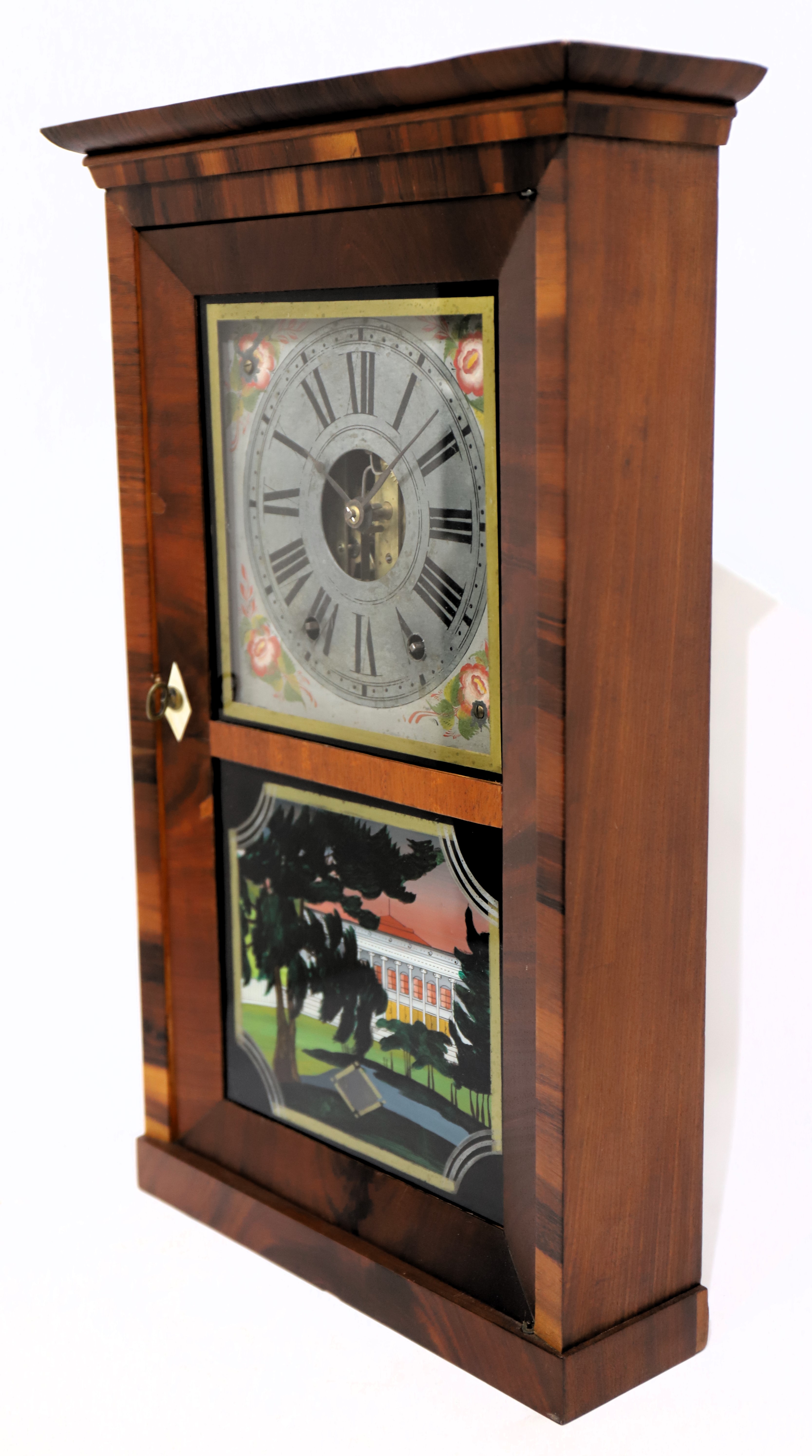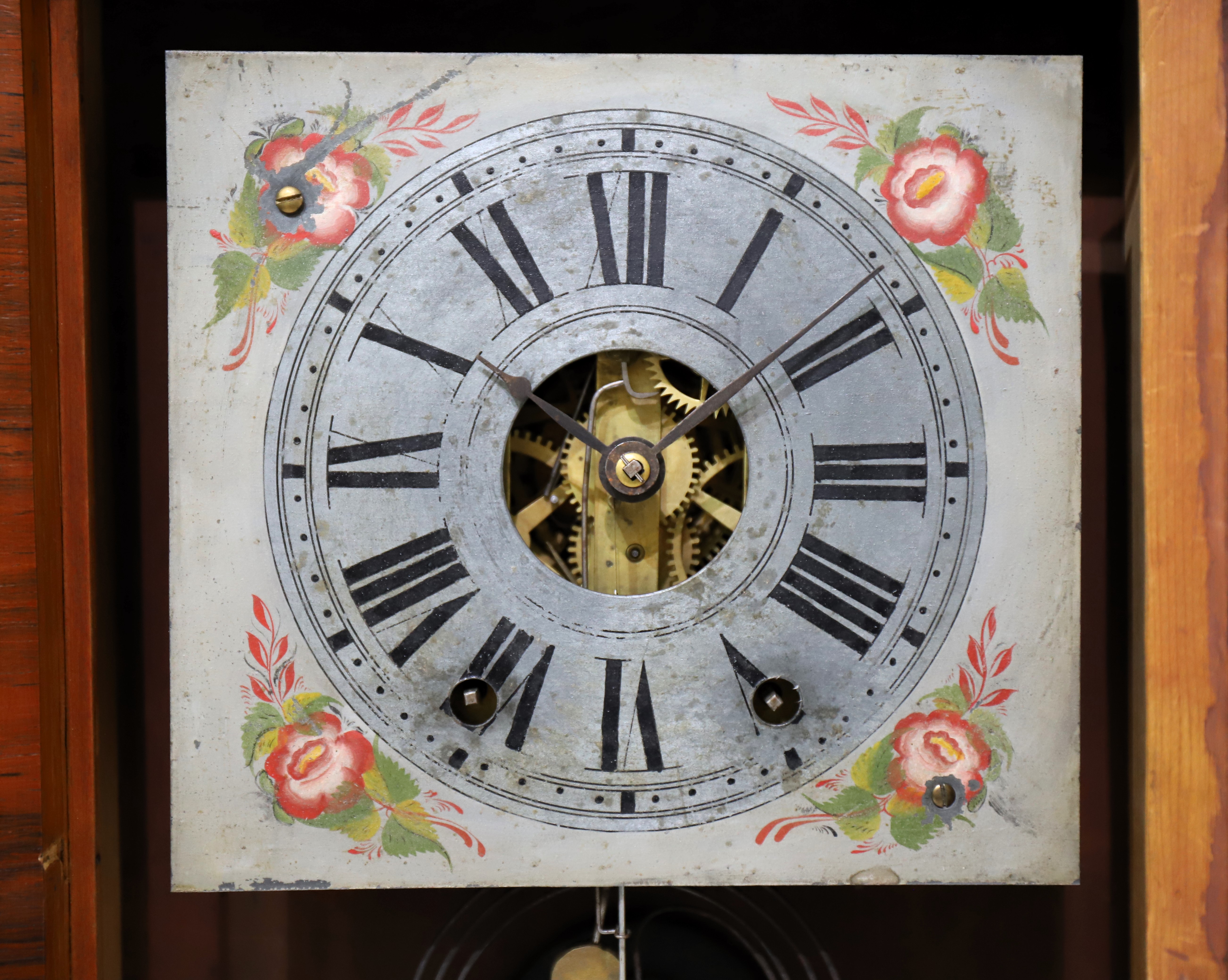 center and painted spandrels on a cream/gray background. Both hands are period/original. The 30-hour time-and-strike brass