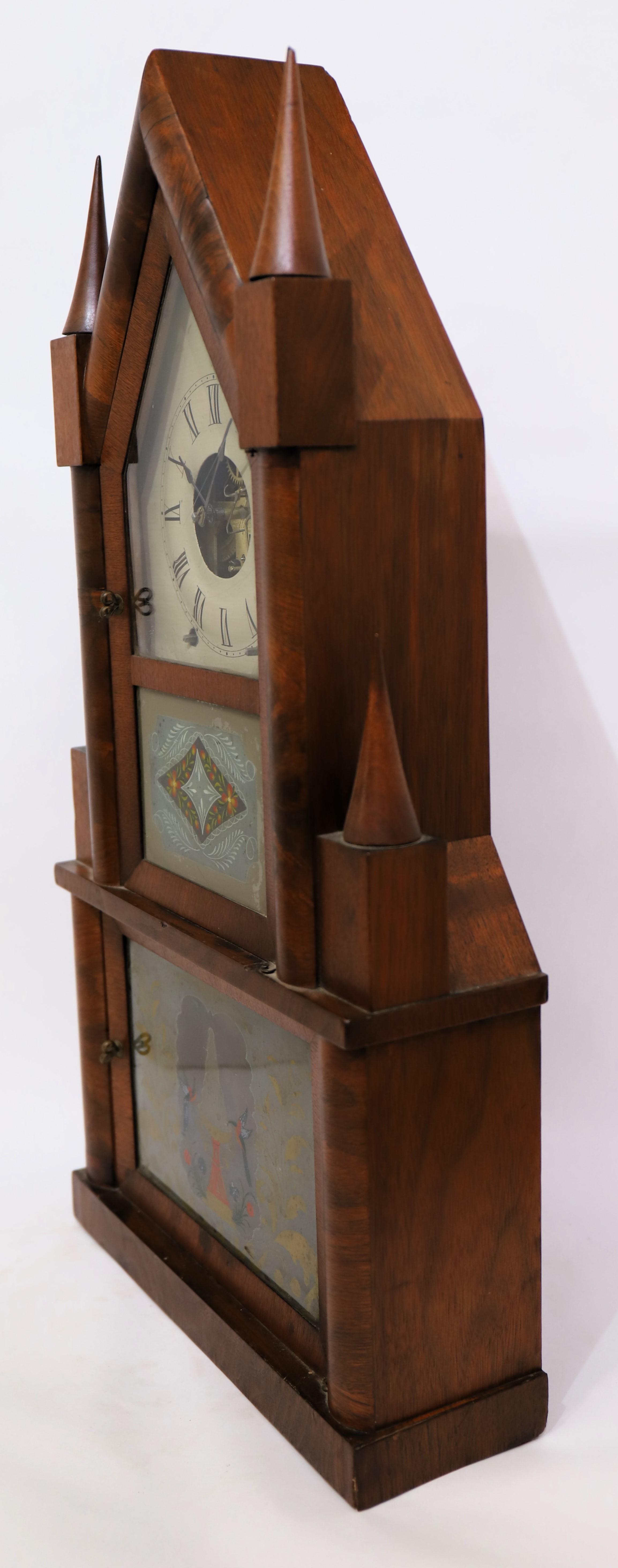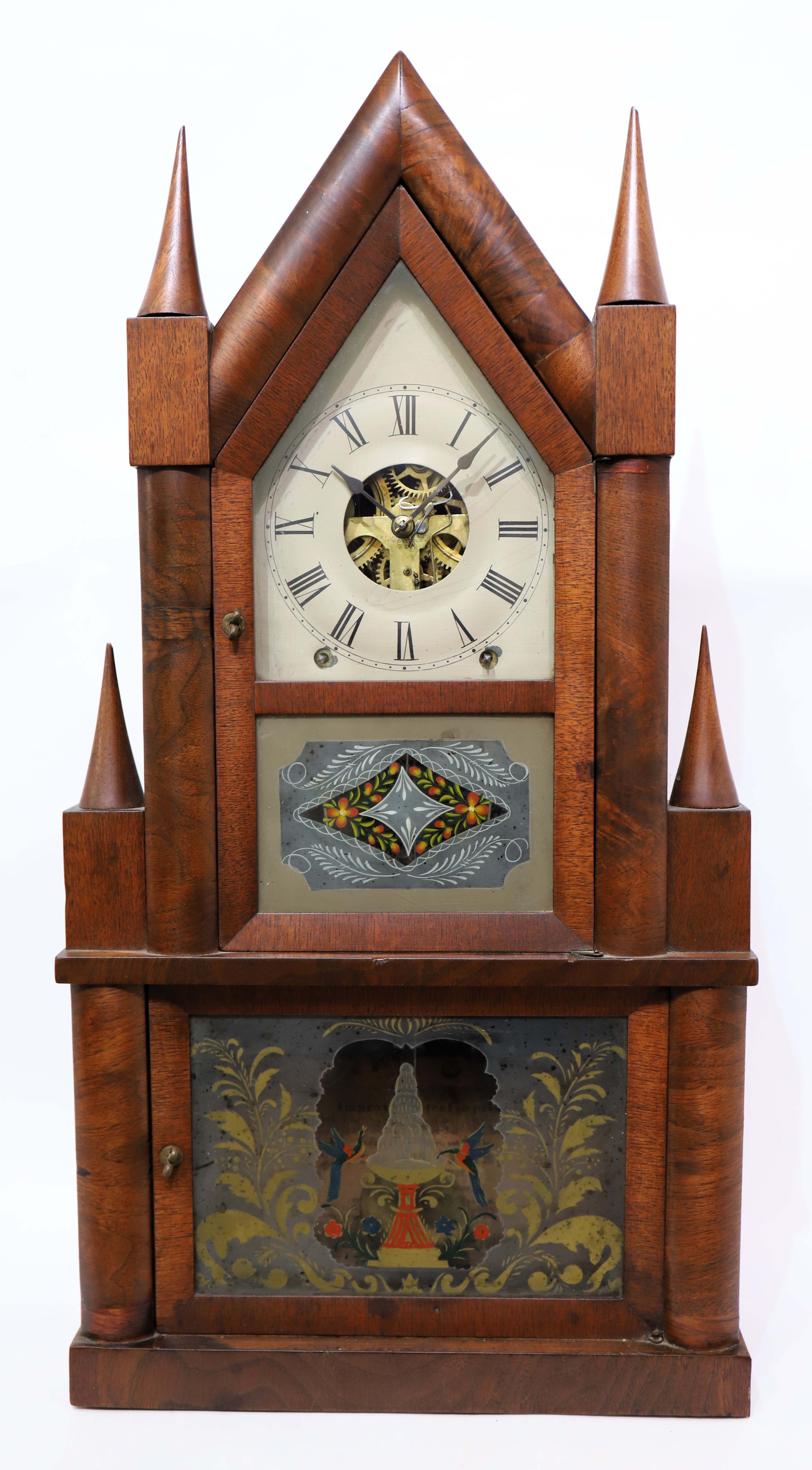 John Birge double-steeple fusee, ca. 1848. A second example of this double steeple with a remote fusee movement. The 25-inch case has a clean, old finish with a couple