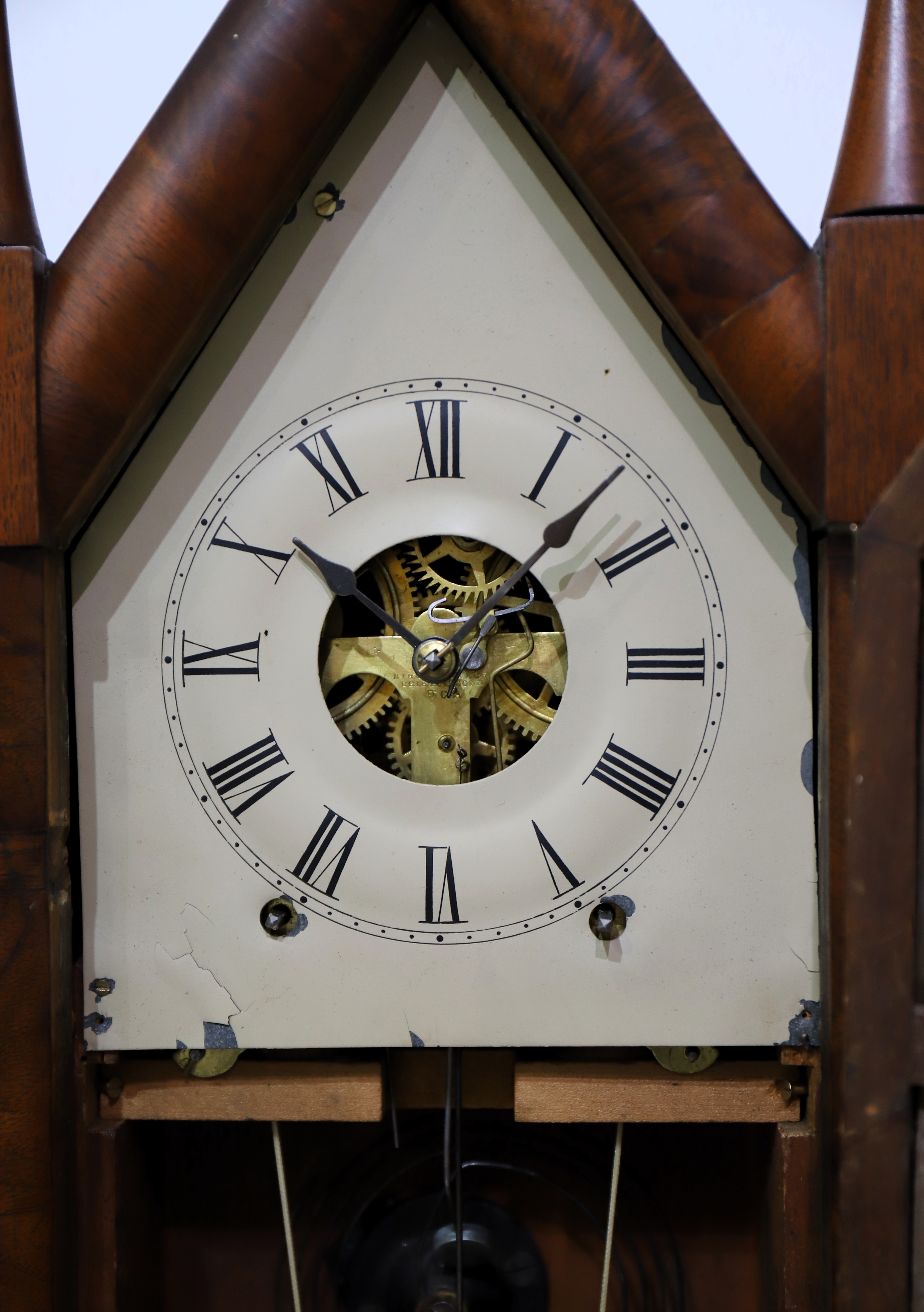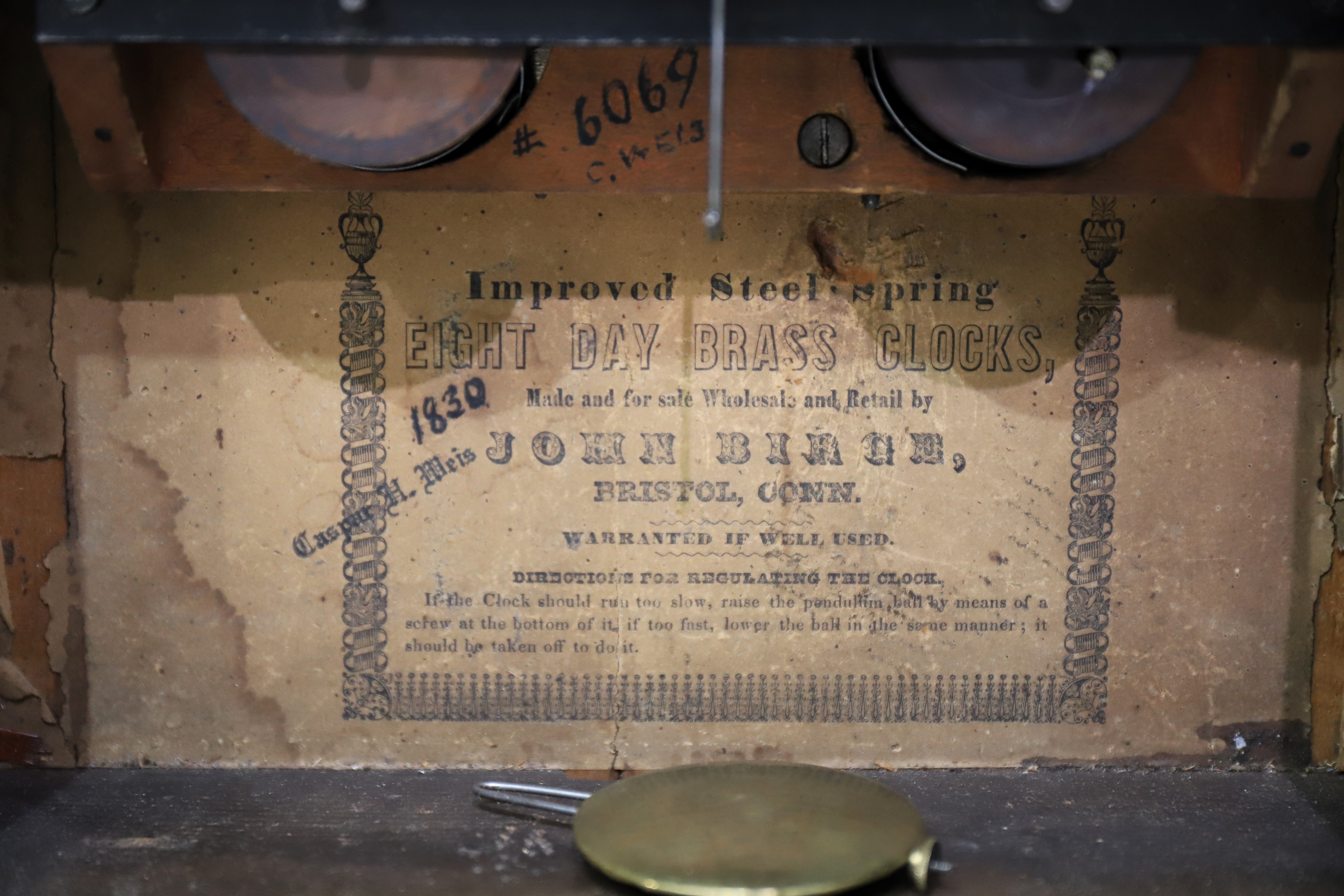 double-fusee movement will run for a while, the strike is slow but working. The movement is signed Birge & Fuller. There is a good label inside. $1000–$1500.
