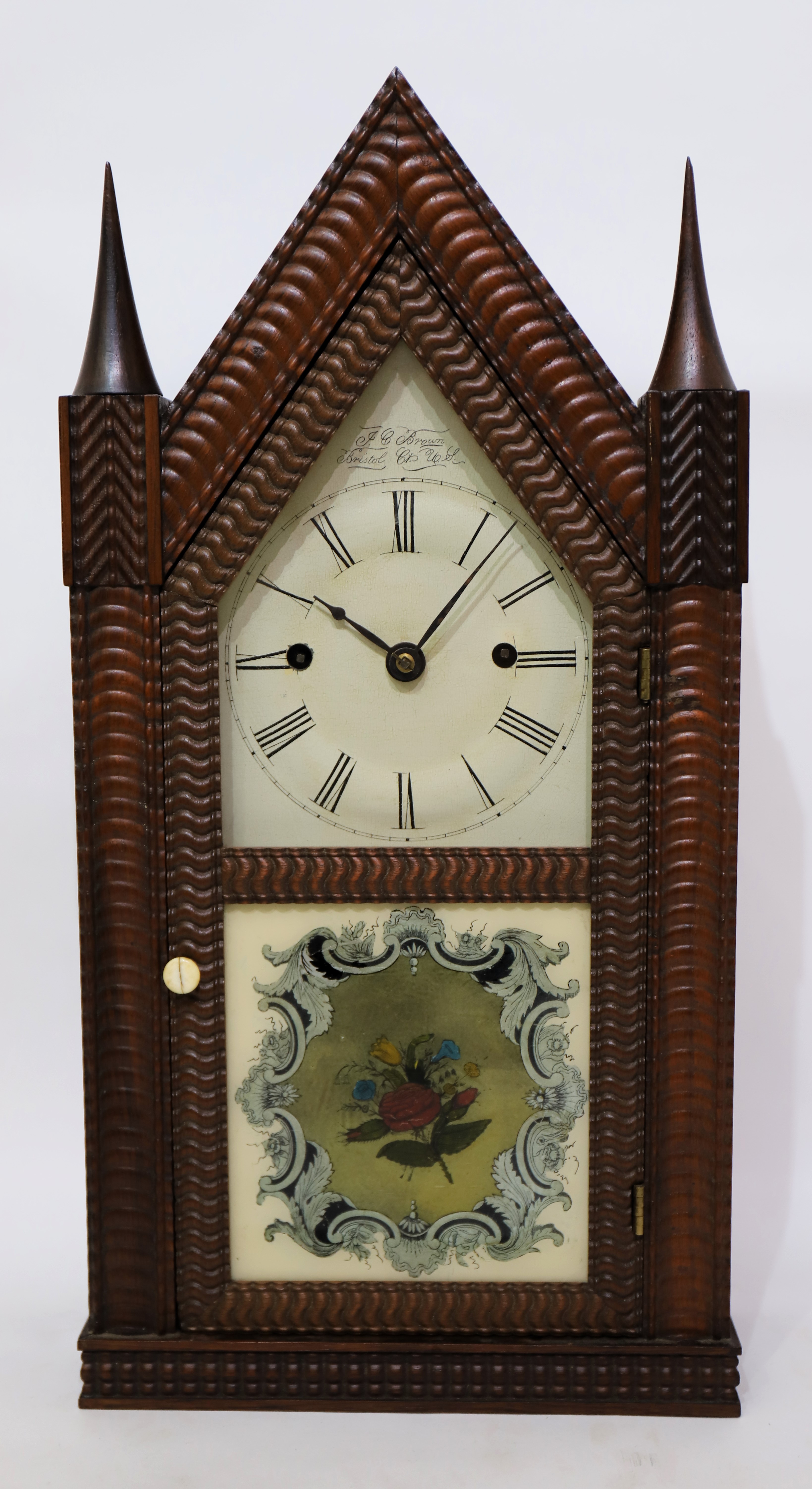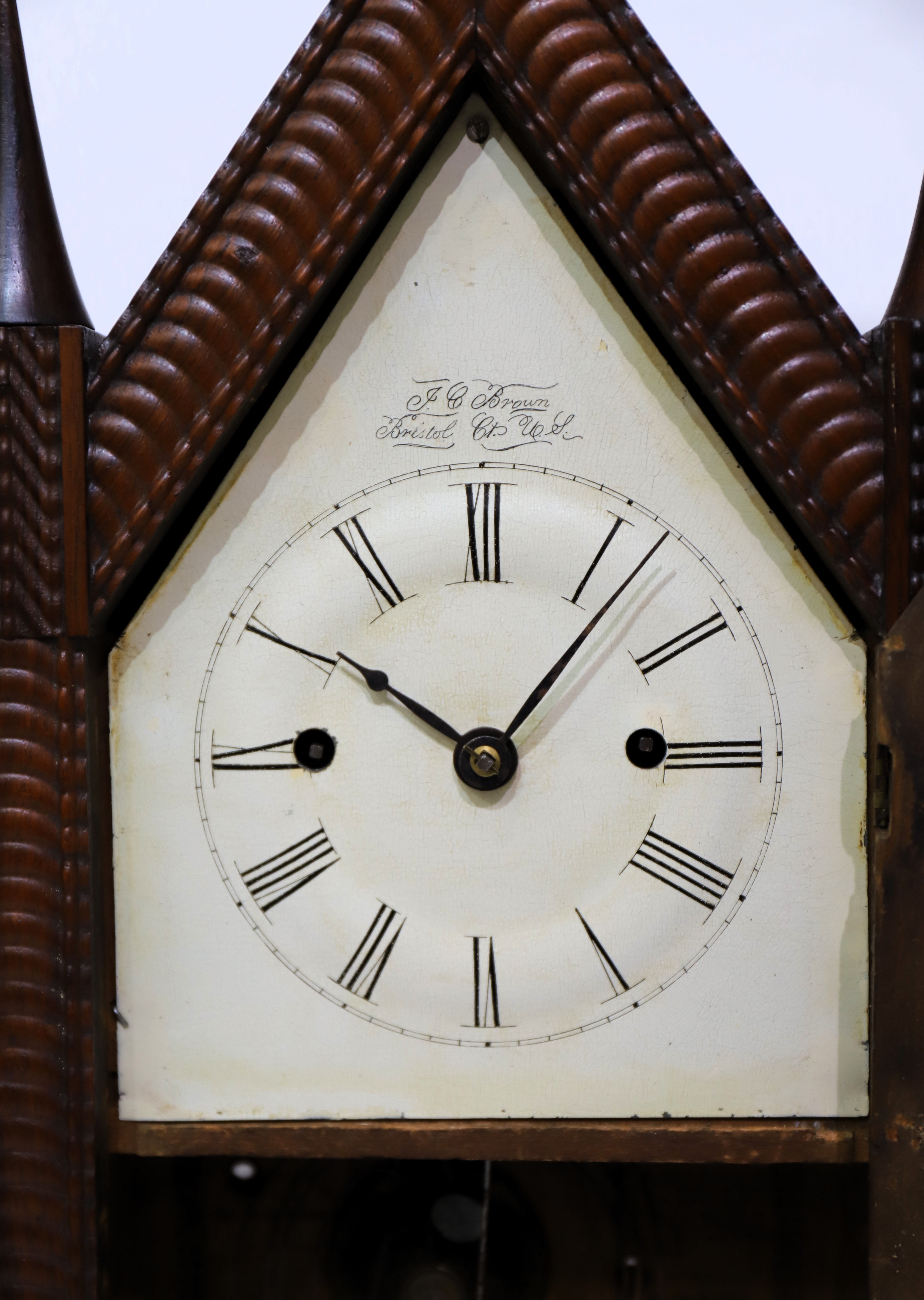 fusee, 1842-1849. It is unusual to find a ripple-front steeple with a fusee movement, as found here. The case is 20 inches