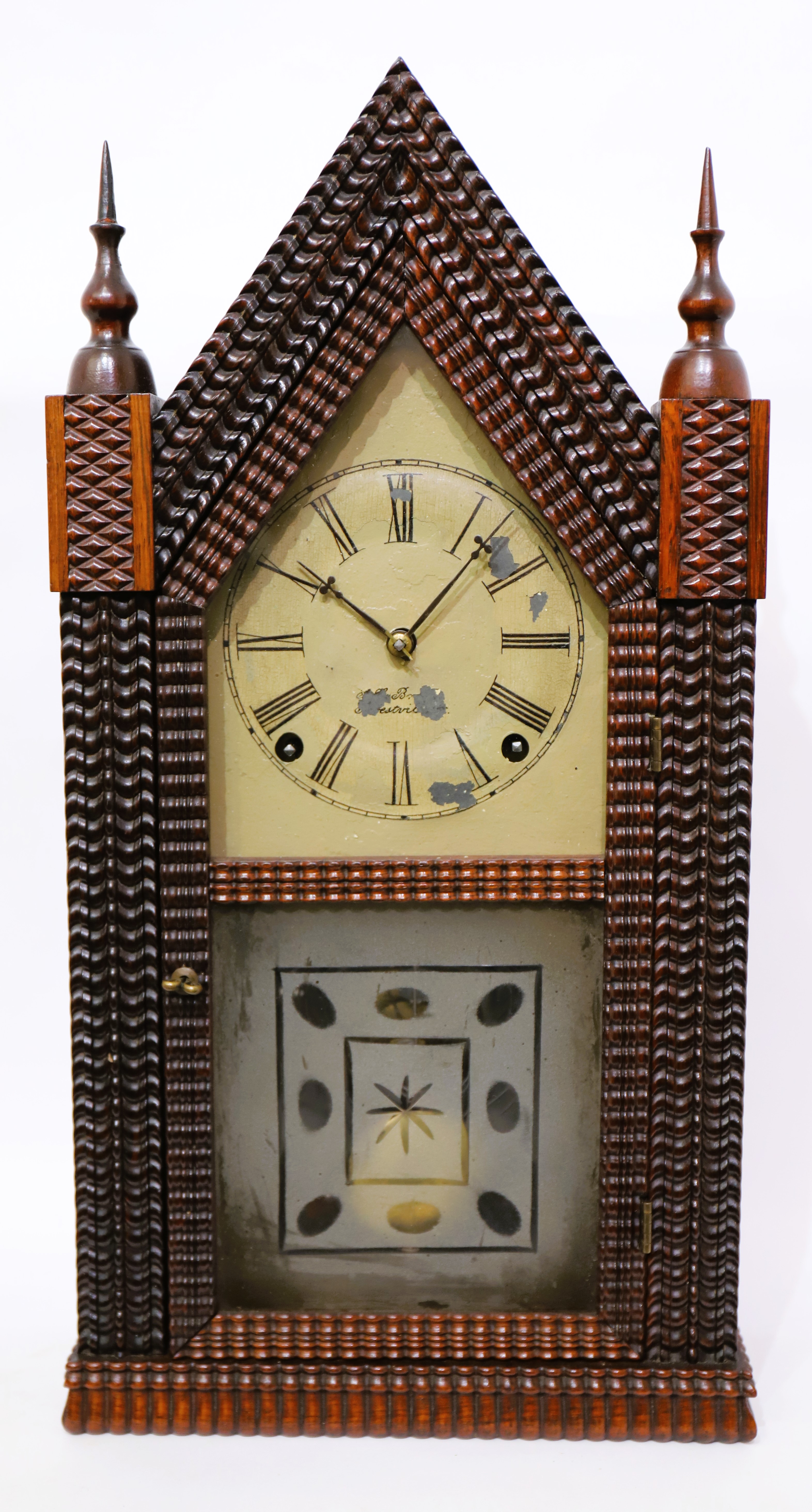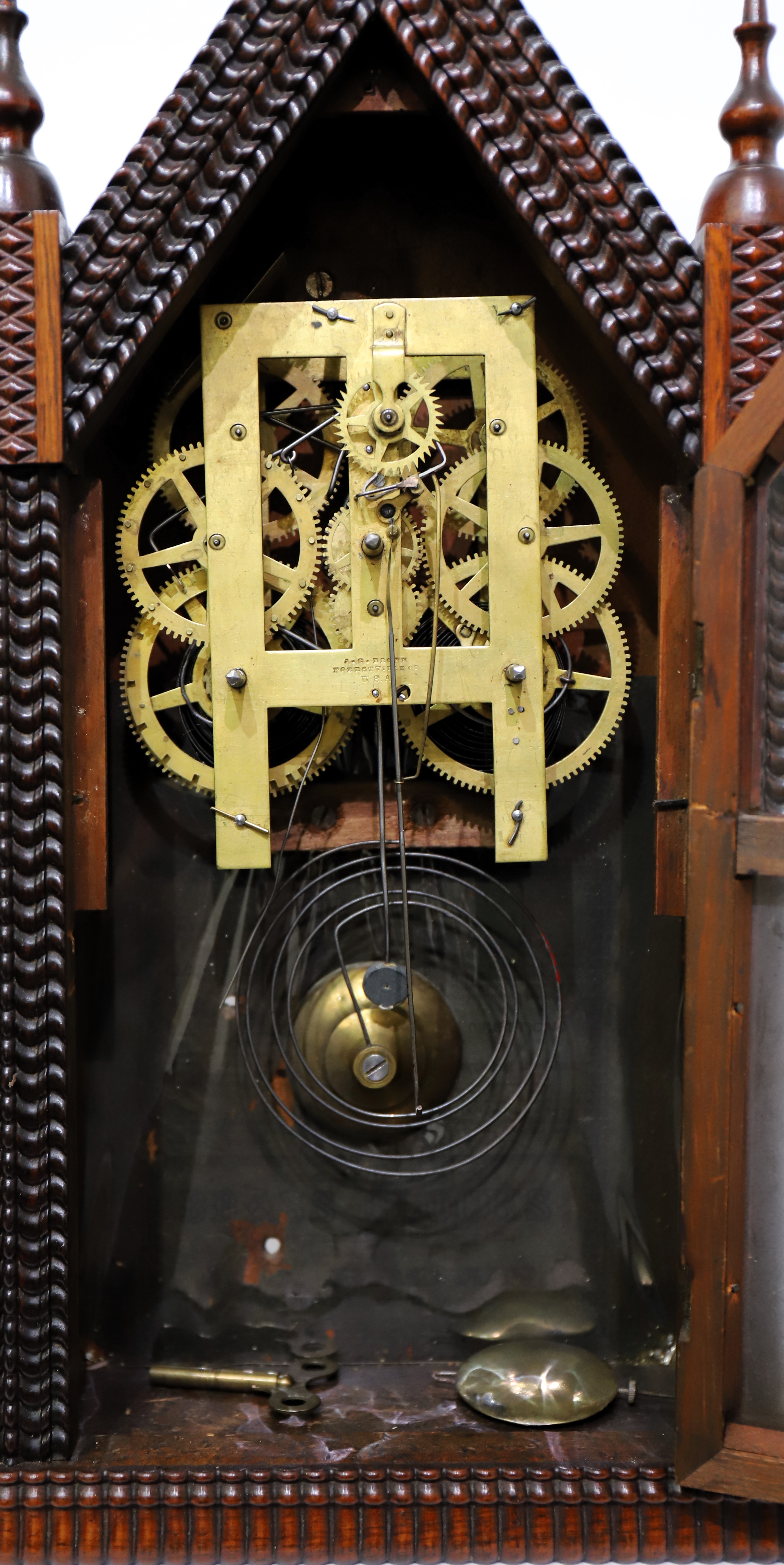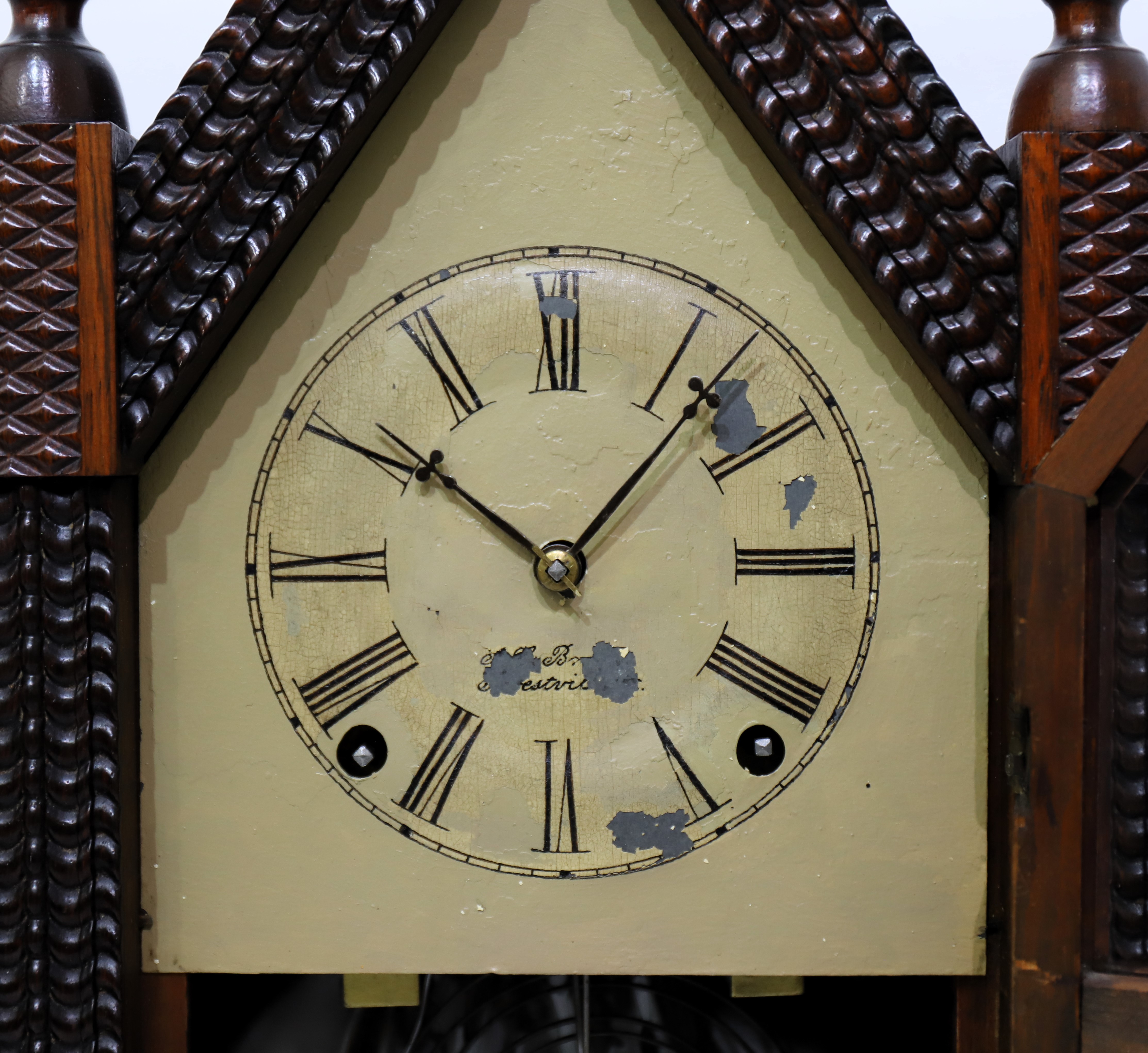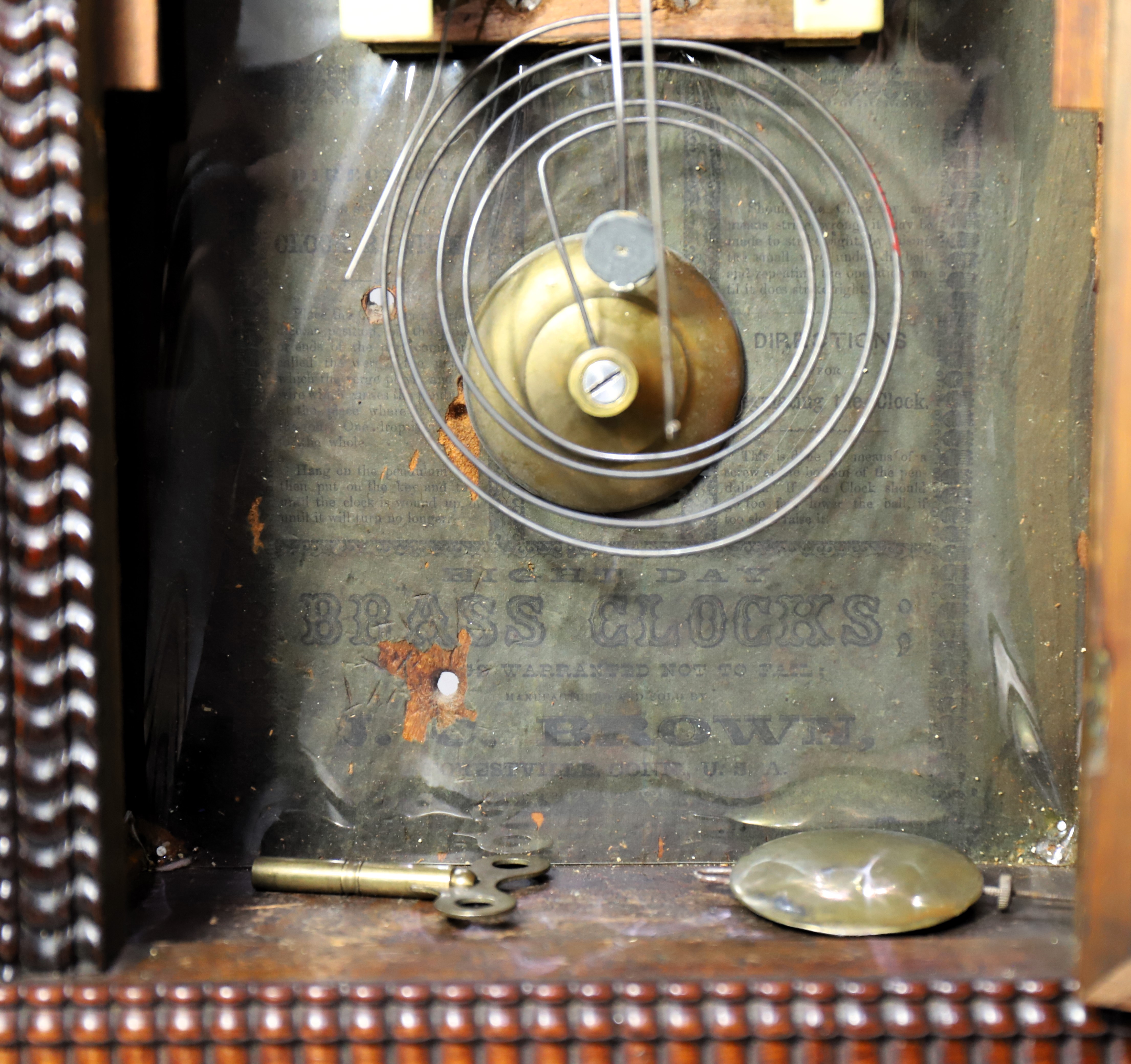 appropriate. The 8-day time-and-strike movement is signed J.C. Brown; it is running and striking on the wire gong. There