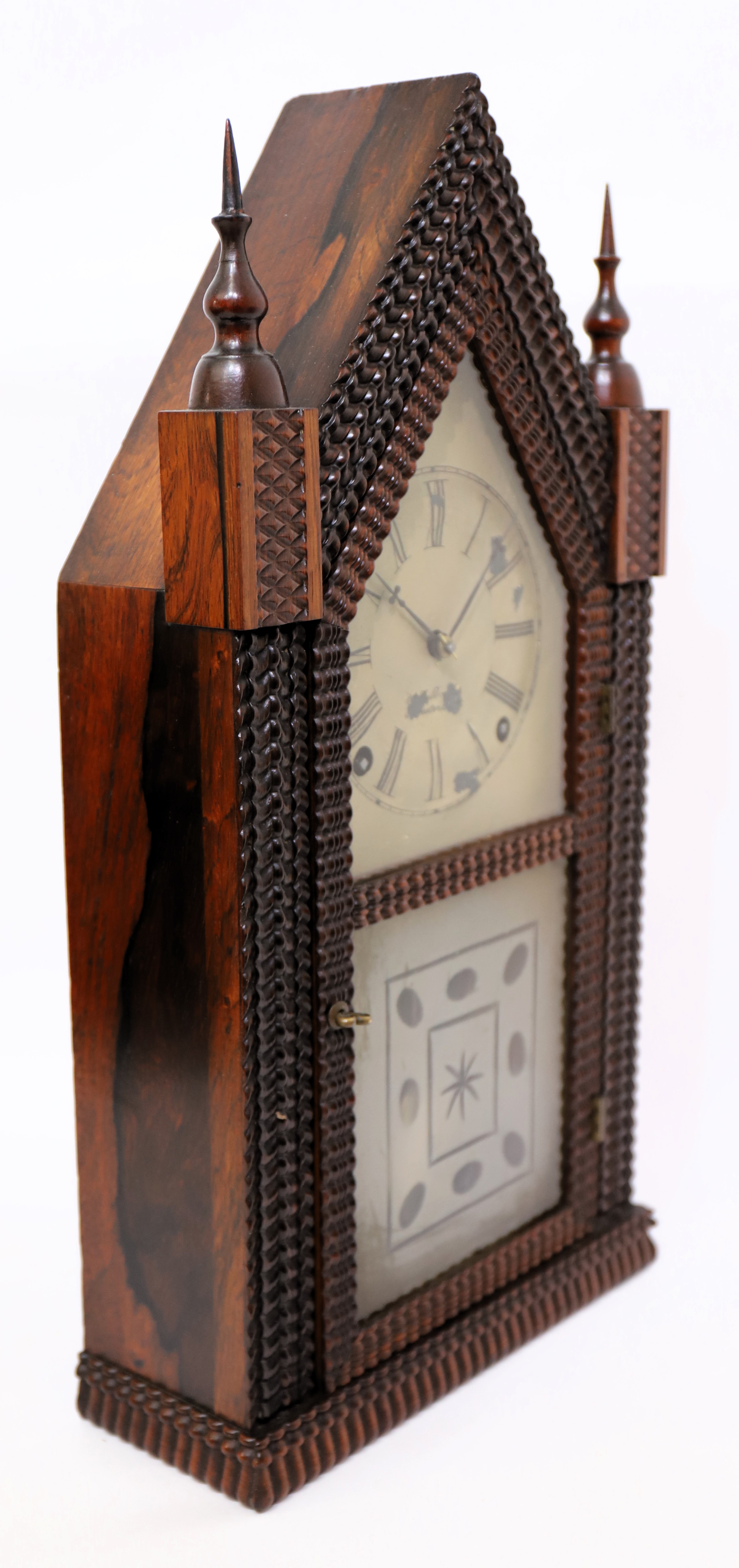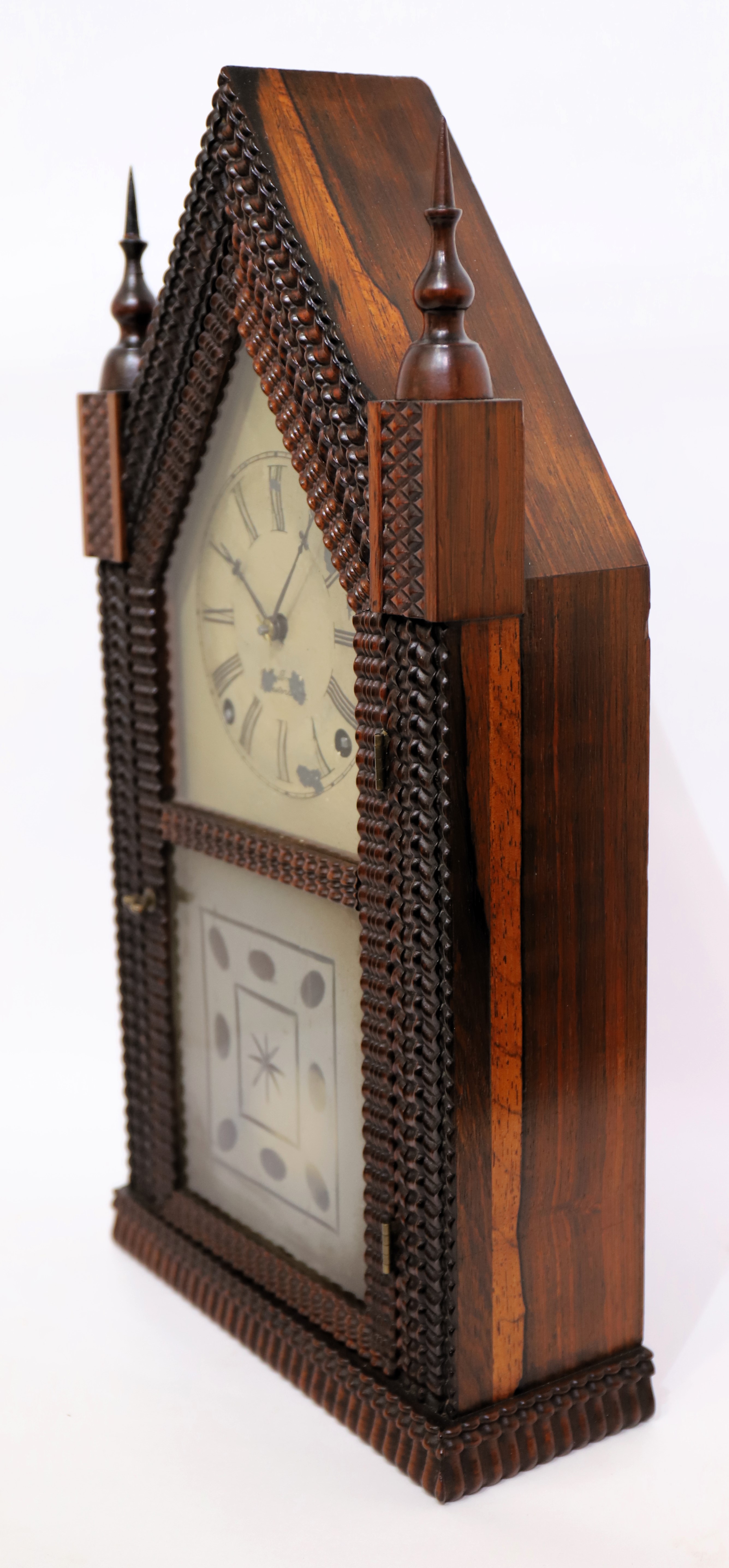 J.C. Brown ripple-front steeple, 1842-1849. A 20-inch case with a full ripple front and beautiful rosewood veneer on the sides. Both glasses are period but not necessarily