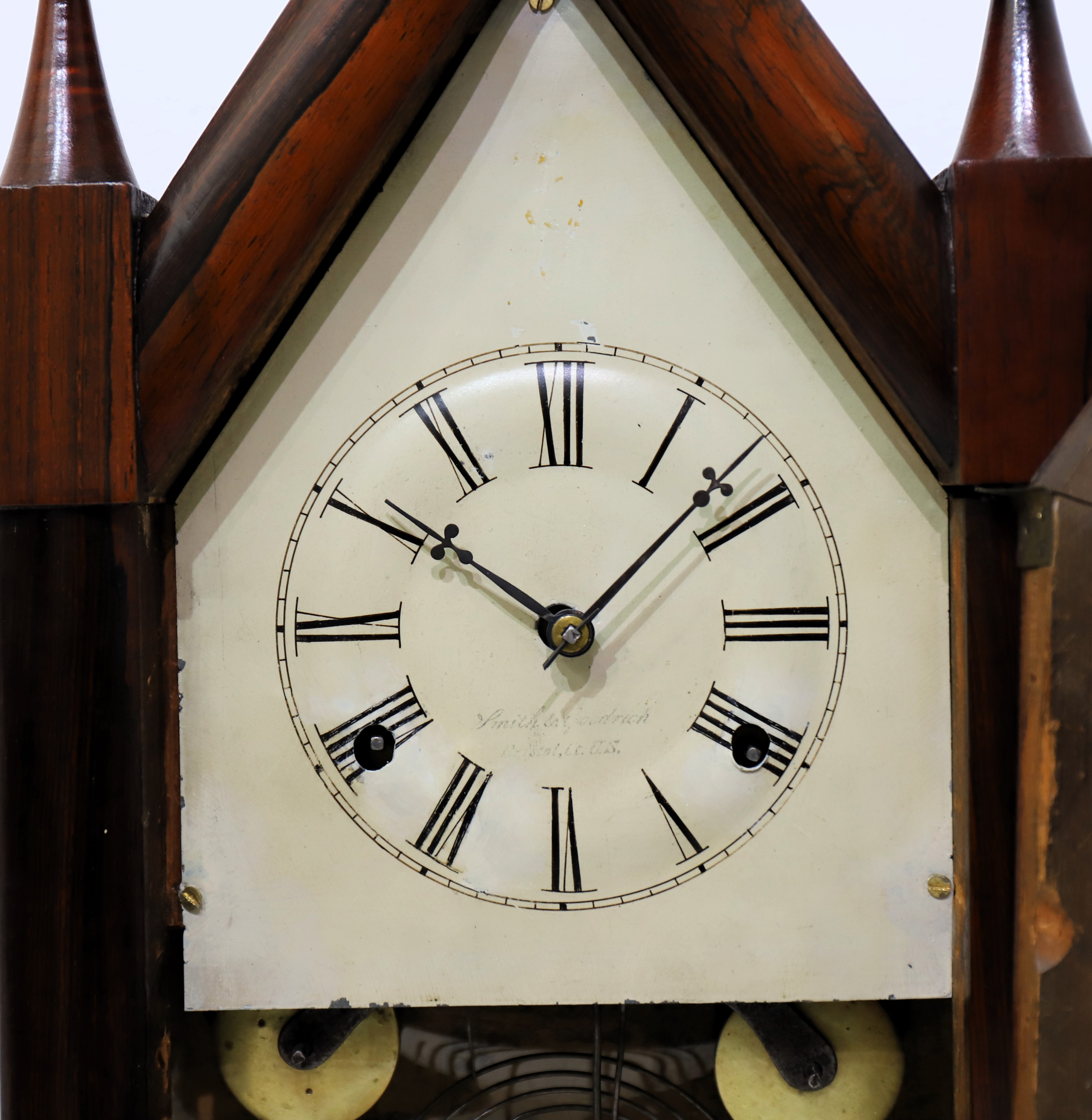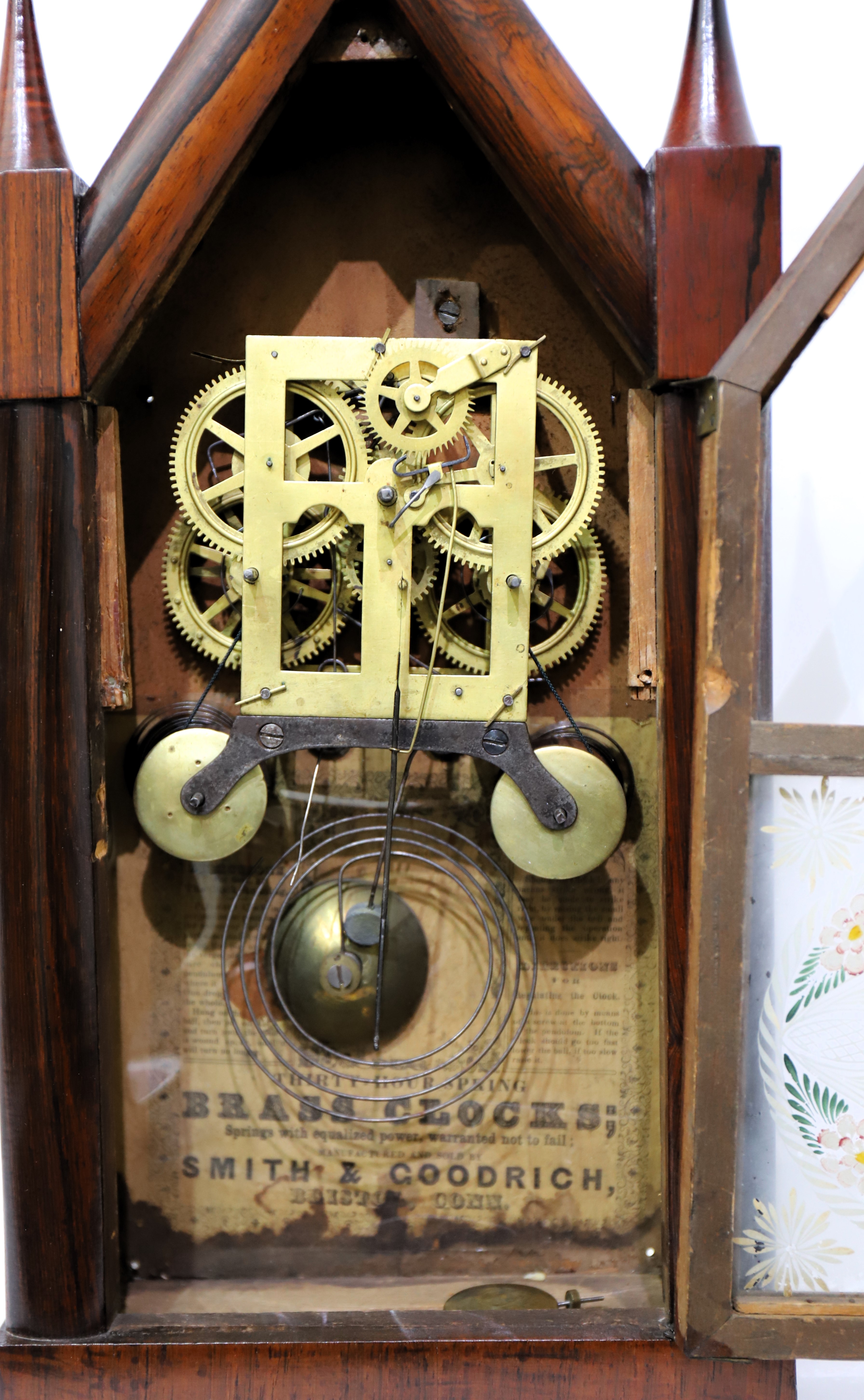and bears the original signature of Smith & Goodrich, Bristol CT. The hands are period. The 30-hour brass time-and-strike