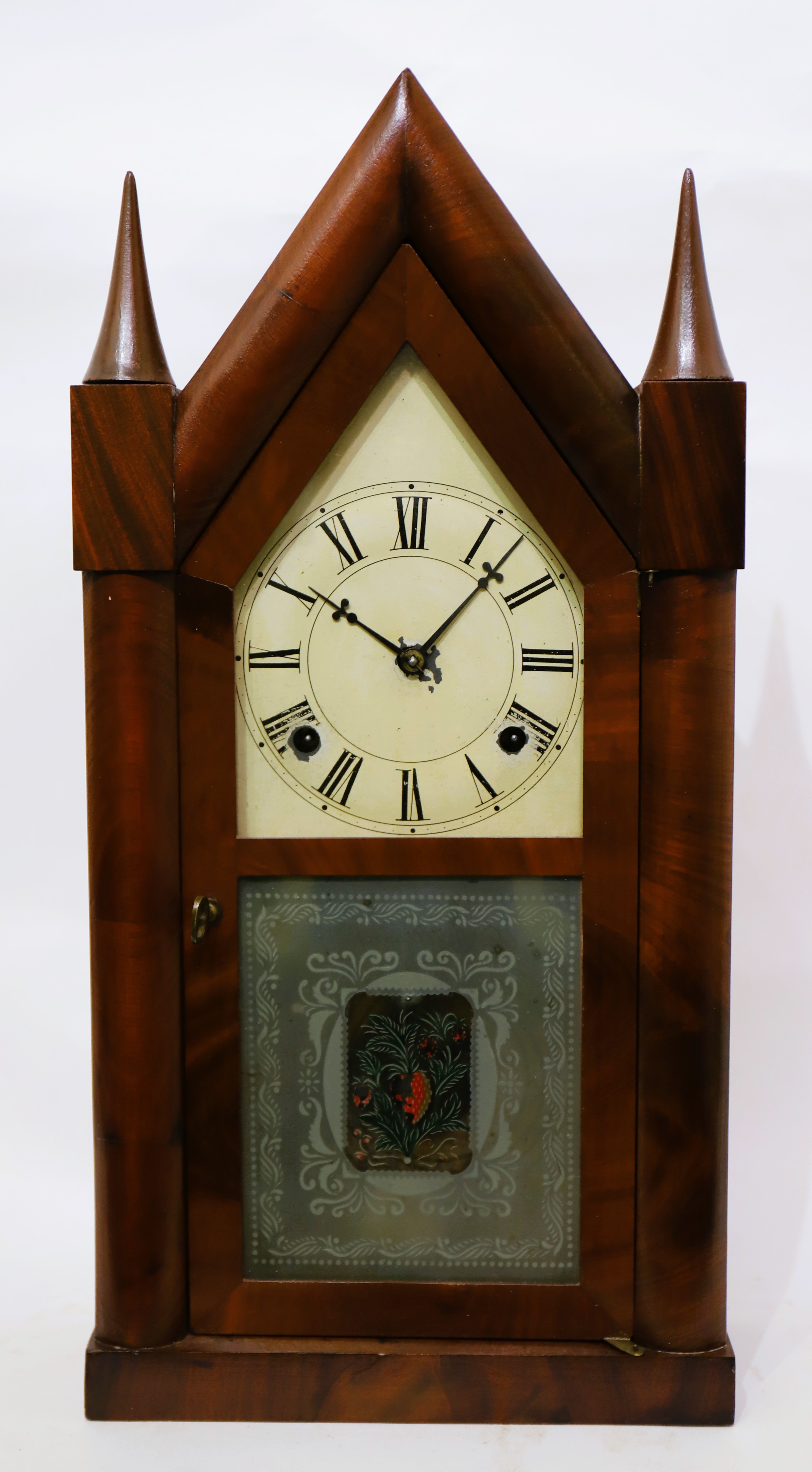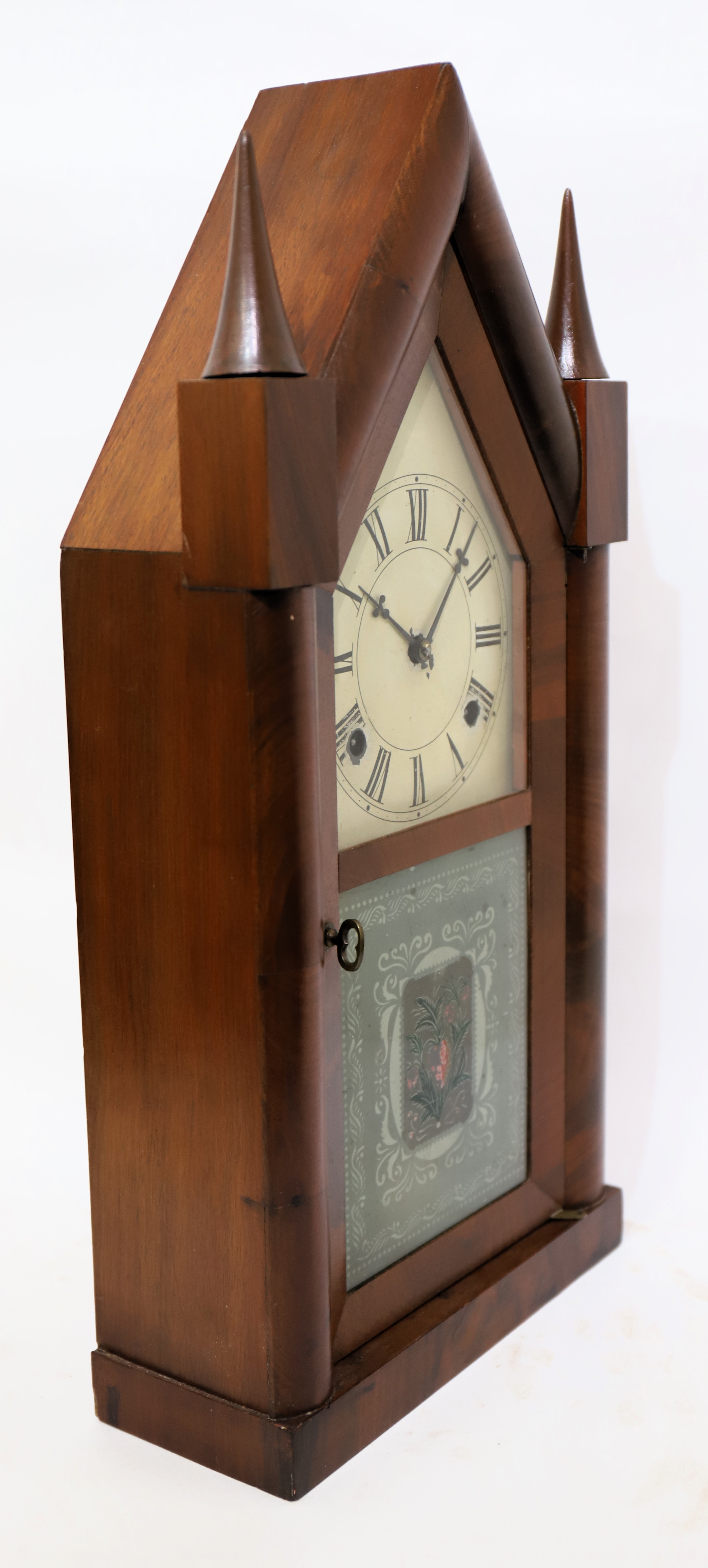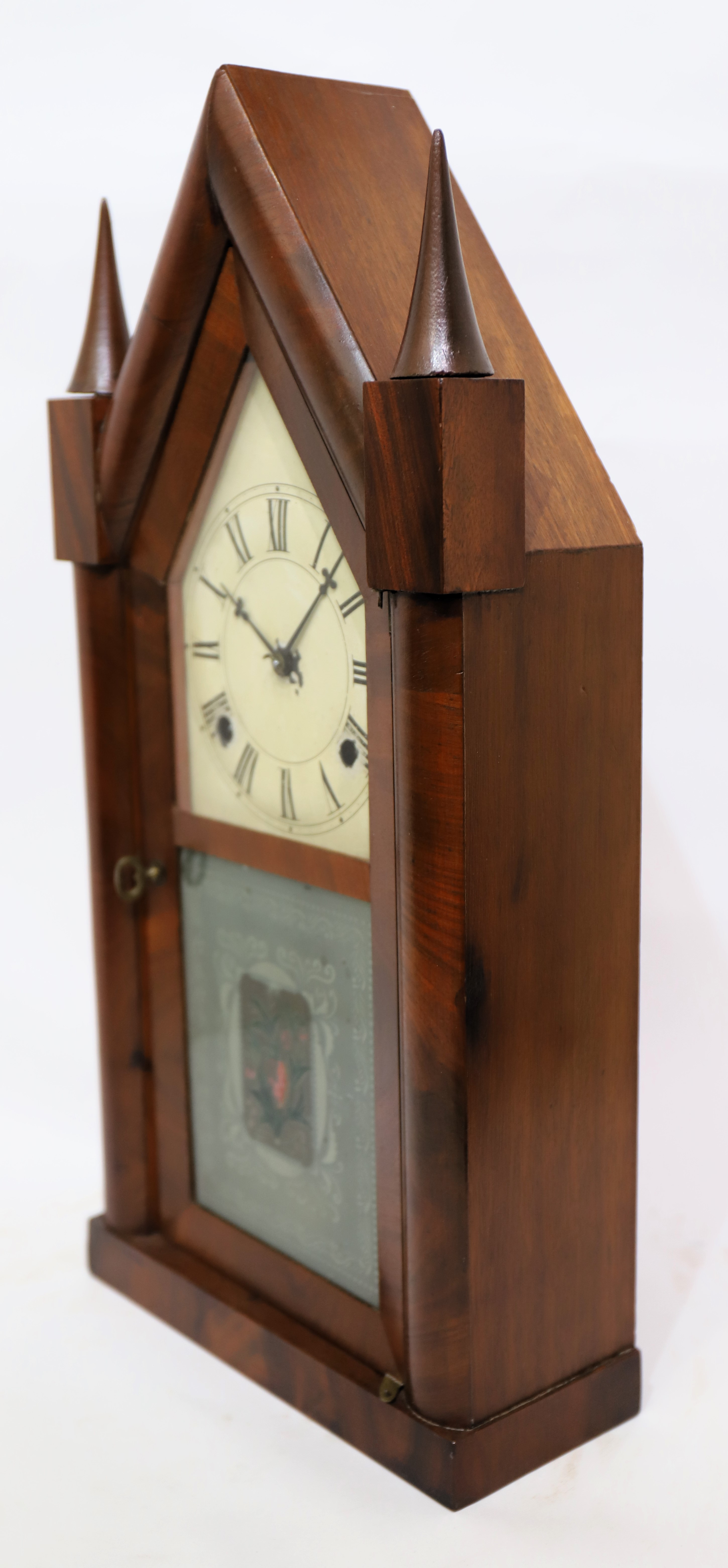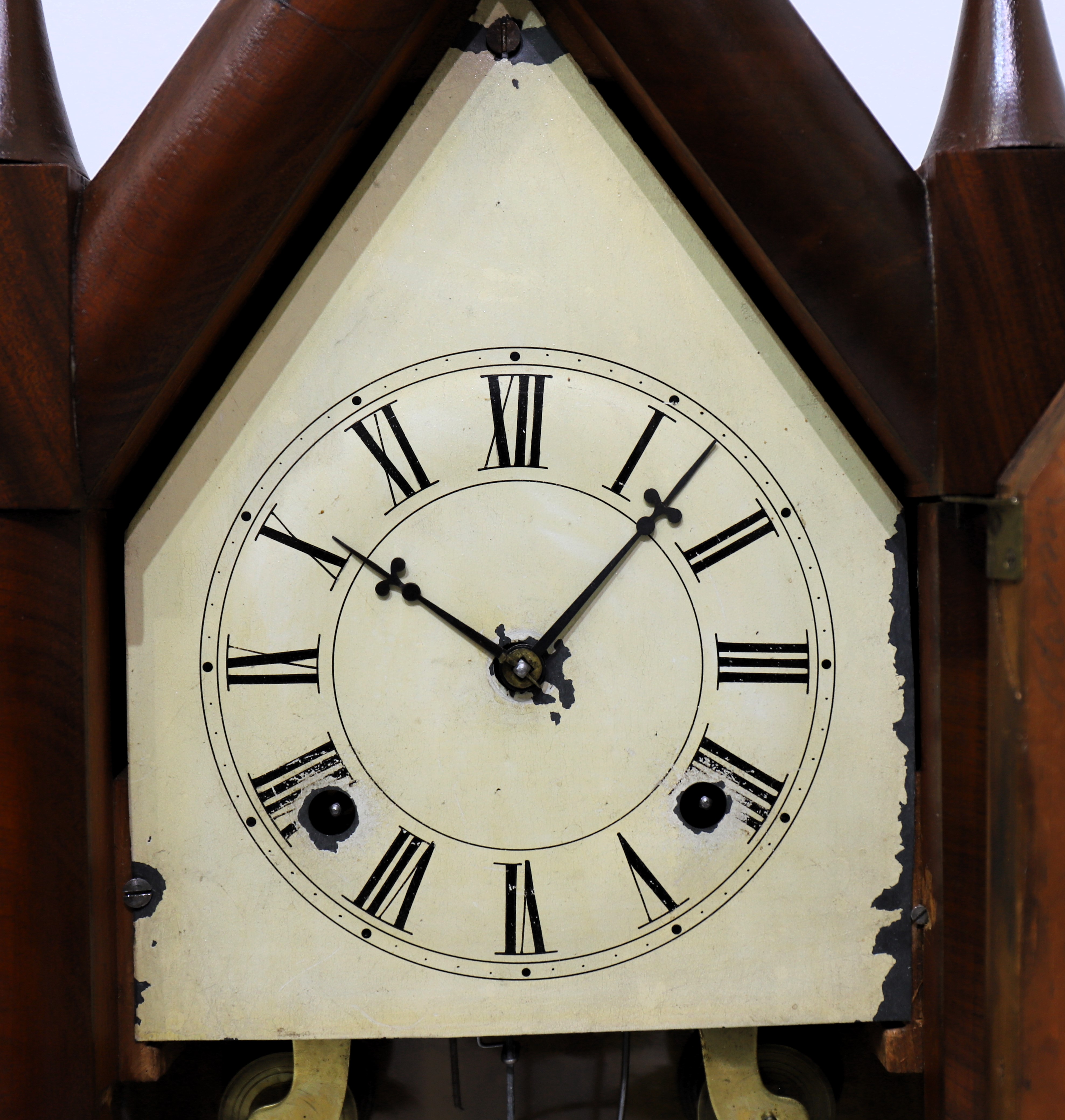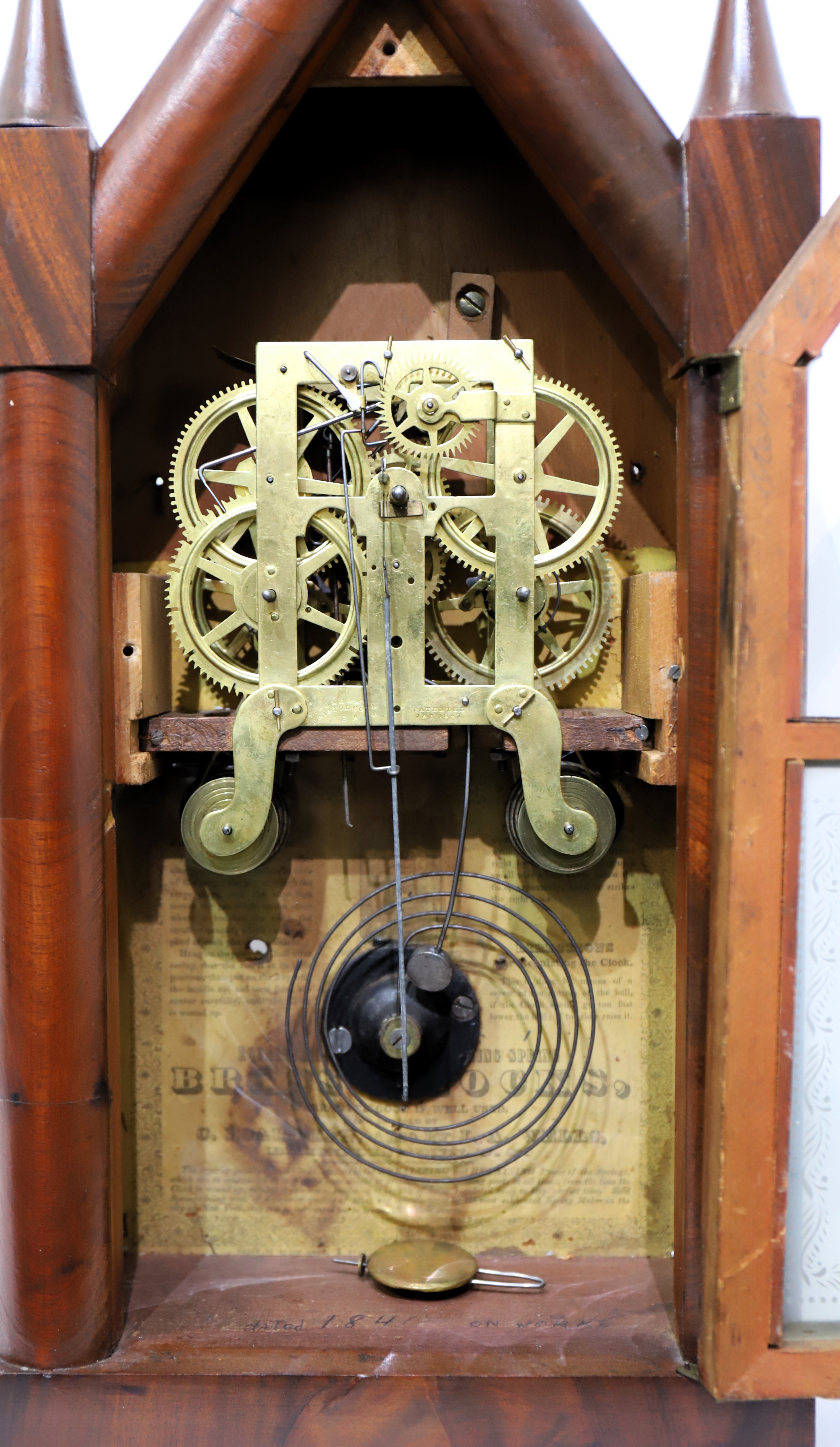 still notes his association with Wells (who is also on the fusee patent). The 20-inch case is veneered in mahogany with